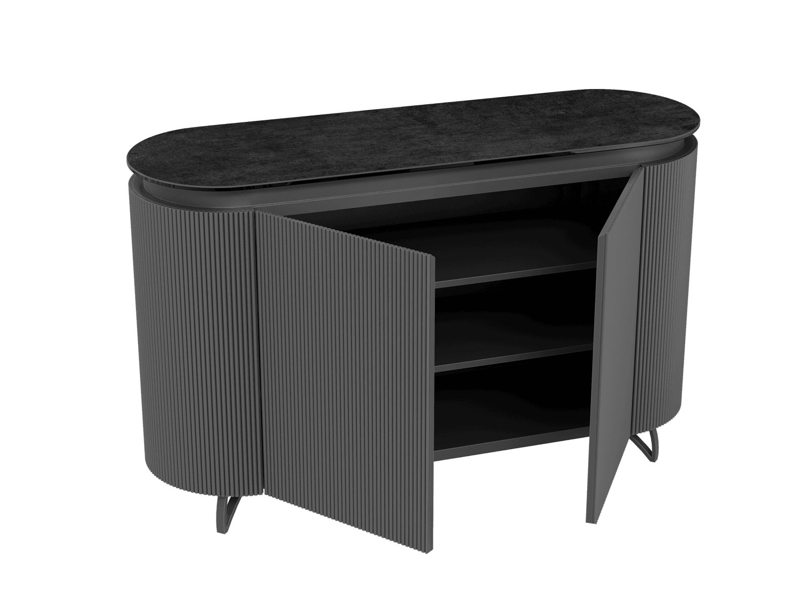NOT AVAILABLE FOR THE UK AND IRISH MARKET. The COLUMBUS sideboard combines the warmth of wood with the elegance of ceramic for a refined and functional style. Its fluted MDF veneered doors add a contemporary graphic touch. With spacious storage including shelves and drawers, it is both practical and stylish. The ceramic top, available in ten finishes, blends seamlessly into any interior. Offered in two sizes (130 or 170 cm), the COLUMBUS sideboard perfectly balances modernity and authenticity.