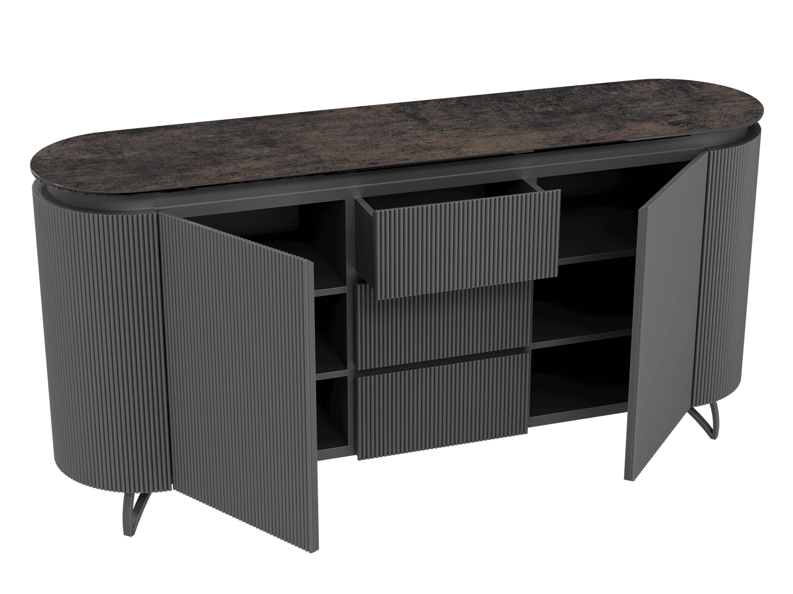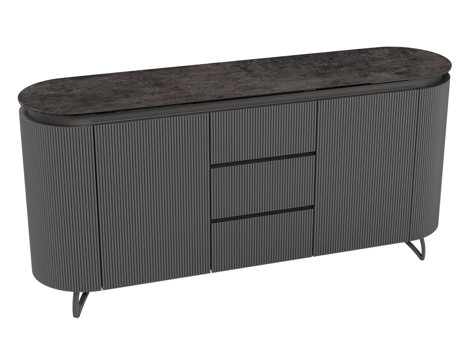 NOT AVAILABLE FOR THE UK AND IRISH MARKET. The COLUMBUS sideboard combines the warmth of wood with the elegance of ceramic for a refined and functional style. Its fluted MDF veneered doors add a contemporary graphic touch. With spacious storage including shelves and drawers, it is both practical and stylish. The ceramic top, available in ten finishes, blends seamlessly into any interior. Offered in two sizes (130 or 170 cm), the COLUMBUS sideboard perfectly balances modernity and authenticity.