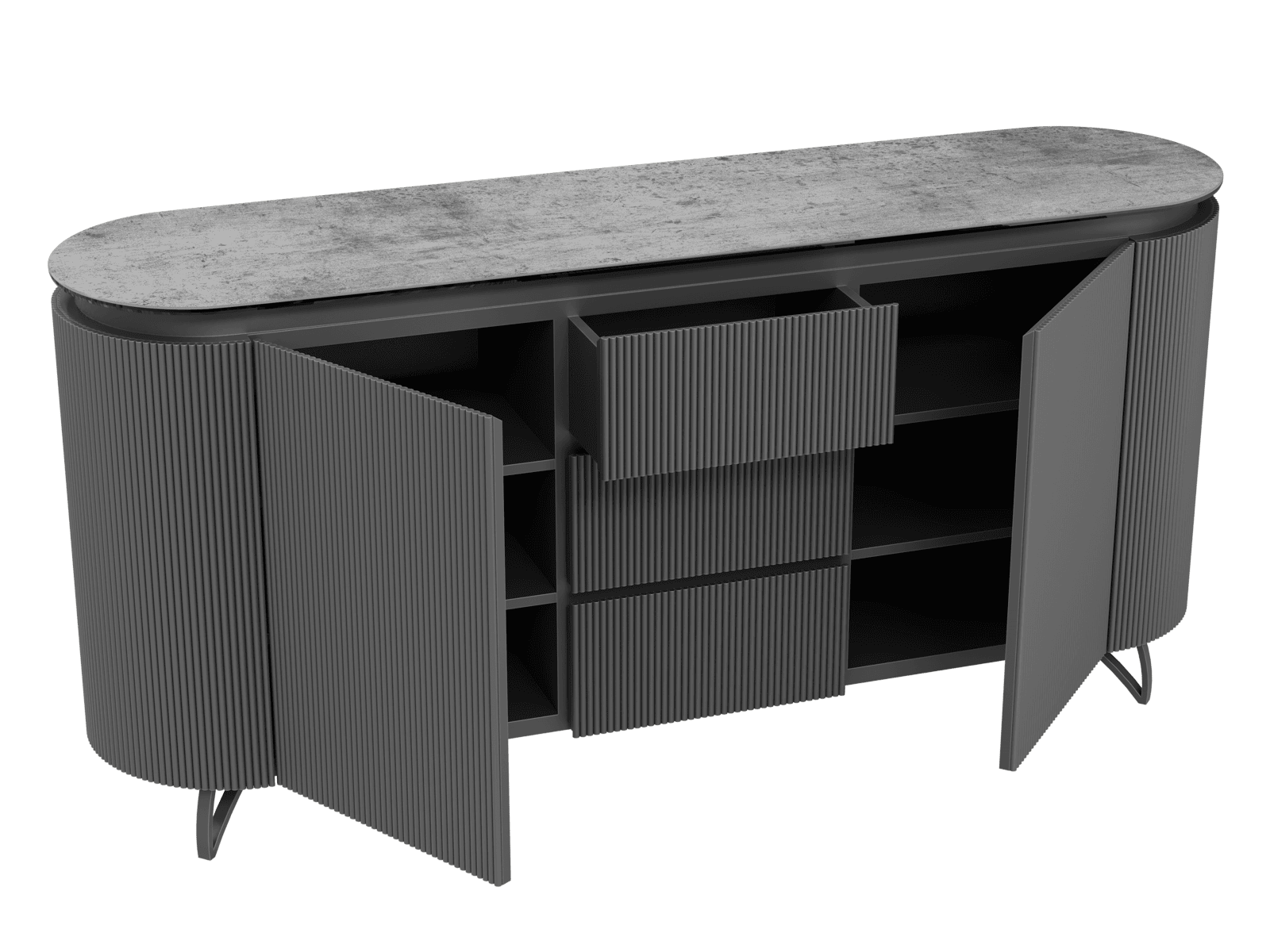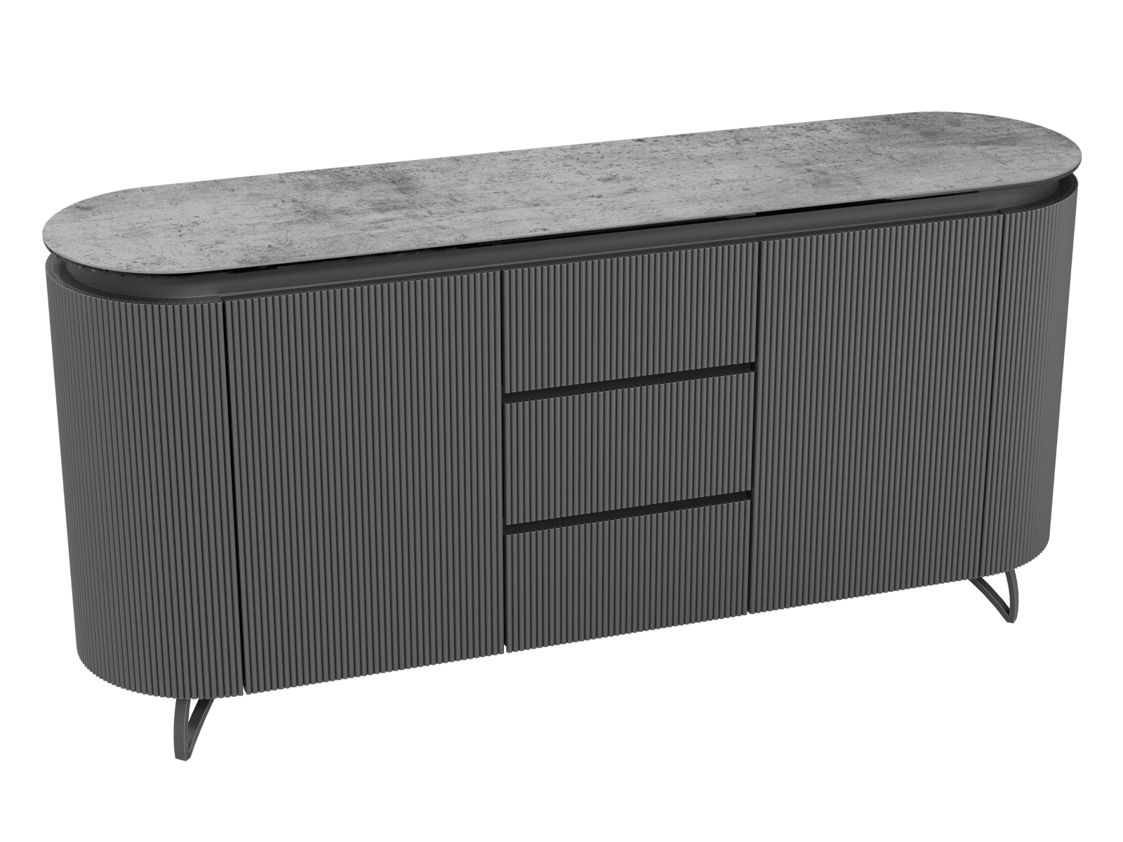 NOT AVAILABLE FOR THE UK AND IRISH MARKET. The COLUMBUS sideboard combines the warmth of wood with the elegance of ceramic for a refined and functional style. Its fluted MDF veneered doors add a contemporary graphic touch. With spacious storage including shelves and drawers, it is both practical and stylish. The ceramic top, available in ten finishes, blends seamlessly into any interior. Offered in two sizes (130 or 170 cm), the COLUMBUS sideboard perfectly balances modernity and authenticity.