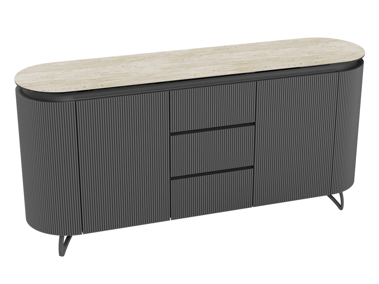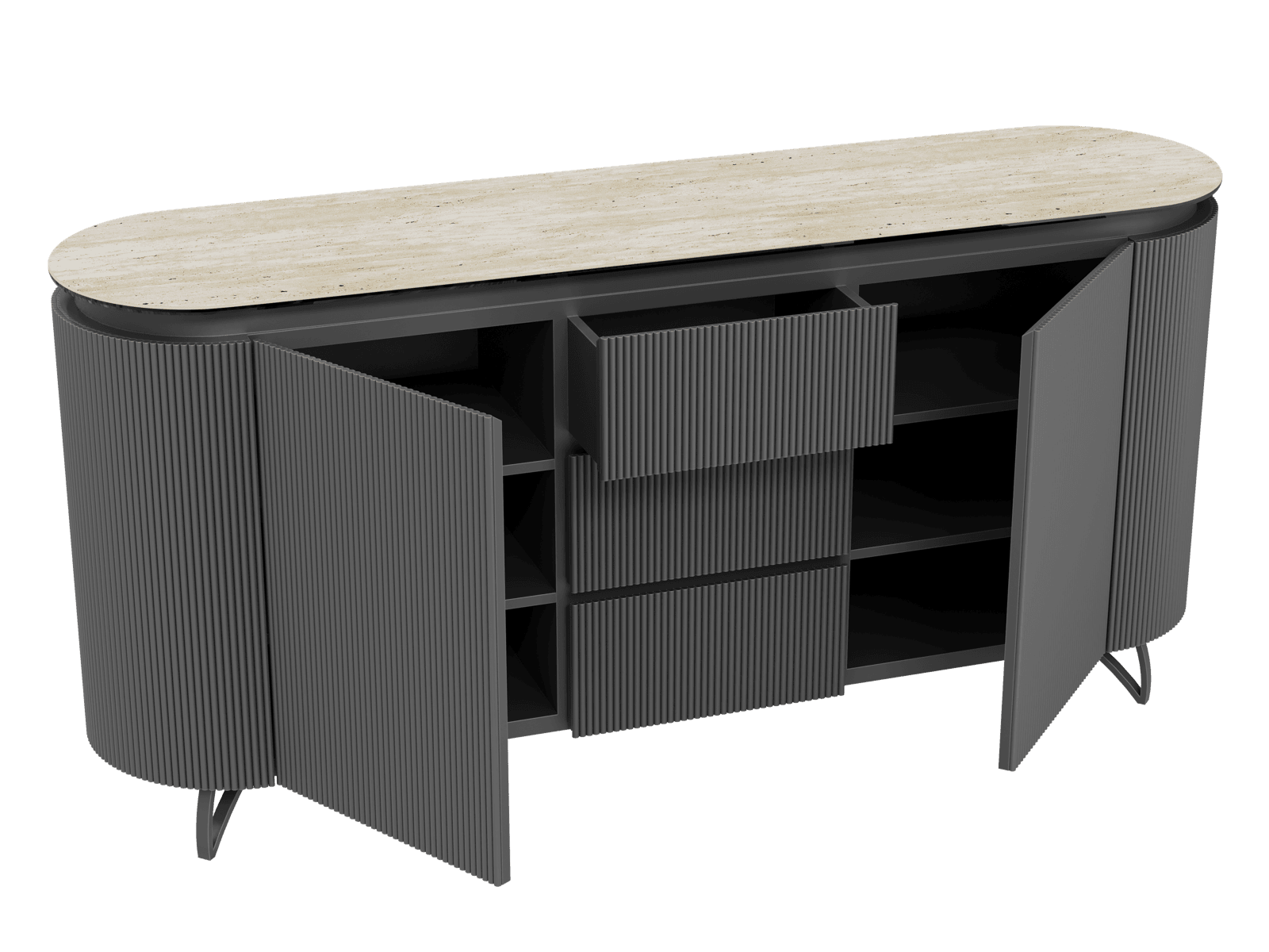 NOT AVAILABLE FOR THE UK AND IRISH MARKET. The COLUMBUS sideboard combines the warmth of wood with the elegance of ceramic for a refined and functional style. Its fluted MDF veneered doors add a contemporary graphic touch. With spacious storage including shelves and drawers, it is both practical and stylish. The ceramic top, available in ten finishes, blends seamlessly into any interior. Offered in two sizes (130 or 170 cm), the COLUMBUS sideboard perfectly balances modernity and authenticity.