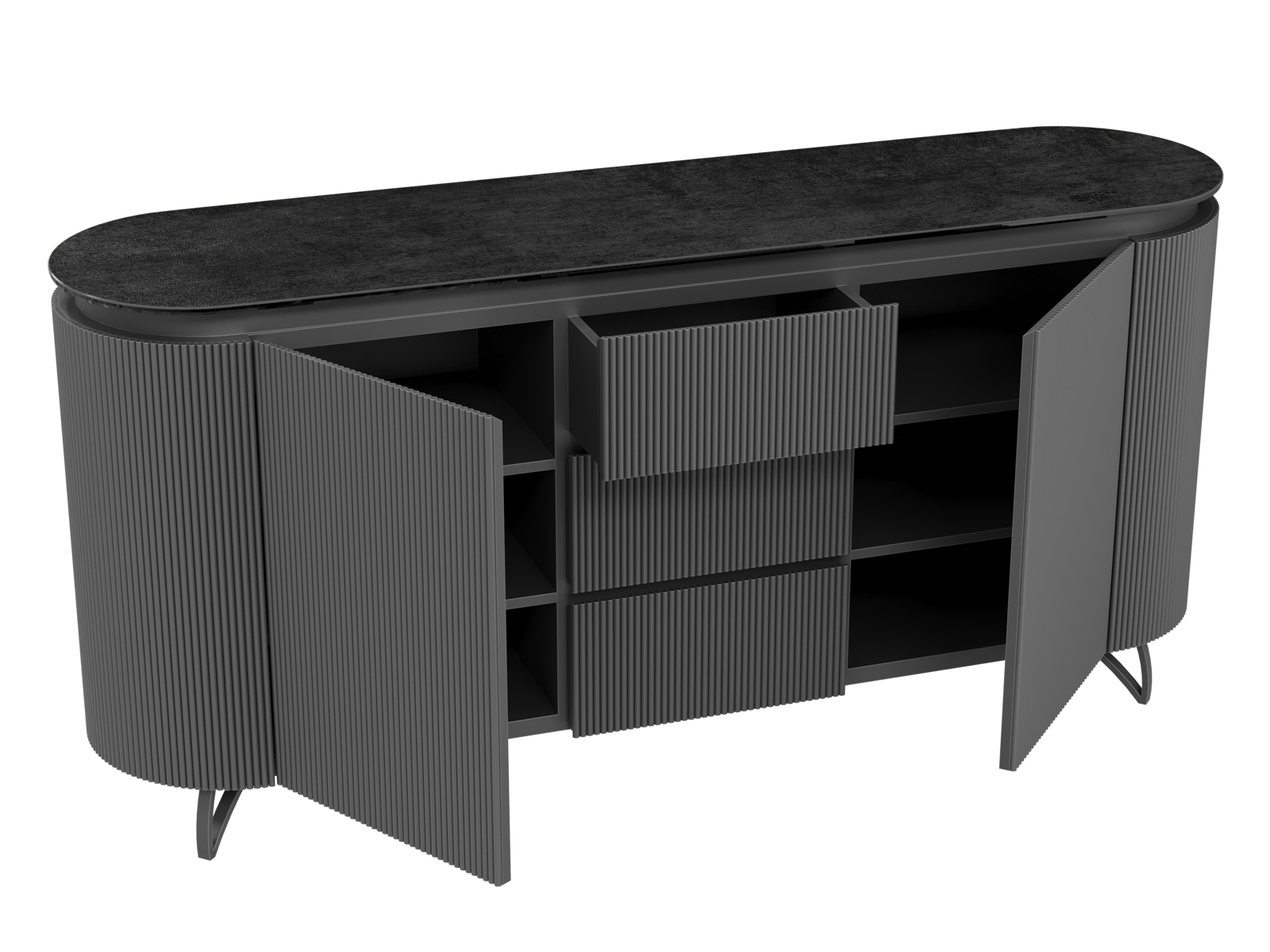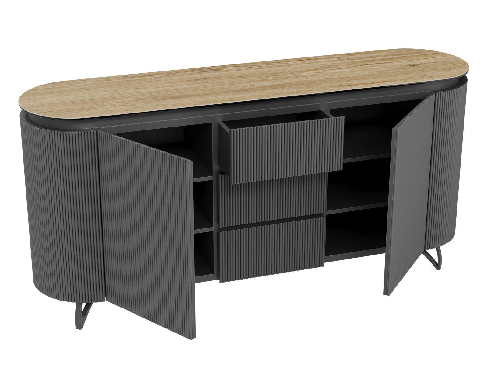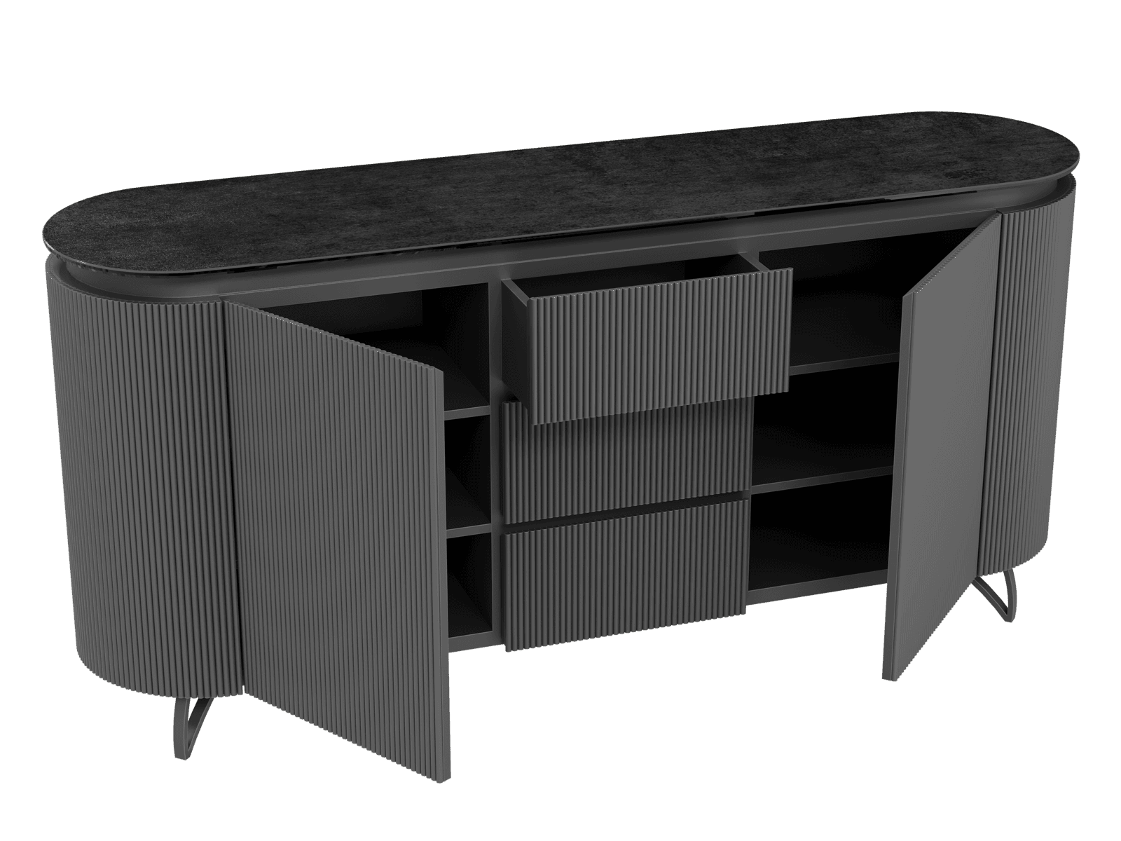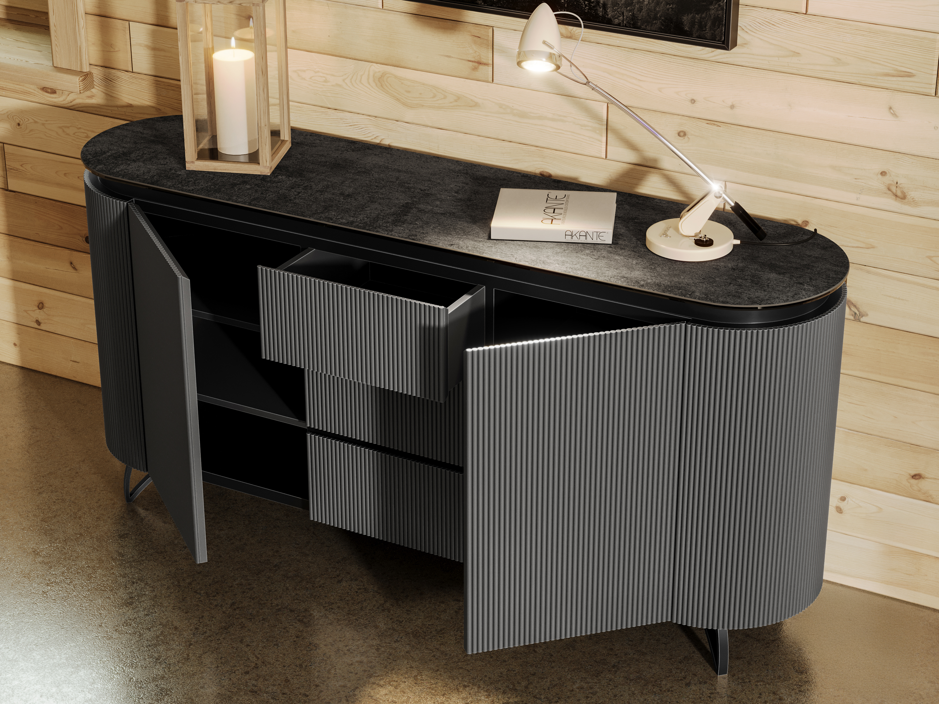 NOT AVAILABLE FOR THE UK AND IRISH MARKET. The COLUMBUS sideboard combines the warmth of wood with the elegance of ceramic for a refined and functional style. Its fluted MDF veneered doors add a contemporary graphic touch. With spacious storage including shelves and drawers, it is both practical and stylish. The ceramic top, available in ten finishes, blends seamlessly into any interior. Offered in two sizes (130 or 170 cm), the COLUMBUS sideboard perfectly balances modernity and authenticity.
