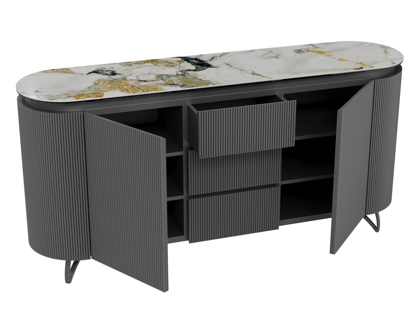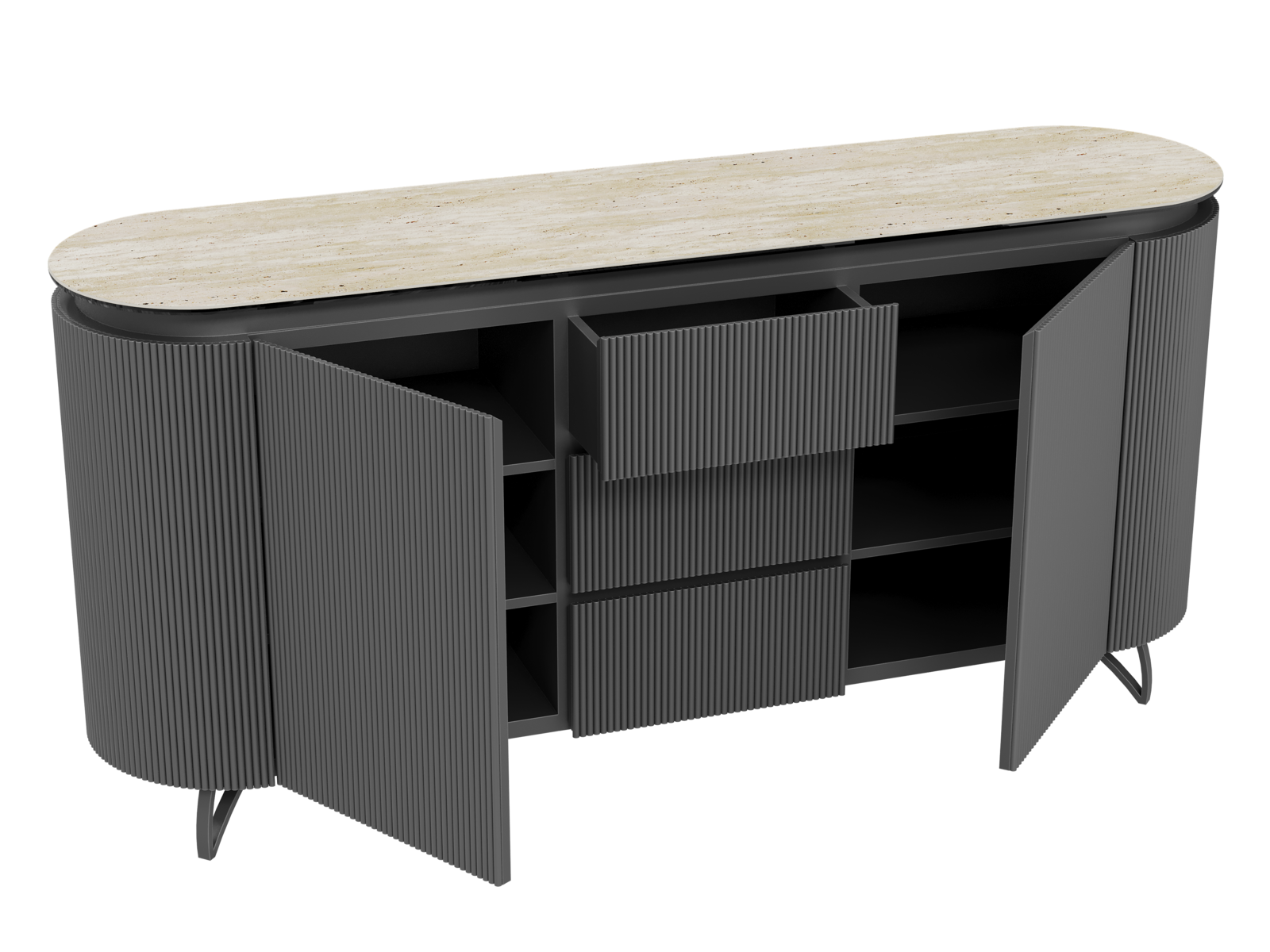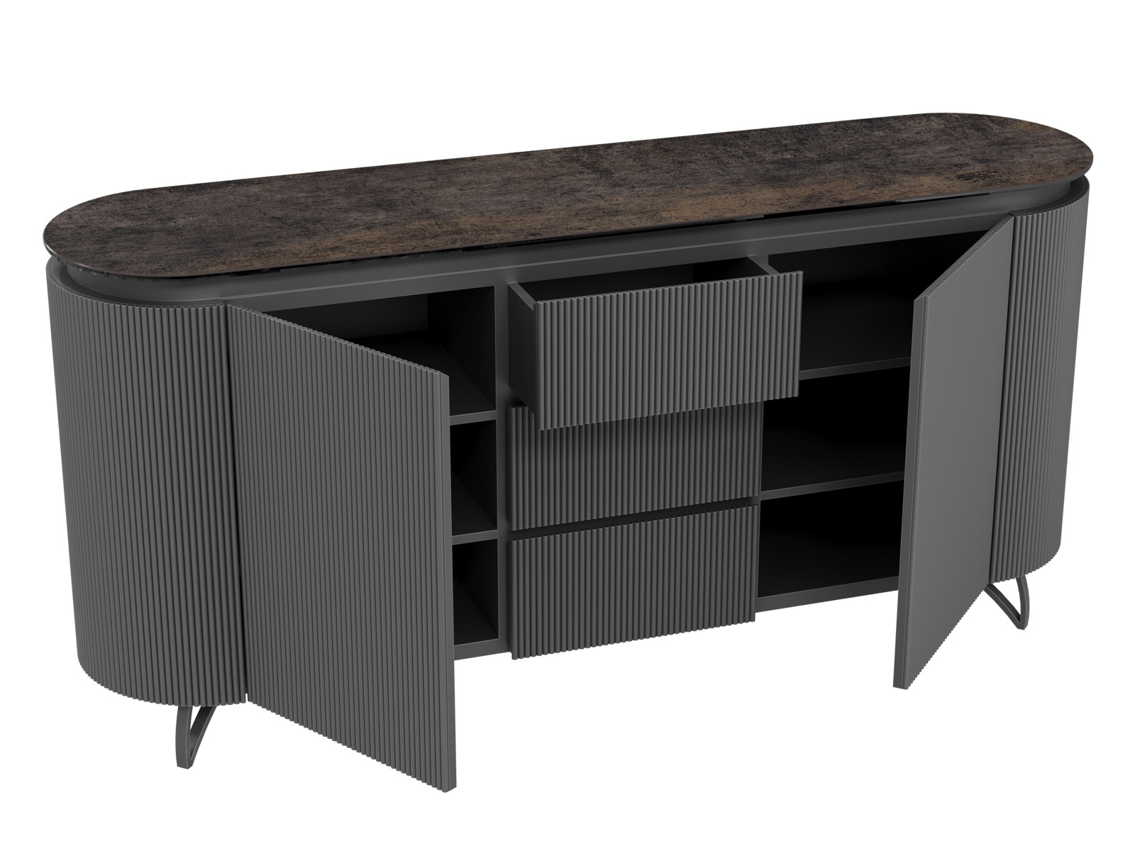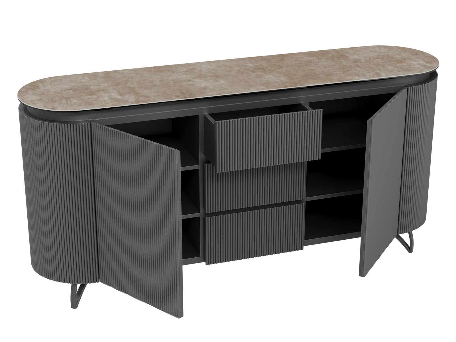 NOT AVAILABLE FOR THE UK AND IRISH MARKET. The COLUMBUS sideboard combines the warmth of wood with the elegance of ceramic for a refined and functional style. Its fluted MDF veneered doors add a contemporary graphic touch. With spacious storage including shelves and drawers, it is both practical and stylish. The ceramic top, available in ten finishes, blends seamlessly into any interior. Offered in two sizes (130 or 170 cm), the COLUMBUS sideboard perfectly balances modernity and authenticity.