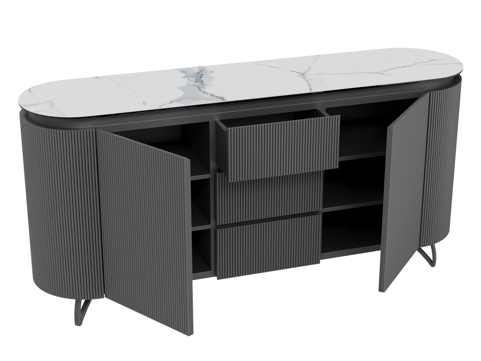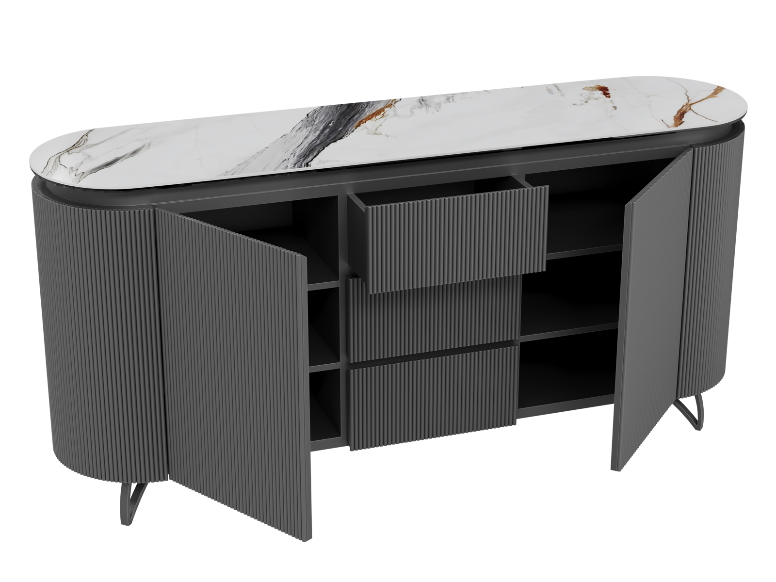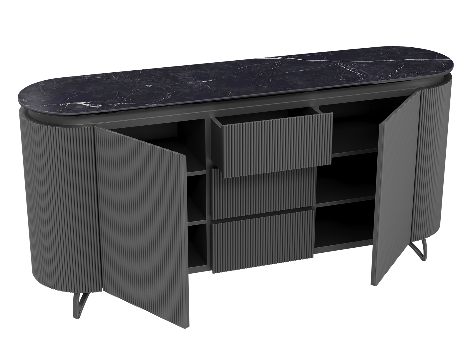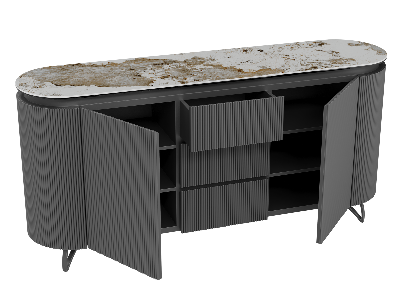 NOT AVAILABLE FOR THE UK AND IRISH MARKET. The COLUMBUS sideboard combines the warmth of wood with the elegance of ceramic for a refined and functional style. Its fluted MDF veneered doors add a contemporary graphic touch. With spacious storage including shelves and drawers, it is both practical and stylish. The ceramic top, available in ten finishes, blends seamlessly into any interior. Offered in two sizes (130 or 170 cm), the COLUMBUS sideboard perfectly balances modernity and authenticity.