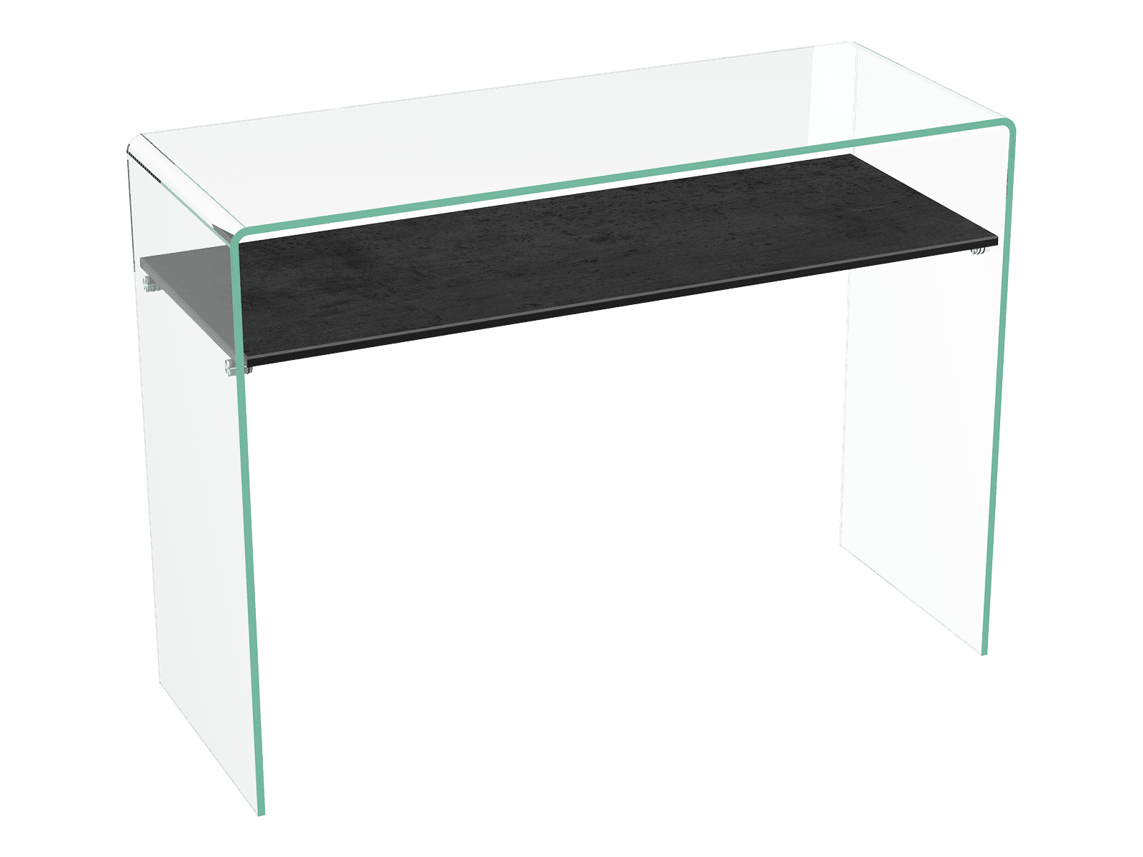 NOT AVAILABLE FOR THE UK AND IRISH MARKET. The Aurora console table is a bright table that will illuminate your room with its extra clear hot bent glass, 10 mm thick. This particular console has a titanium ceramic shelf to enhance its look. As a side table, an entrance table or any other kind, the Aurora console table will add a touch of elegance. It is also available in other finishes.