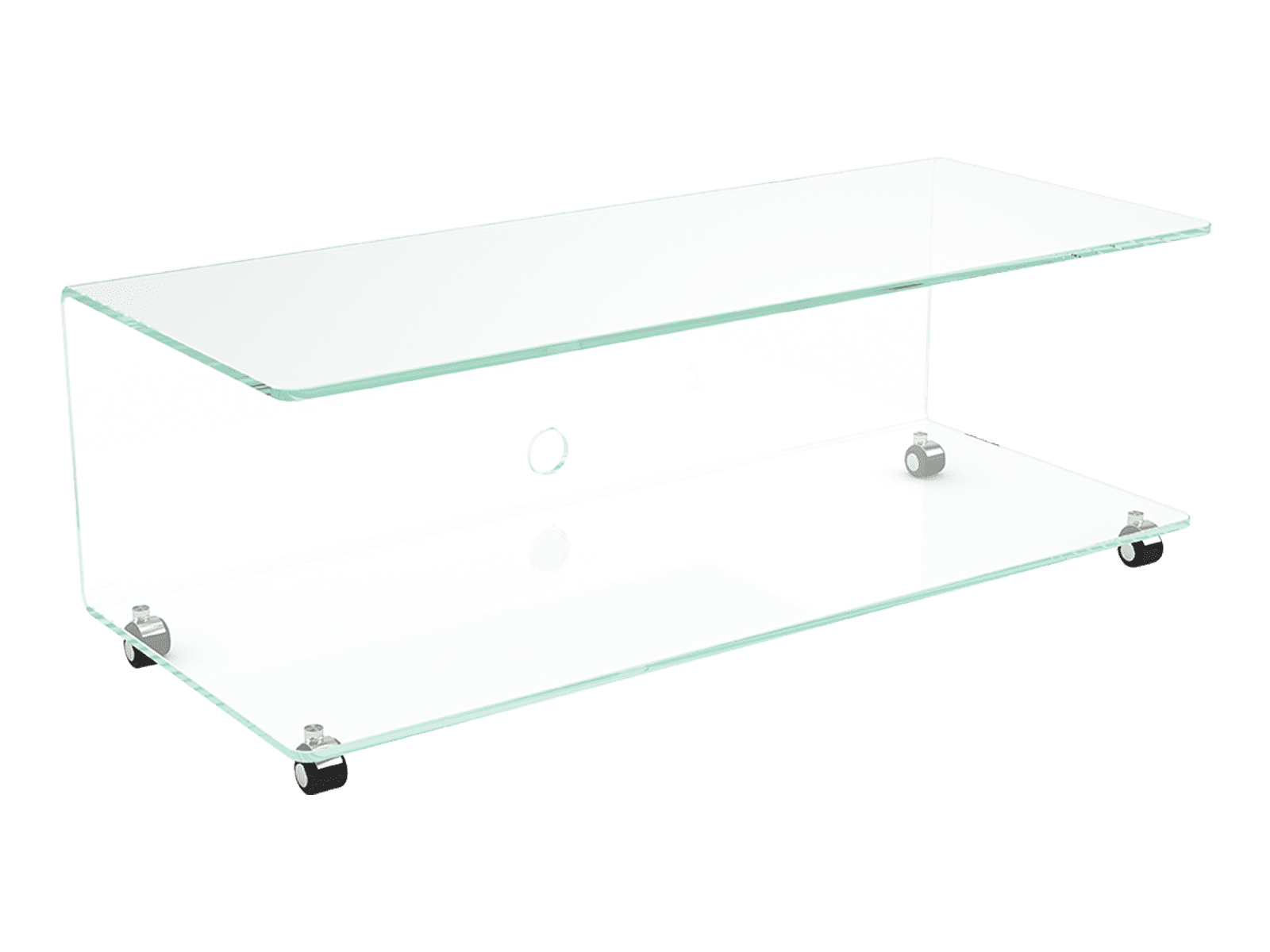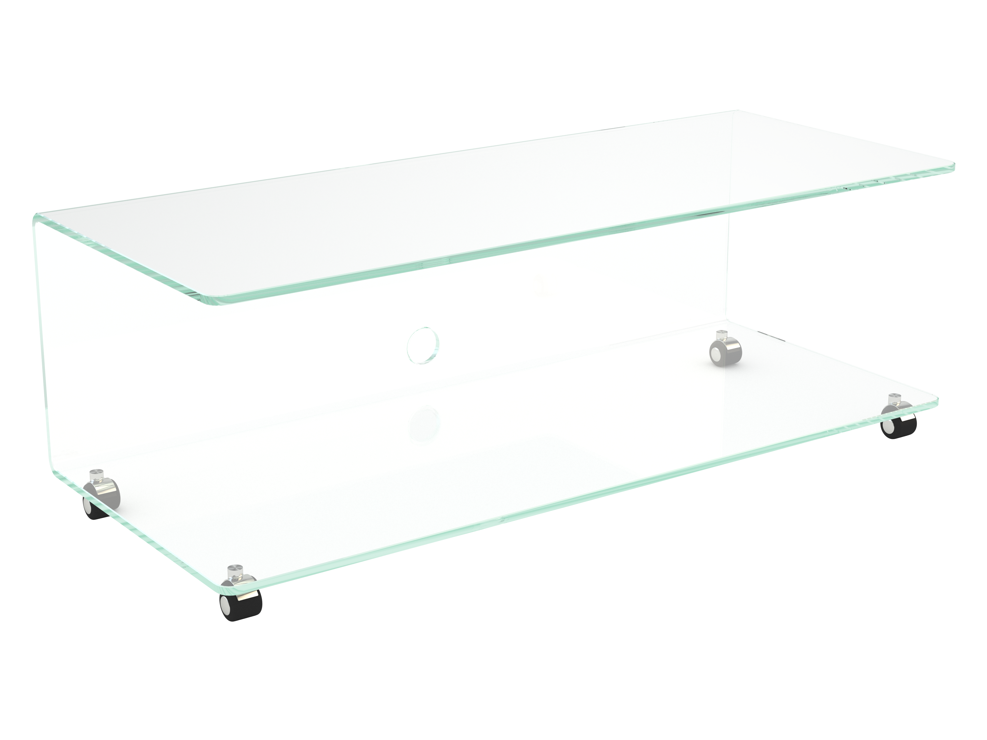 NOT AVAILABLE FOR THE UK AND IRISH MARKET. The Emma TV stand combines Akante's characteristic elegance and practicality. Not only does it have small wheels which allow easy manouevering but it also has a clever opening to arrange those messy cables. The clear cristal glass adds a touch of class to your TV corner.