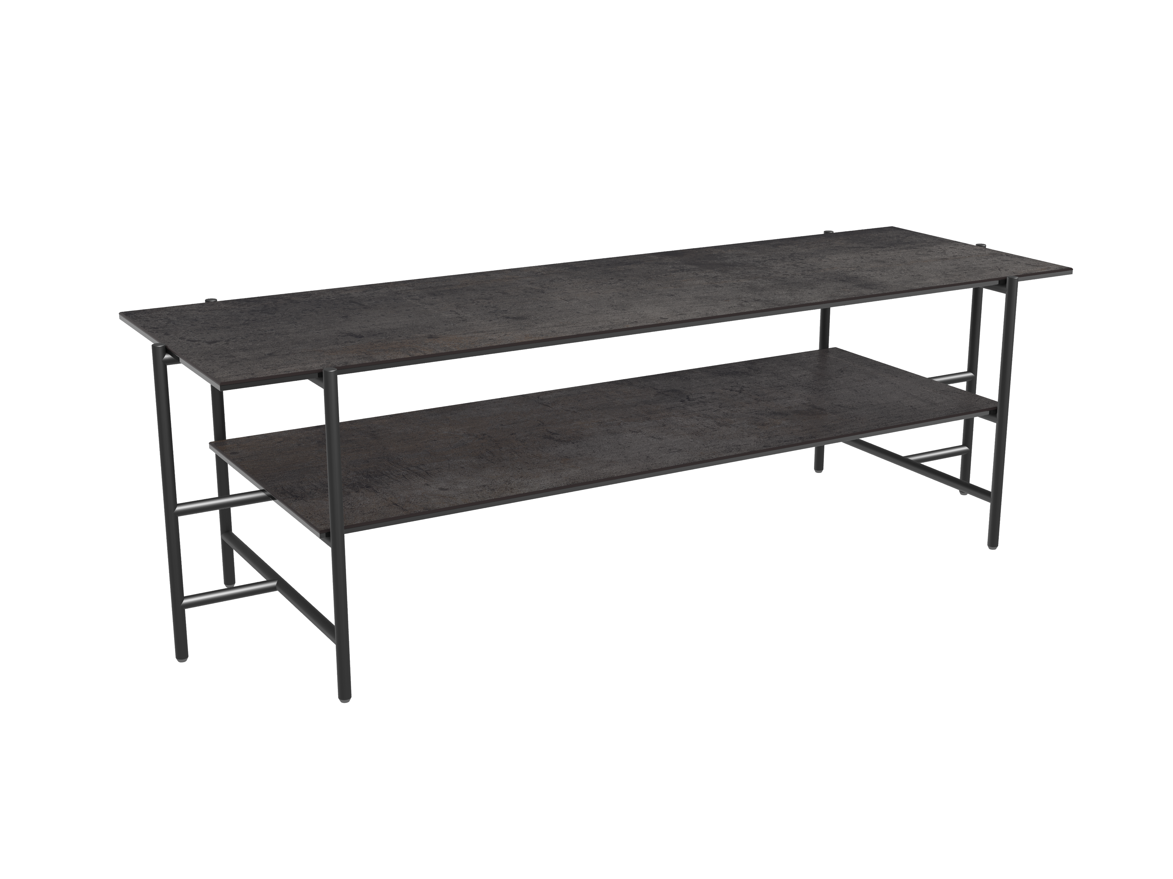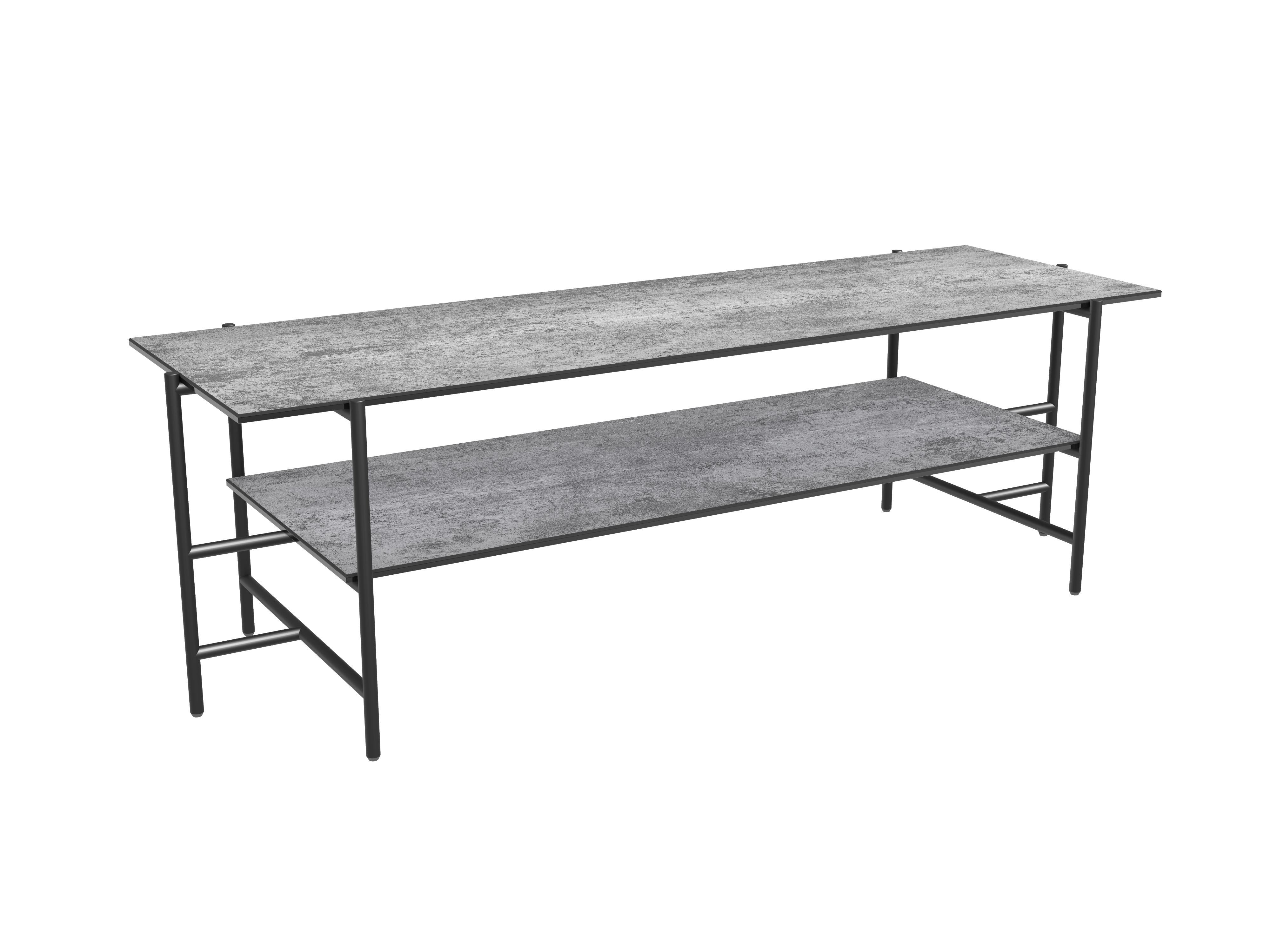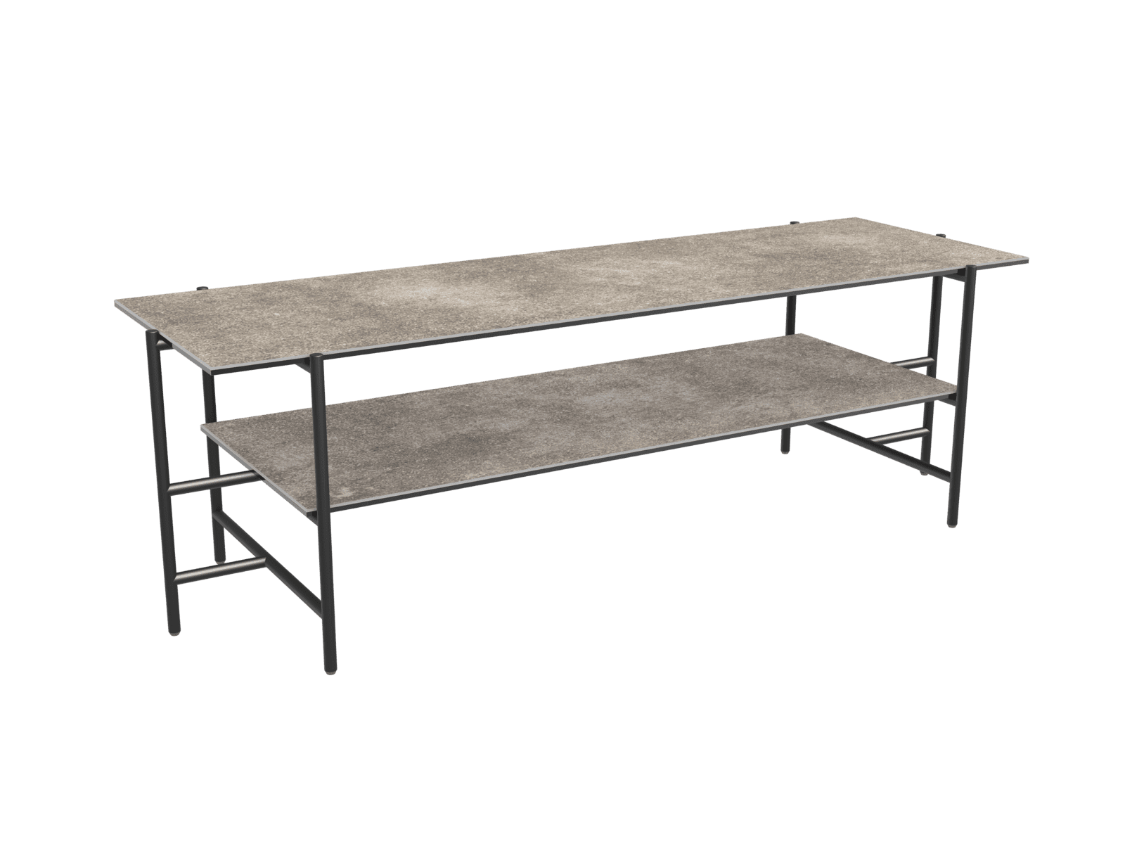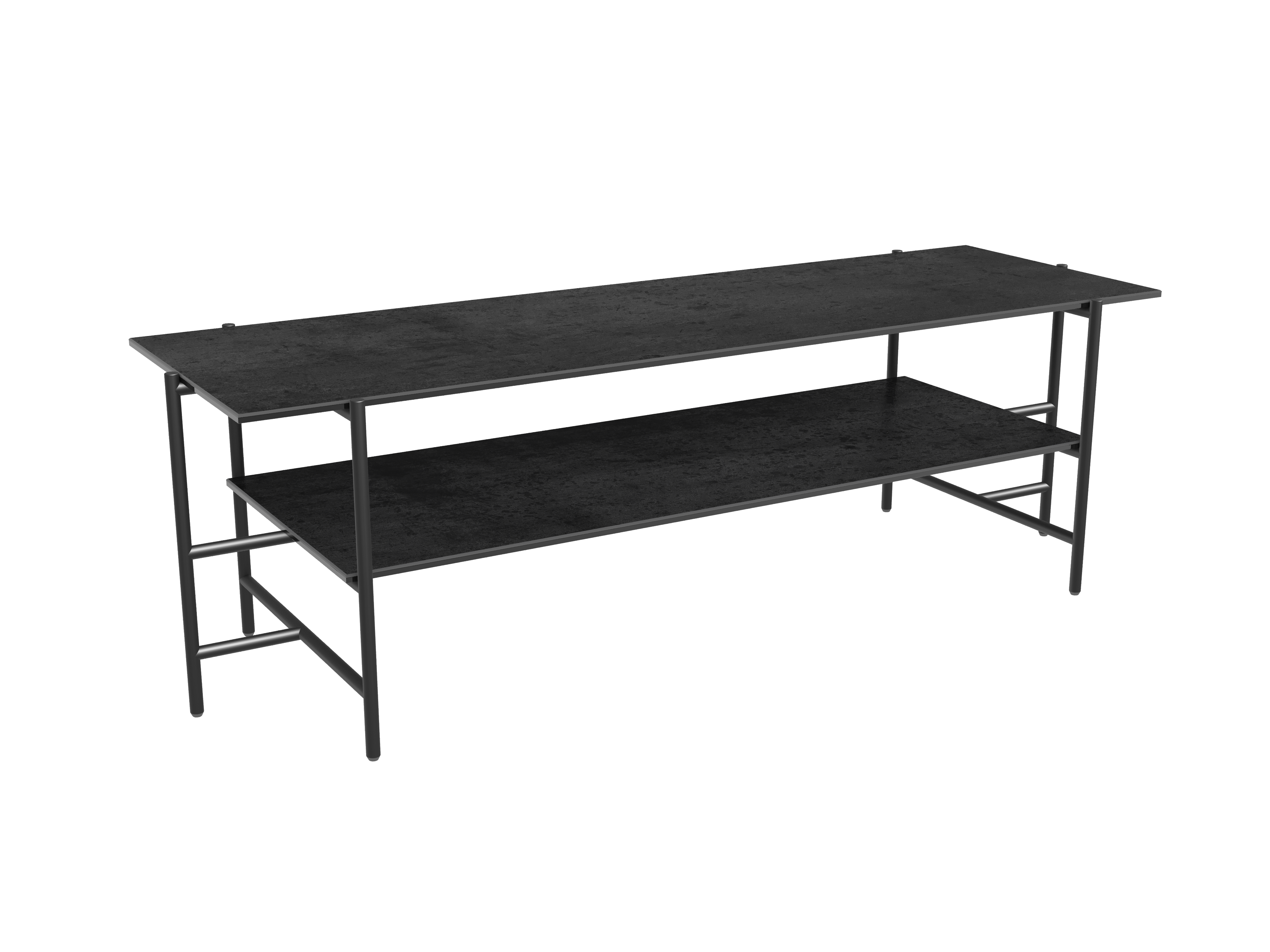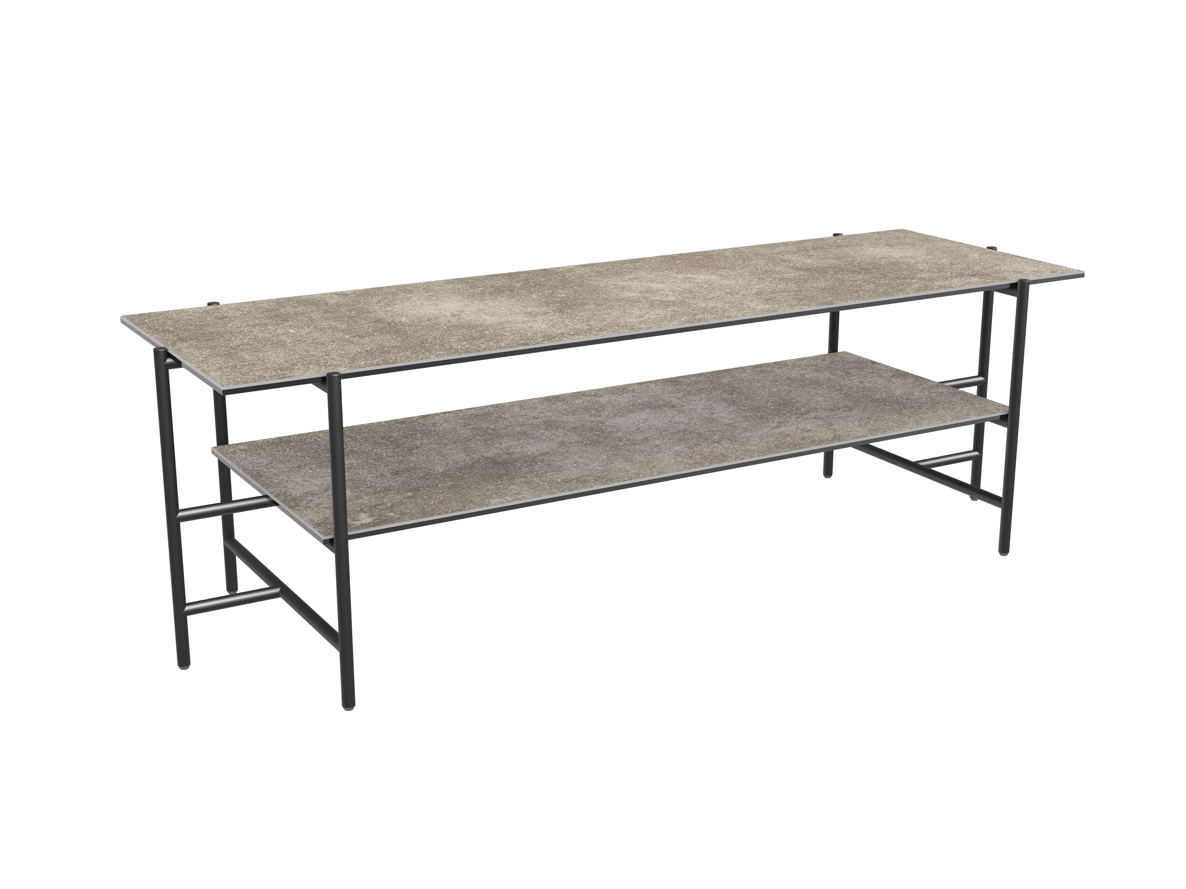 Dimensions and details Net weight : 22,5 Kg Colour : Argile Dimensions : 123 x 41 x 38 cm Height : 38 cm Width : 41 cm Length : 123 cm Legs : Matt black lacquered steel Plates : 3 mm thick ceramic glued upon a 6 mm glass pane Frame : Black lacquered steel INPI : 20231433