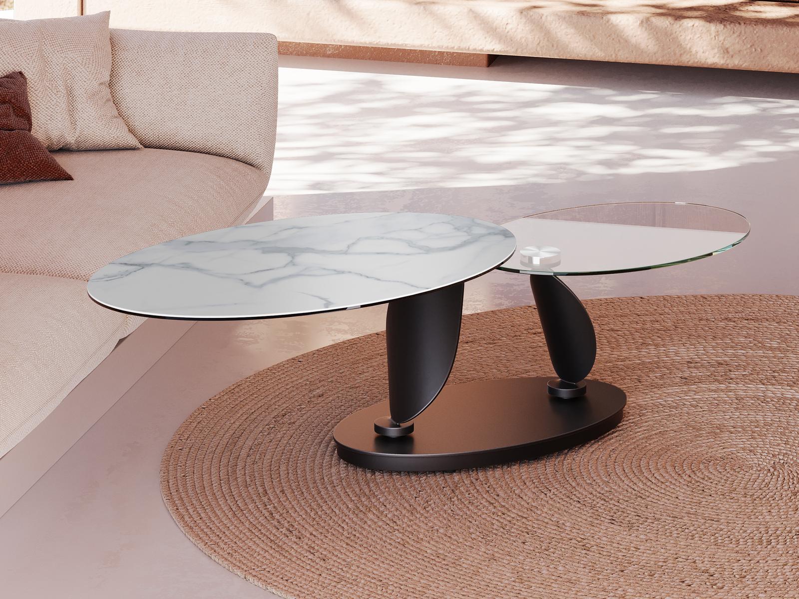 Dimensiones y detalles Peso neto : 55 Kg Color : Marmól mate Dimensiones : 95 x 60 x 43 cm Dimensiones abiertas : 150 x 60 x 43 cm Altura : 43 cm Ancho : 60 cm Largo : 95 cm Base : Acero lacado negro mate Superficie inferior : Vidrio templado de 10 mm Superficie superior : Cerámica de 3 mm pegada sobre vidrio de 6 mm Ruedas con frenos Código INPI : 20234015
