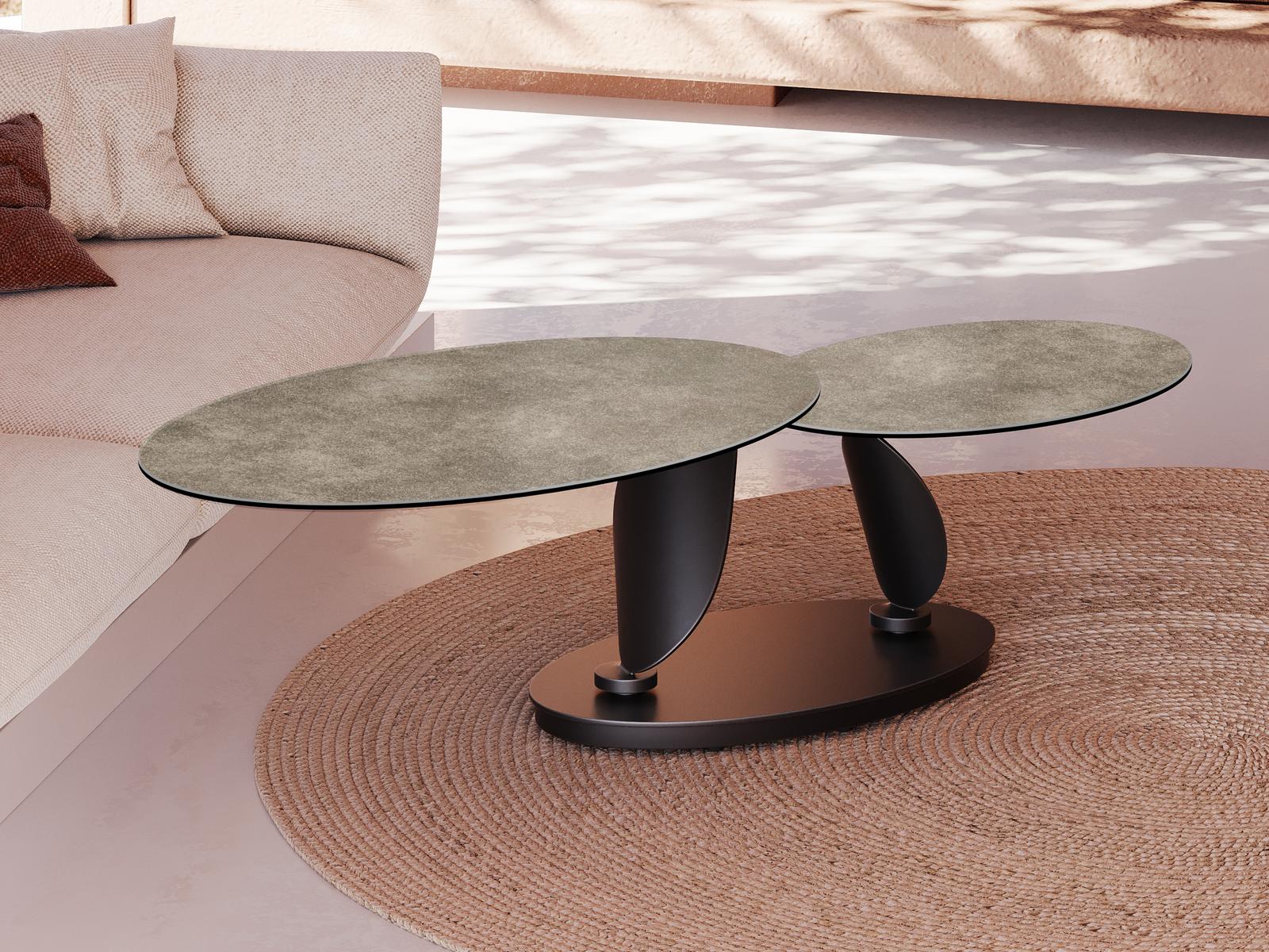 Dimensiones y detalles Peso neto : 55 Kg Color : Arcilla Dimensiones : 95 x 60 x 43 cm Dimensiones abiertas : 150 x 60 x 43 cm Altura : 43 cm Ancho : 60 cm Largo : 95 cm Base : Acero lacado negro mate Superficies : Cerámica de 3 mm pegada sobre vidrio de 6 mm Ruedas con frenos Código INPI : 20234015