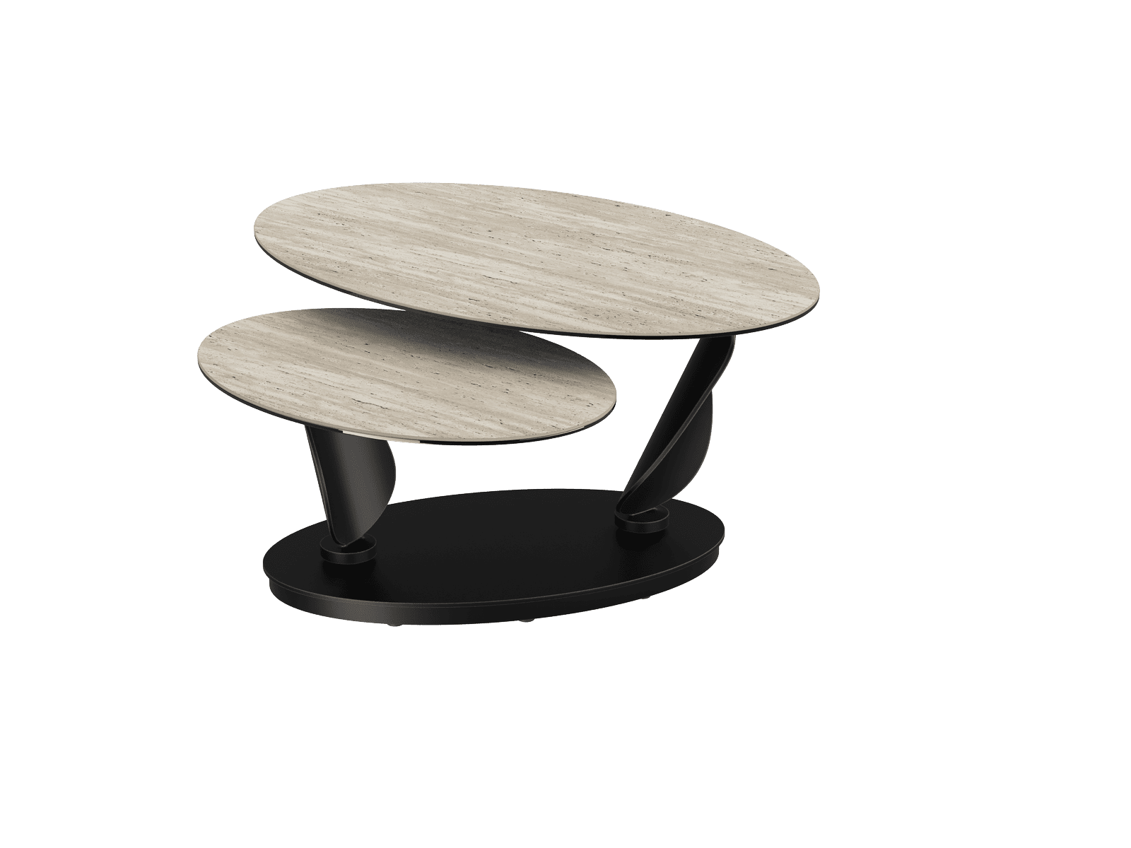Dimensiones y detalles Peso neto : 55 Kg Color : Travertino Dimensiones : 95 x 60 x 43 cm Dimensiones abiertas : 150 x 60 x 43 cm Altura : 43 cm Ancho : 60 cm Largo : 95 cm Base : Acero lacado negro mate Superficies : Cerámica de 3 mm pegada sobre vidrio de 6 mm Ruedas con frenos Código INPI : 20234015