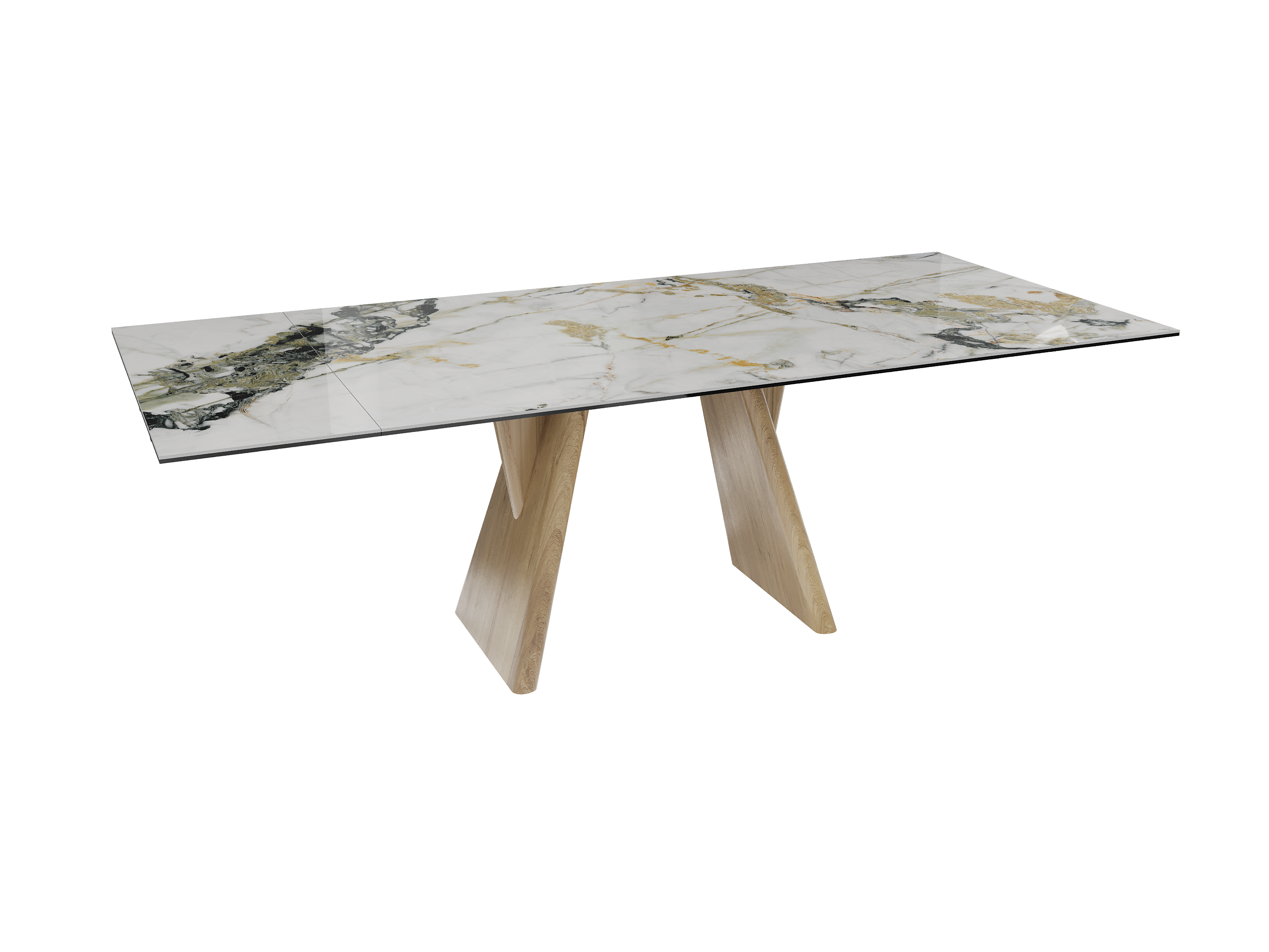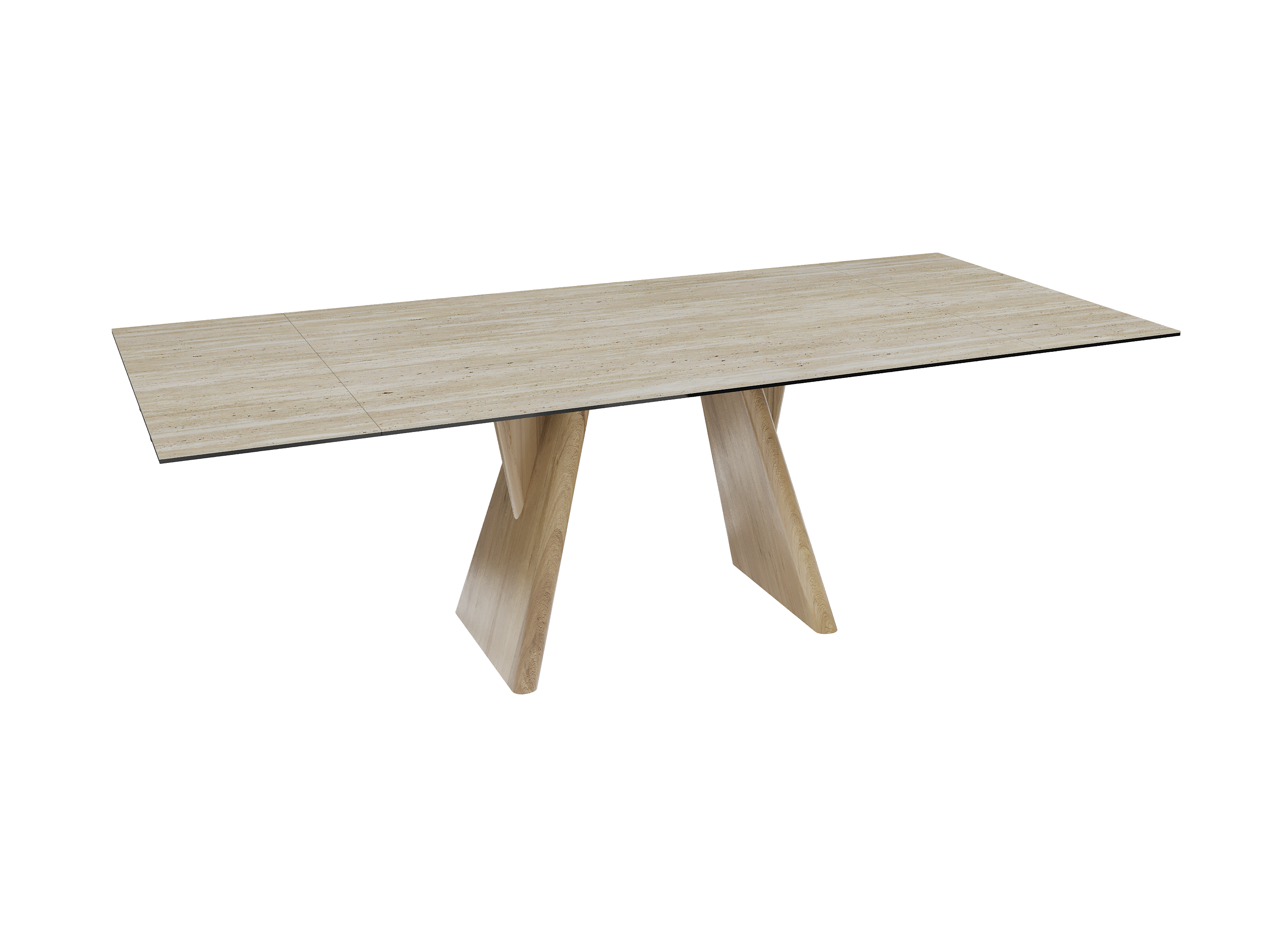 Dimensiones y detalles Peso neto : 107,5 Kg Color : Arcilla Dimensiones : 150 x 100 x 76 cm Dimensiones abiertas : 230 x 100 x 76 cm Altura : 76 cm Ancho : 100 cm Largo : 150 cm Número de comensales : 6-8 personas Base : madera maciza placado roble Superficie : Cerámica de 3 mm pegada sobre vidrio de 8 mm Extensión Código INPI : 20260771