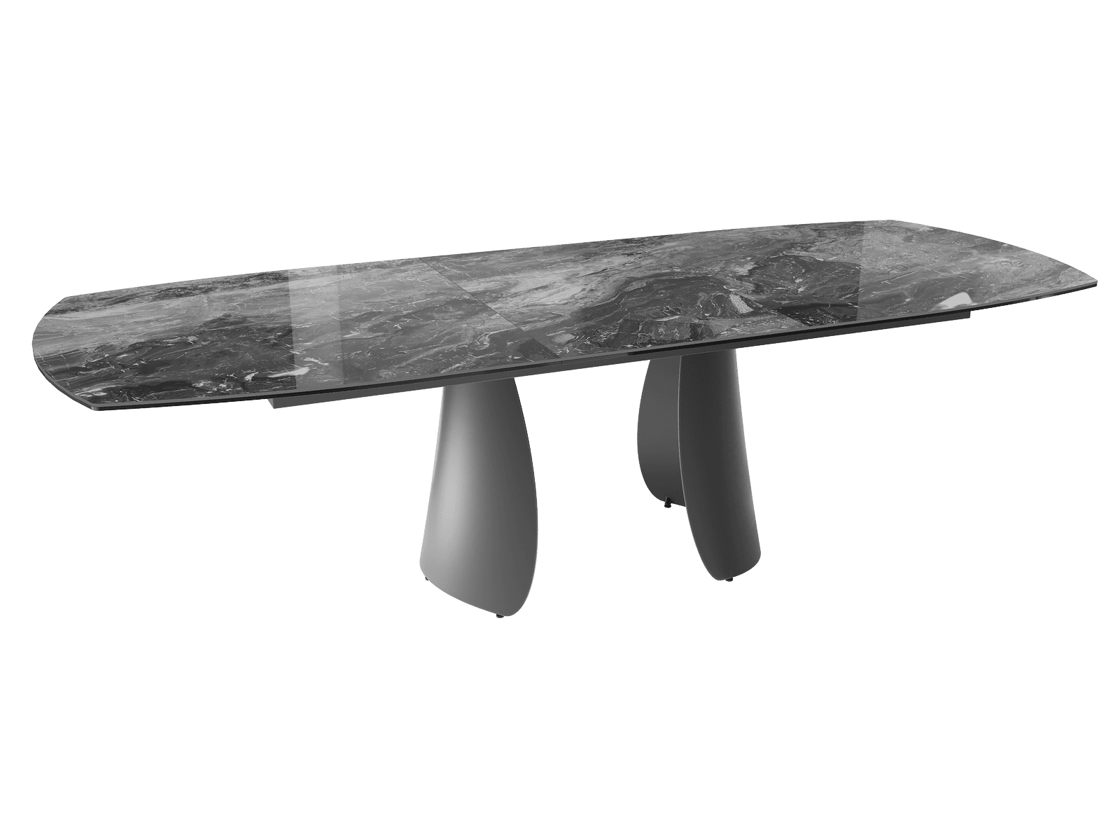 Dimensiones y detalles Peso neto : 158 Kg Color : Eramosa Dimensiones : 200 x 100 x 76 cm Dimensiones abiertas : 260 x 100 x 76 cm Altura : 76 cm Ancho : 100 cm Largo : 200 cm Base : Acero lacado negro mate Superficie : Cerámica de 6 mm pegada sobre vidrio de 8 mm