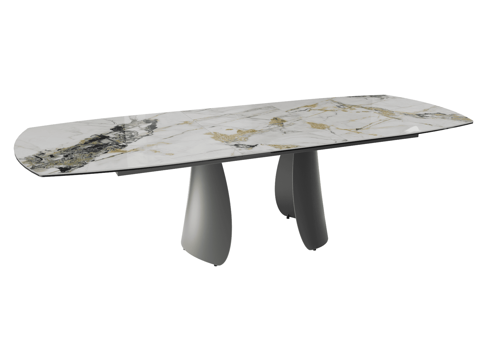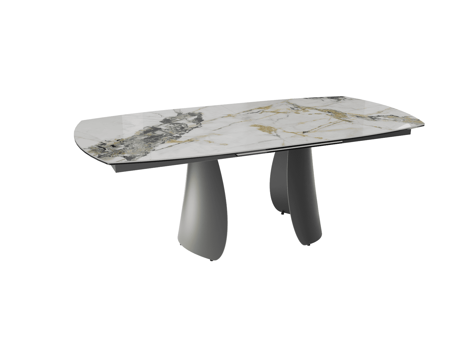 Dimensiones y detalles Peso neto : 156 Kg Color : Mármol Doro Dimensiones : 200 x 100 x 76 cm Dimensiones abiertas : 260 x 100 x 76 cm Altura : 76 cm Ancho : 100 cm Largo : 200 cm Base : Acero lacado negro mate Superficie : Cerámica de 6 mm pegada sobre vidrio de 8 mm