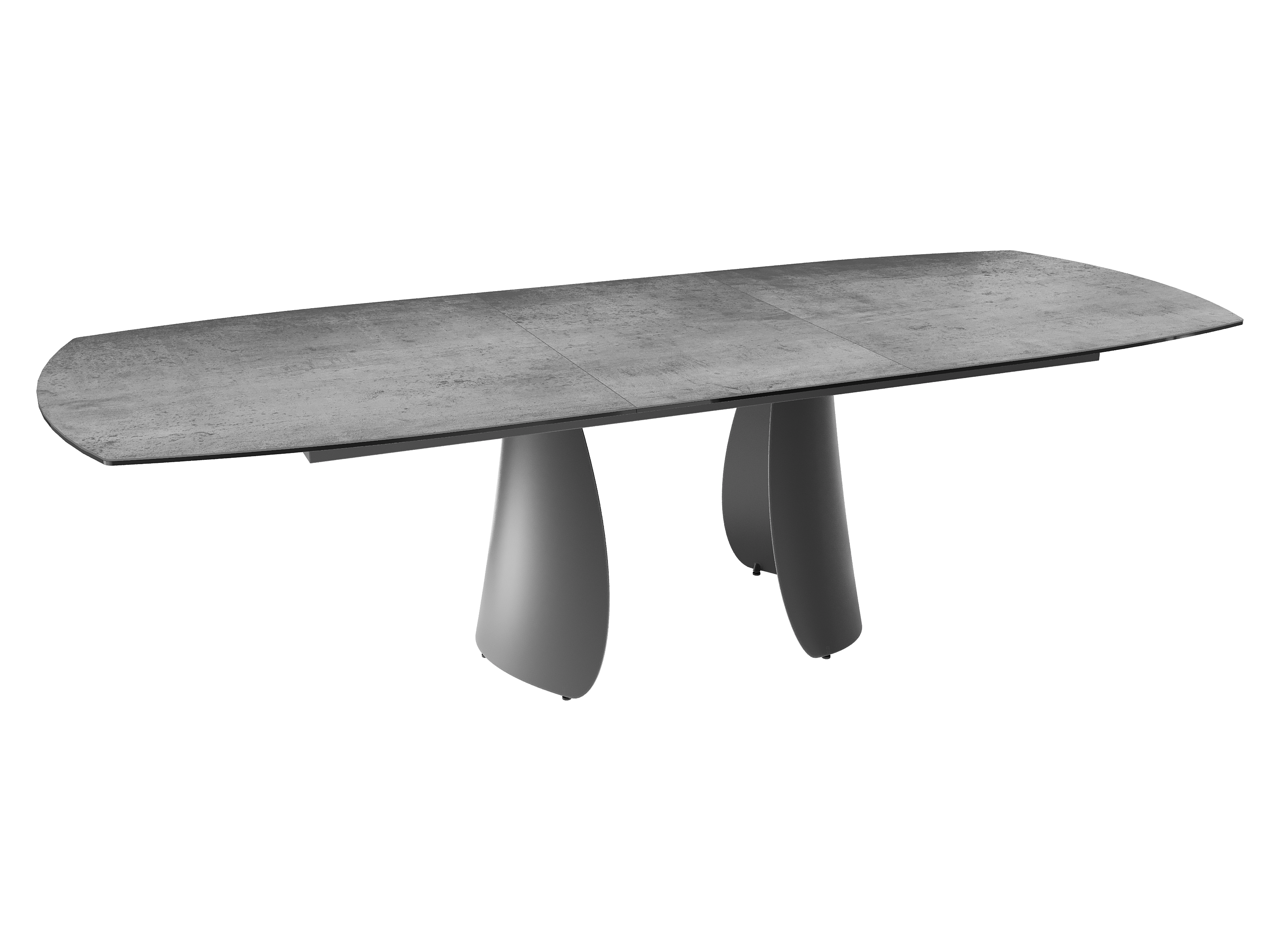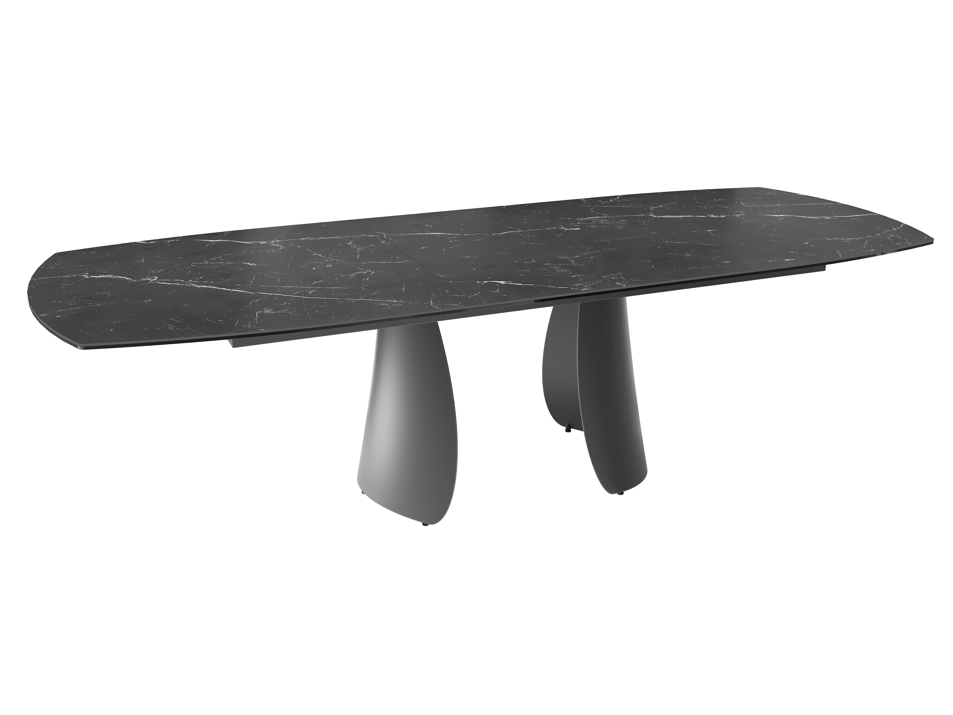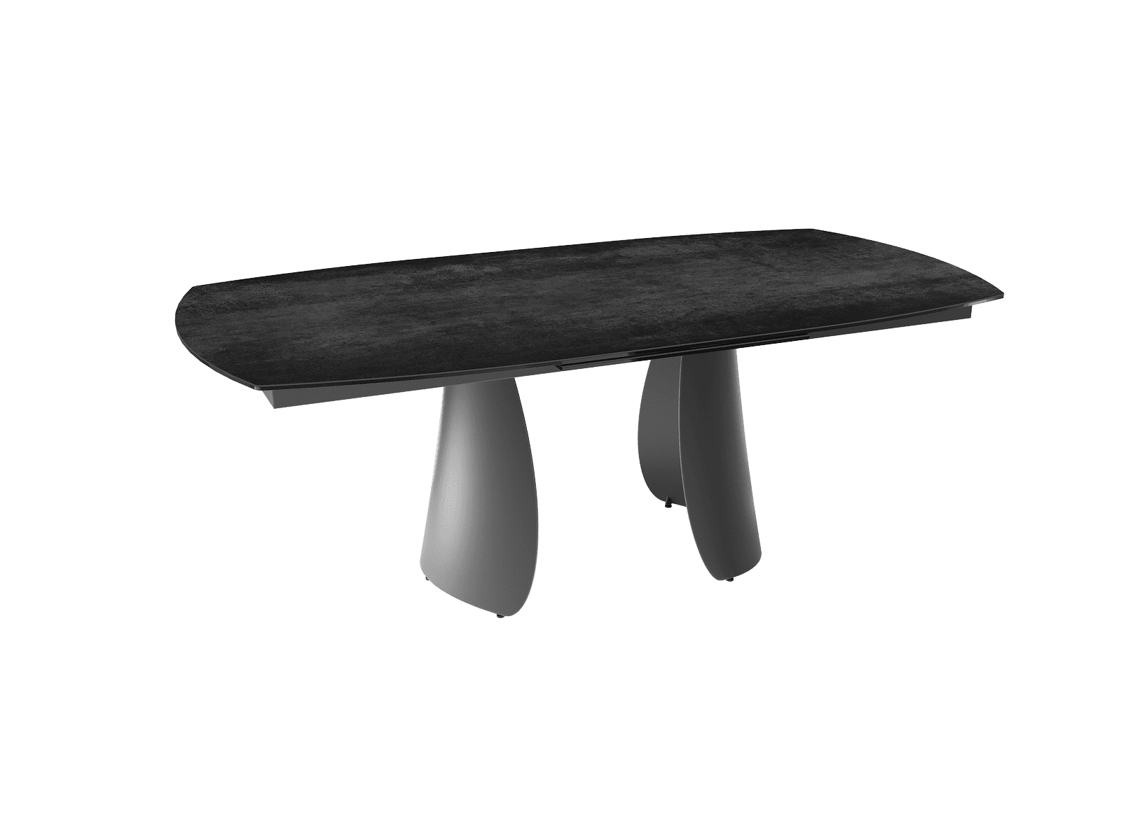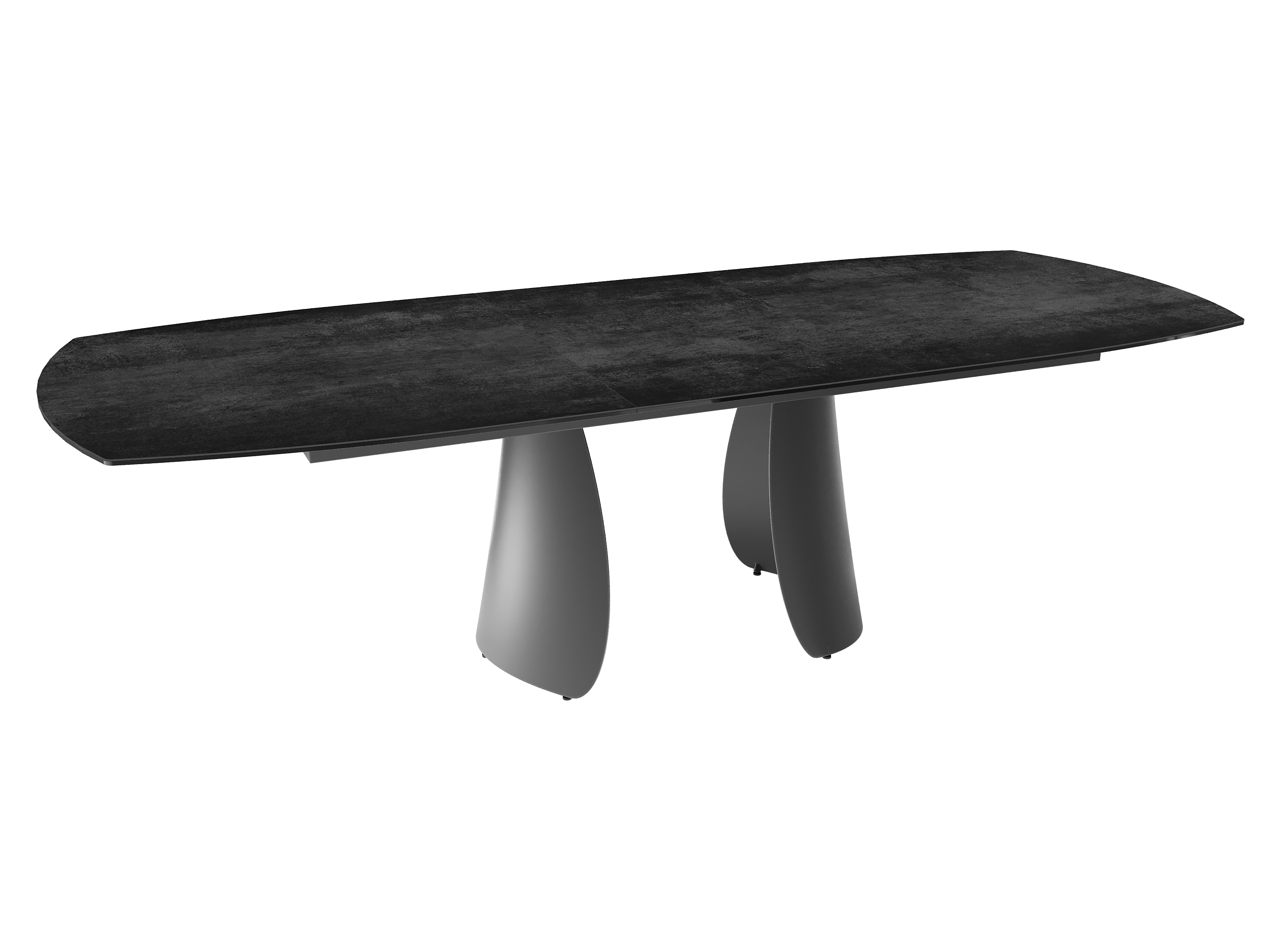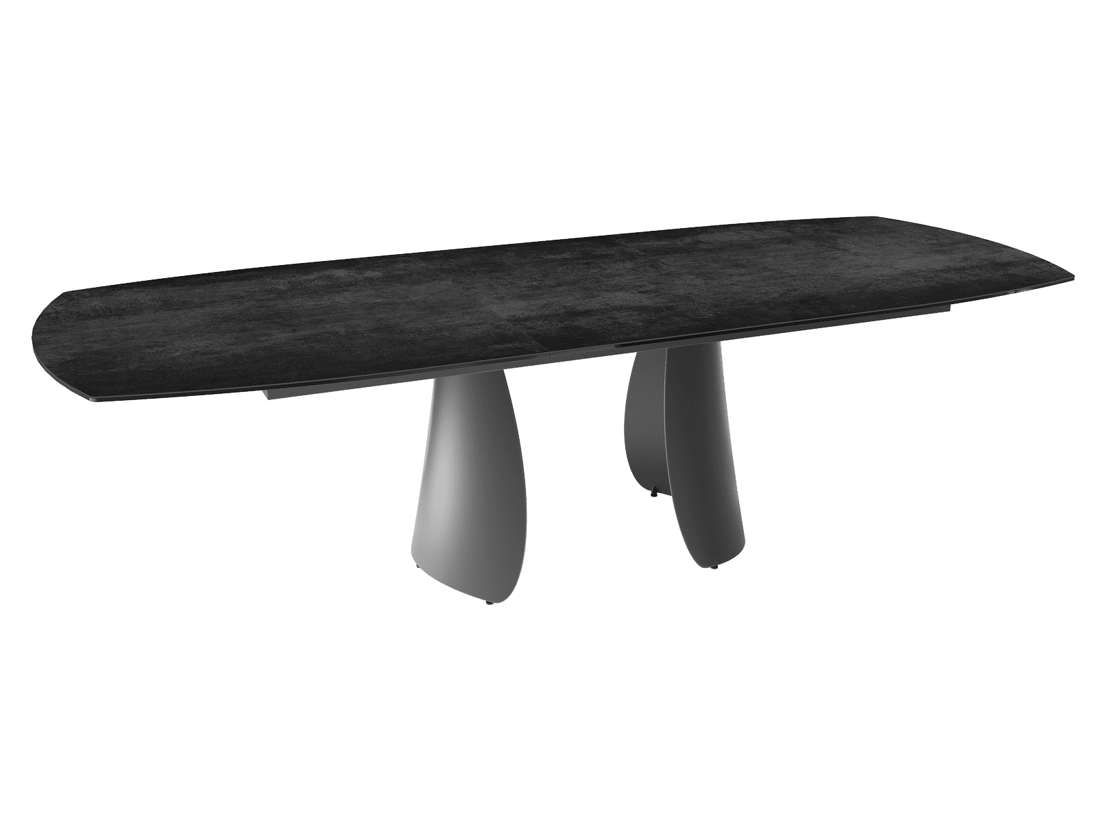 Dimensiones y detalles Peso neto : 136 Kg Color : Titanio Dimensiones : 200 x 100 x 76 cm Dimensiones abiertas : 260 x 100 x 76 cm Altura : 76 cm Ancho : 100 cm Largo : 200 cm Base : Acero lacado negro mate Superficie : Cerámica de 3 mm pegada sobre vidrio de 8 mm