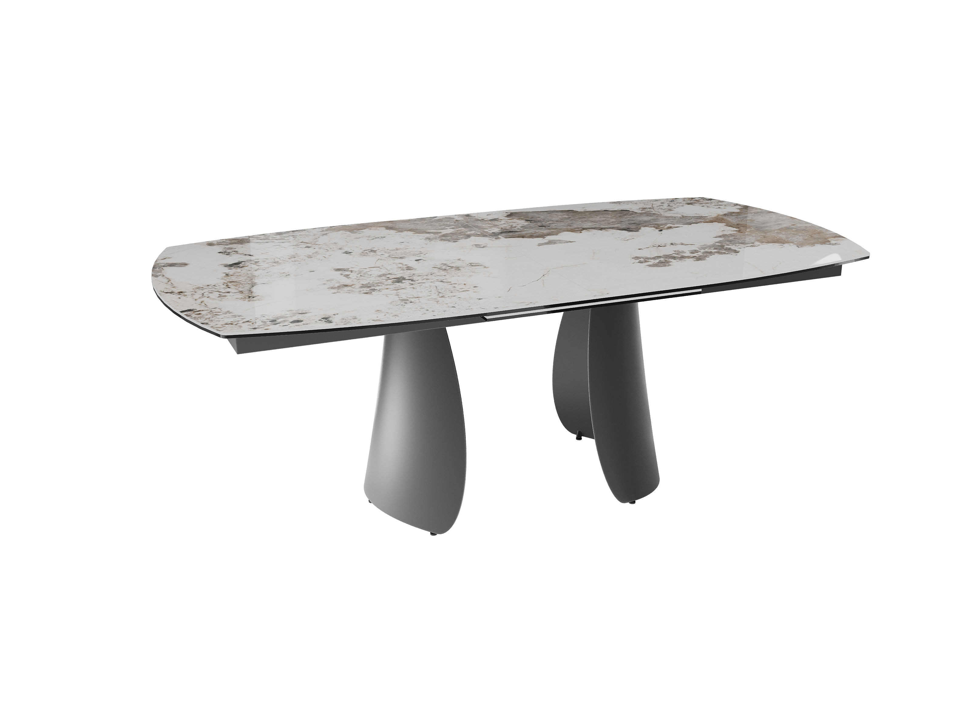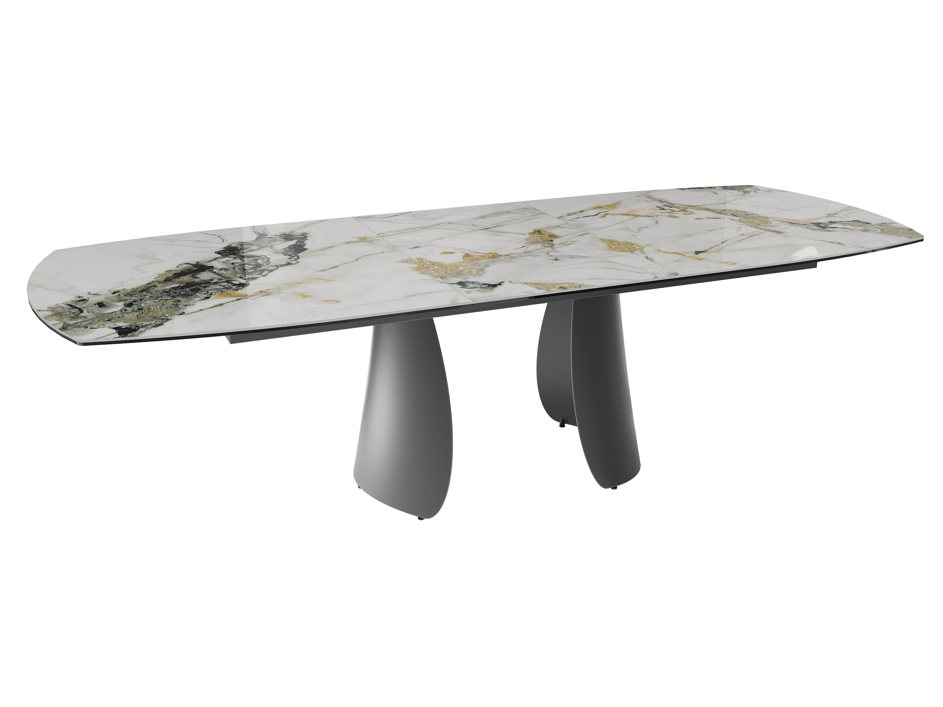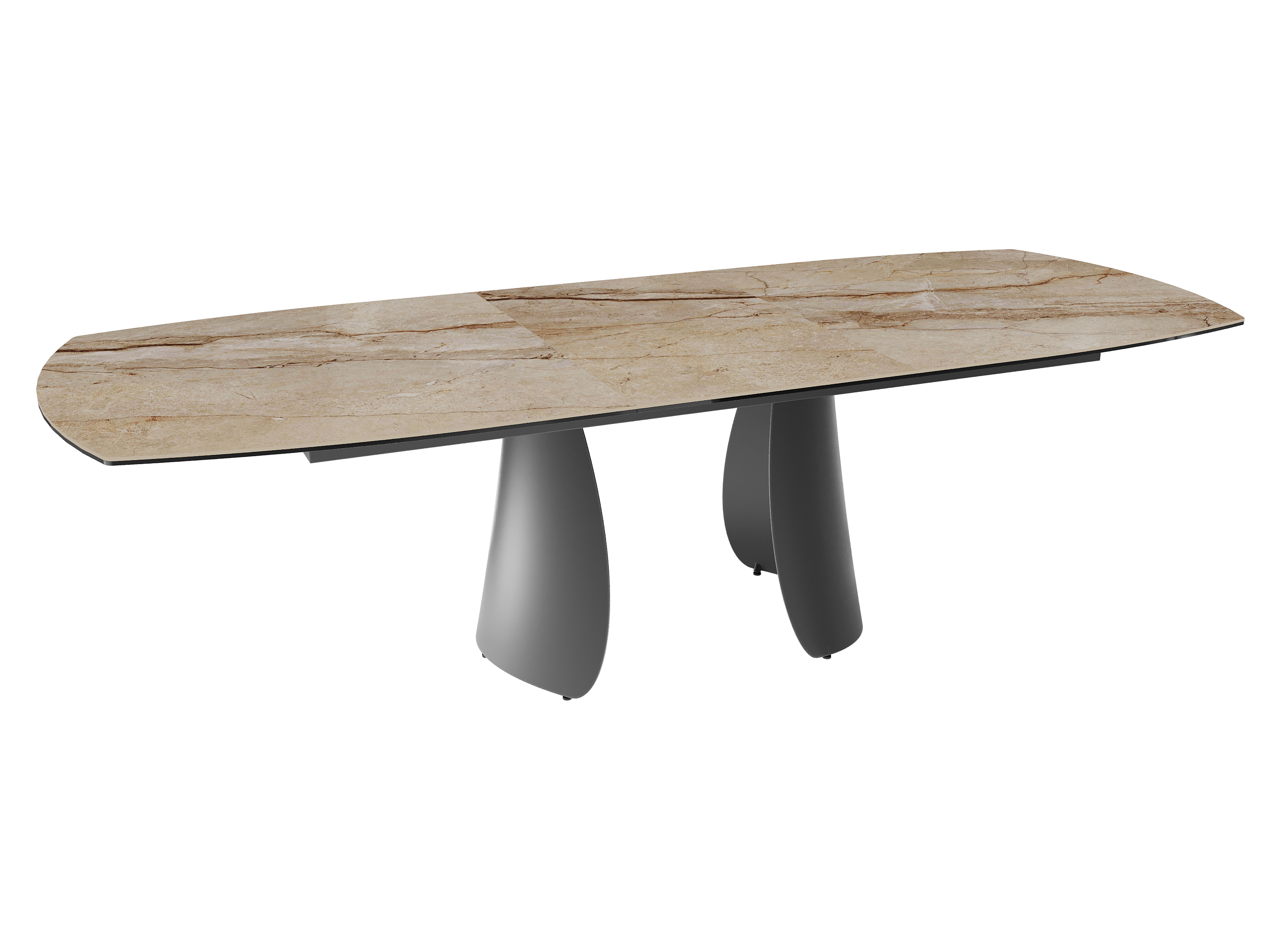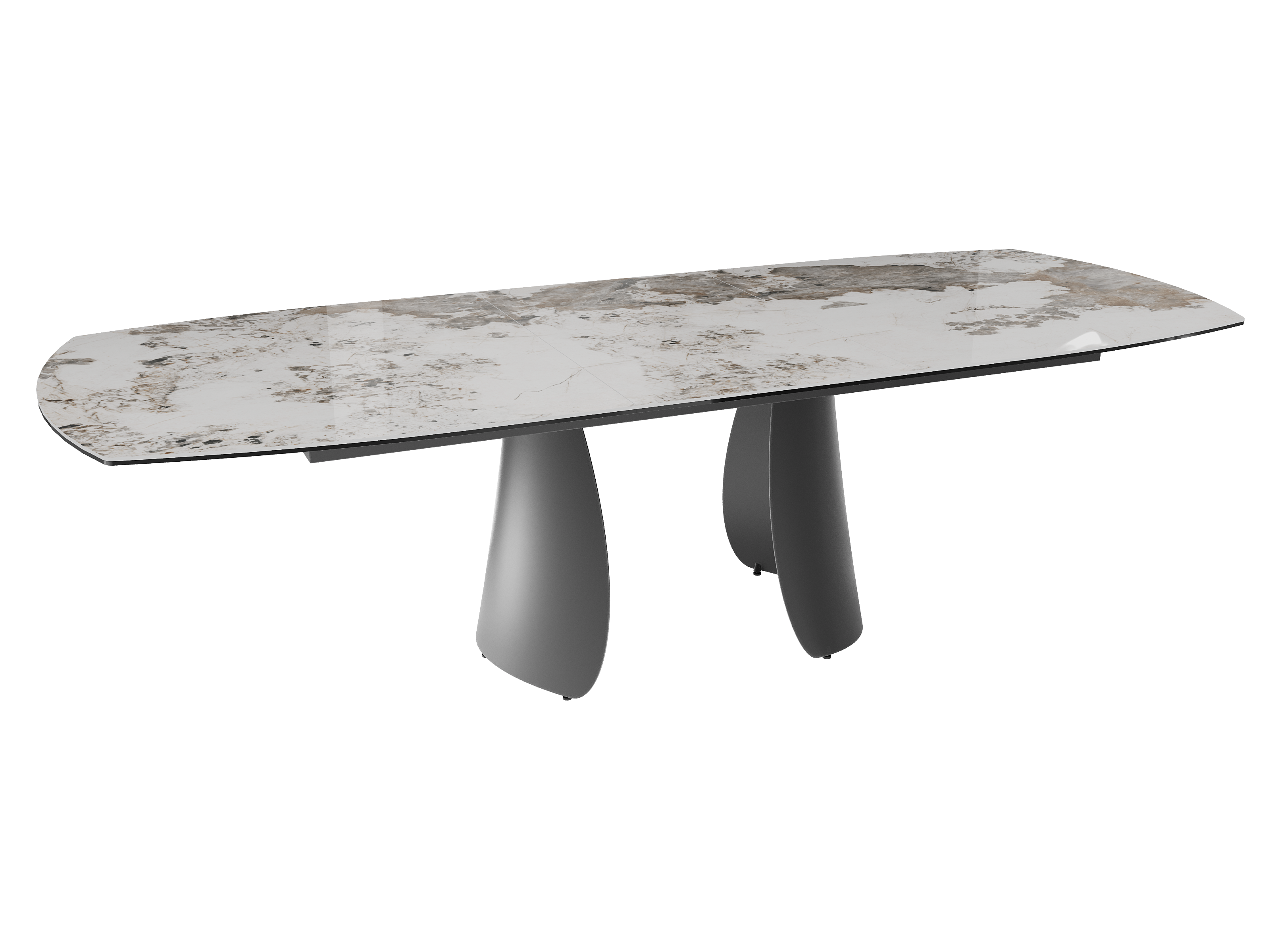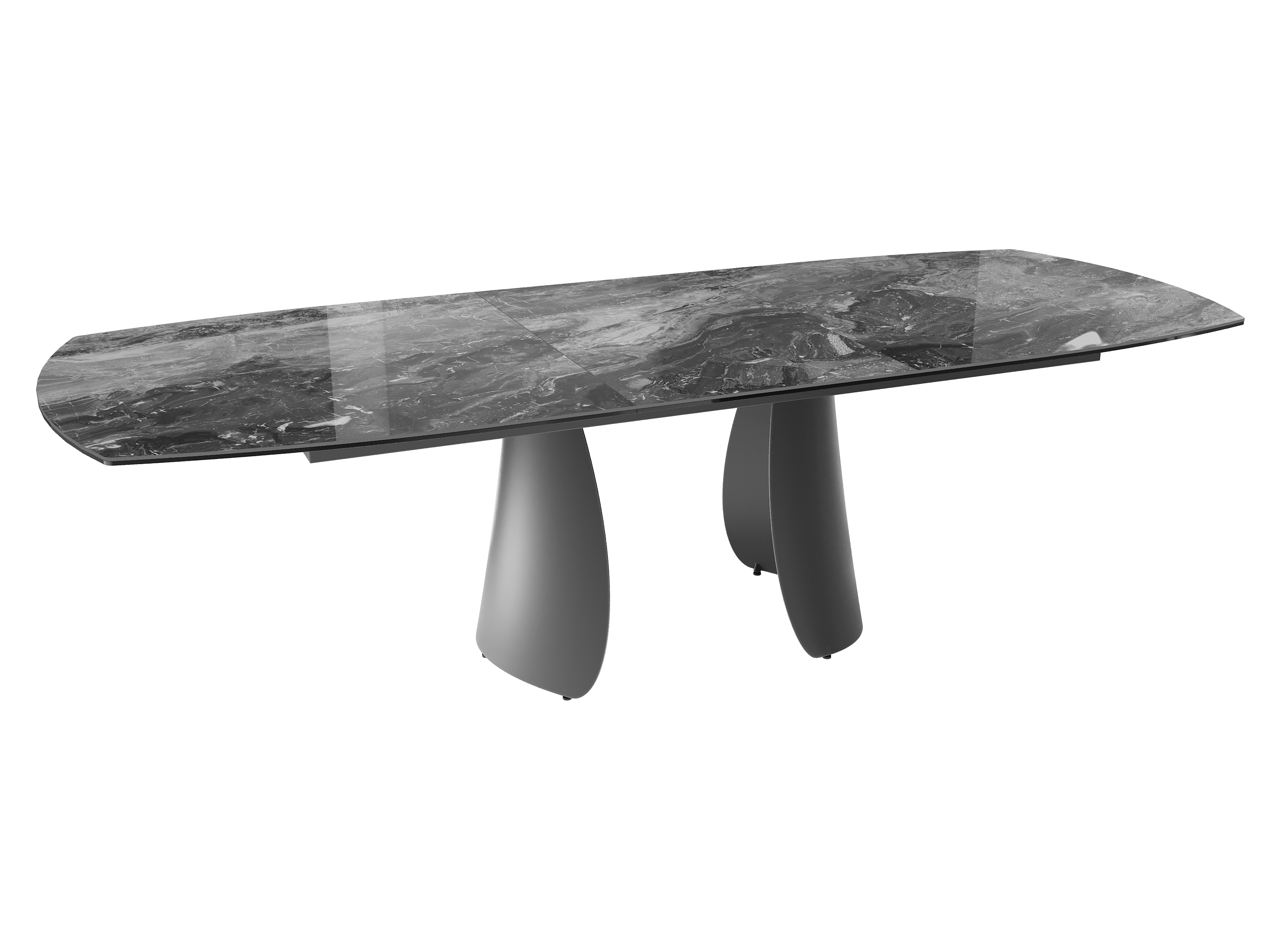 Dimensiones y detalles Peso neto : 136 Kg Color : Titanio Dimensiones : 200 x 100 x 76 cm Dimensiones abiertas : 260 x 100 x 76 cm Altura : 76 cm Ancho : 100 cm Largo : 200 cm Base : Acero lacado negro mate Superficie : Cerámica de 3 mm pegada sobre vidrio de 8 mm