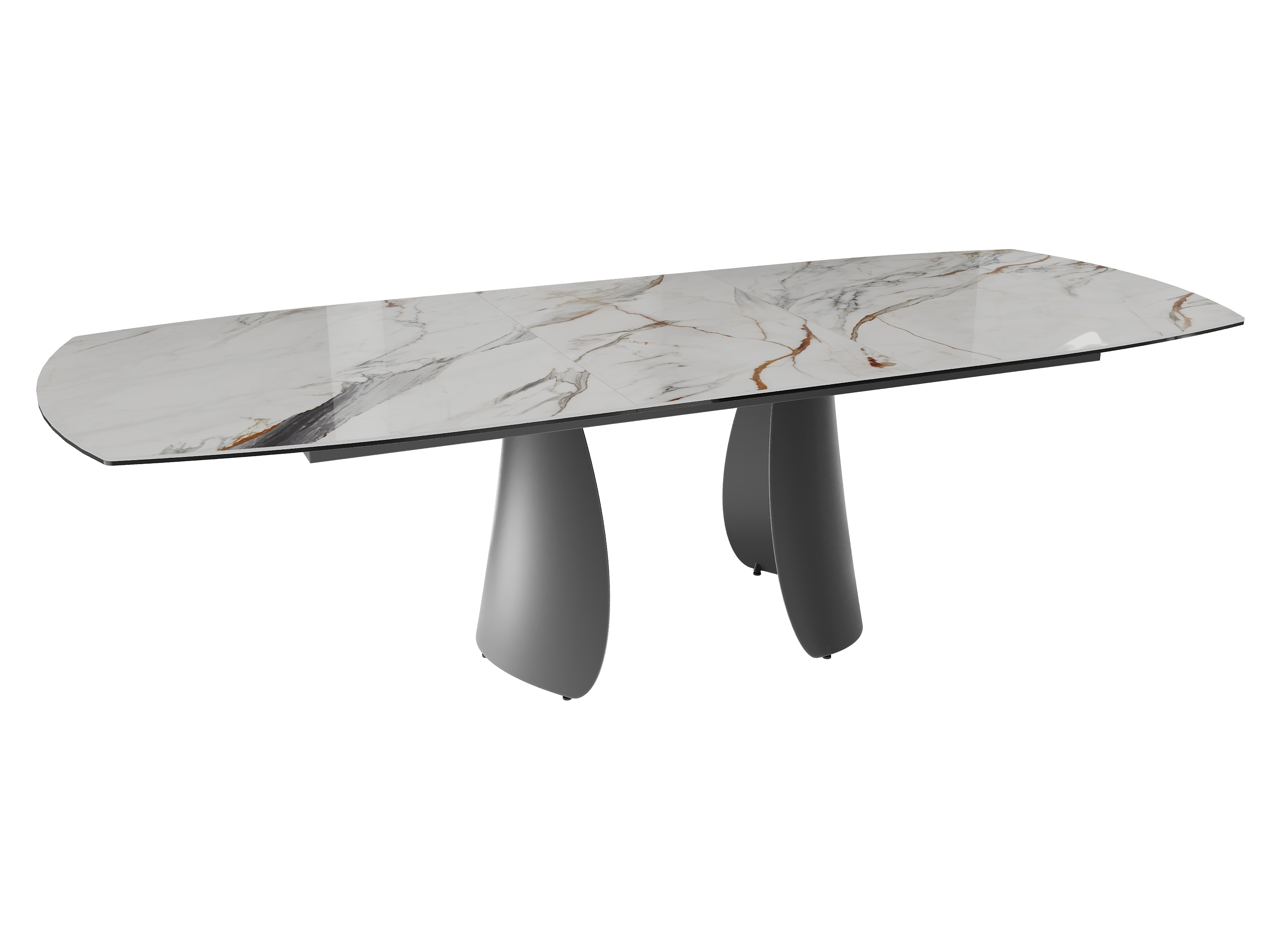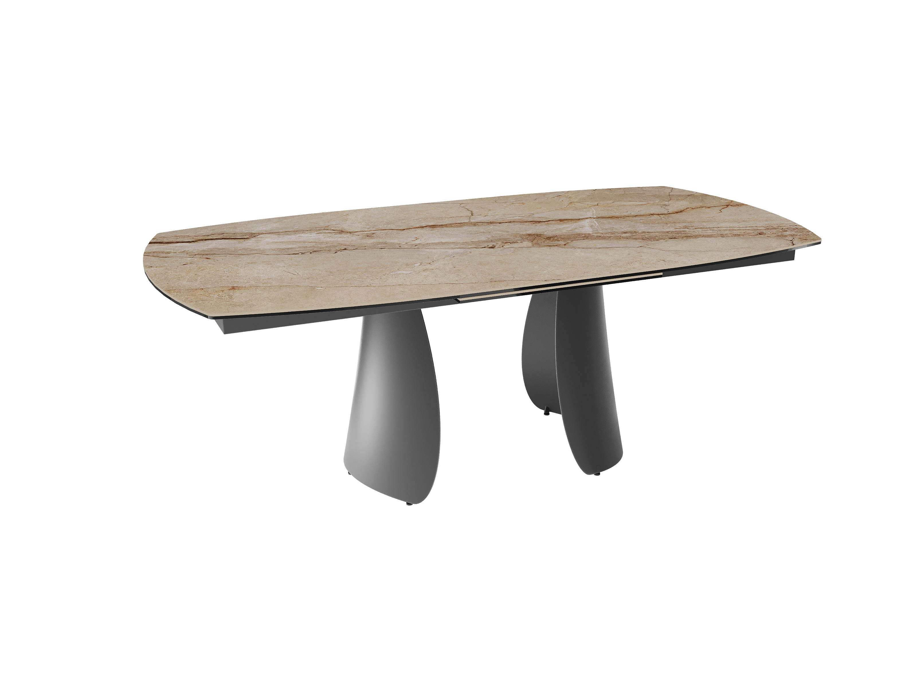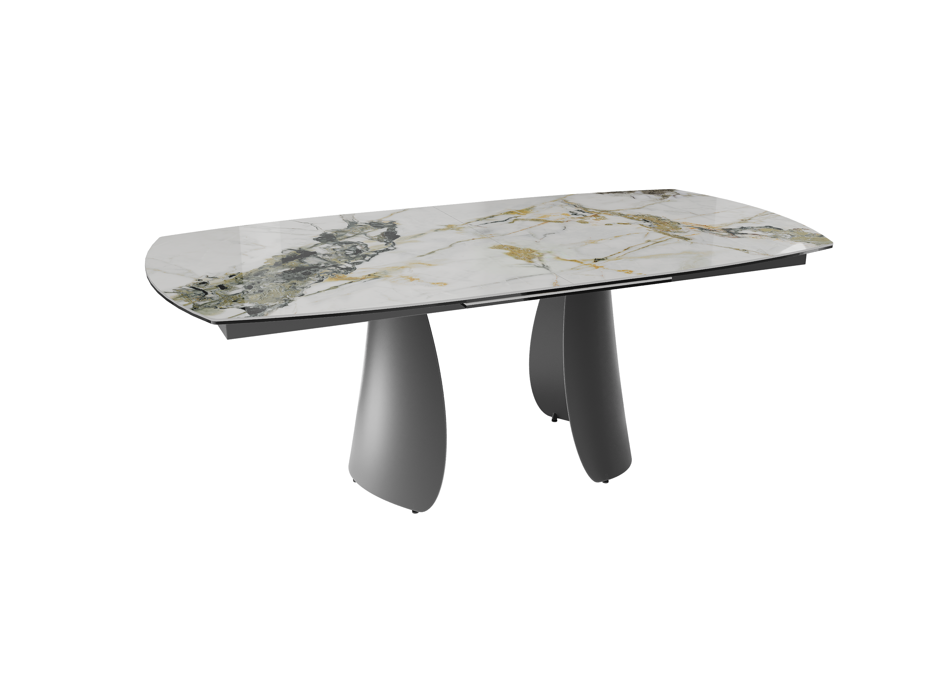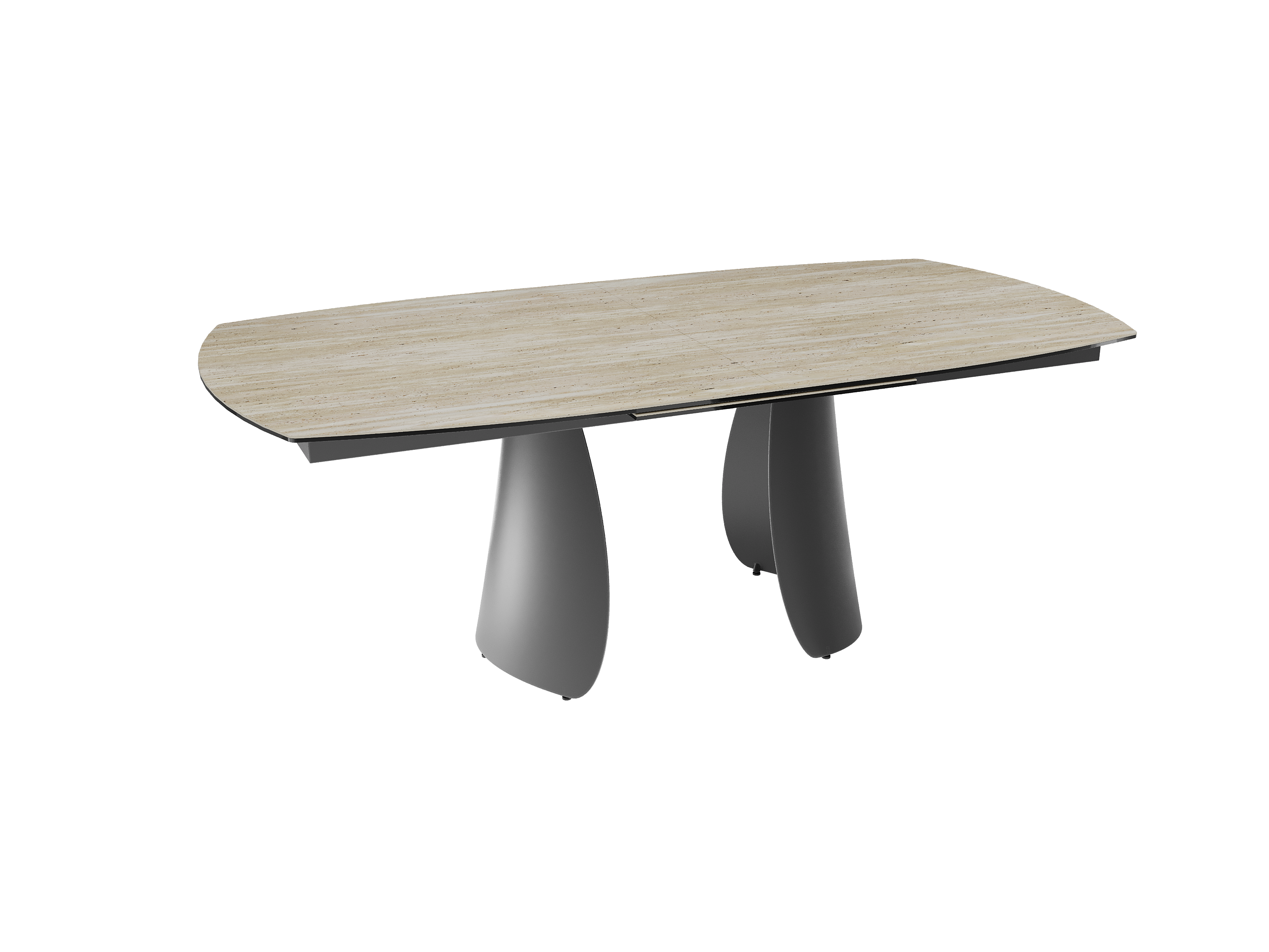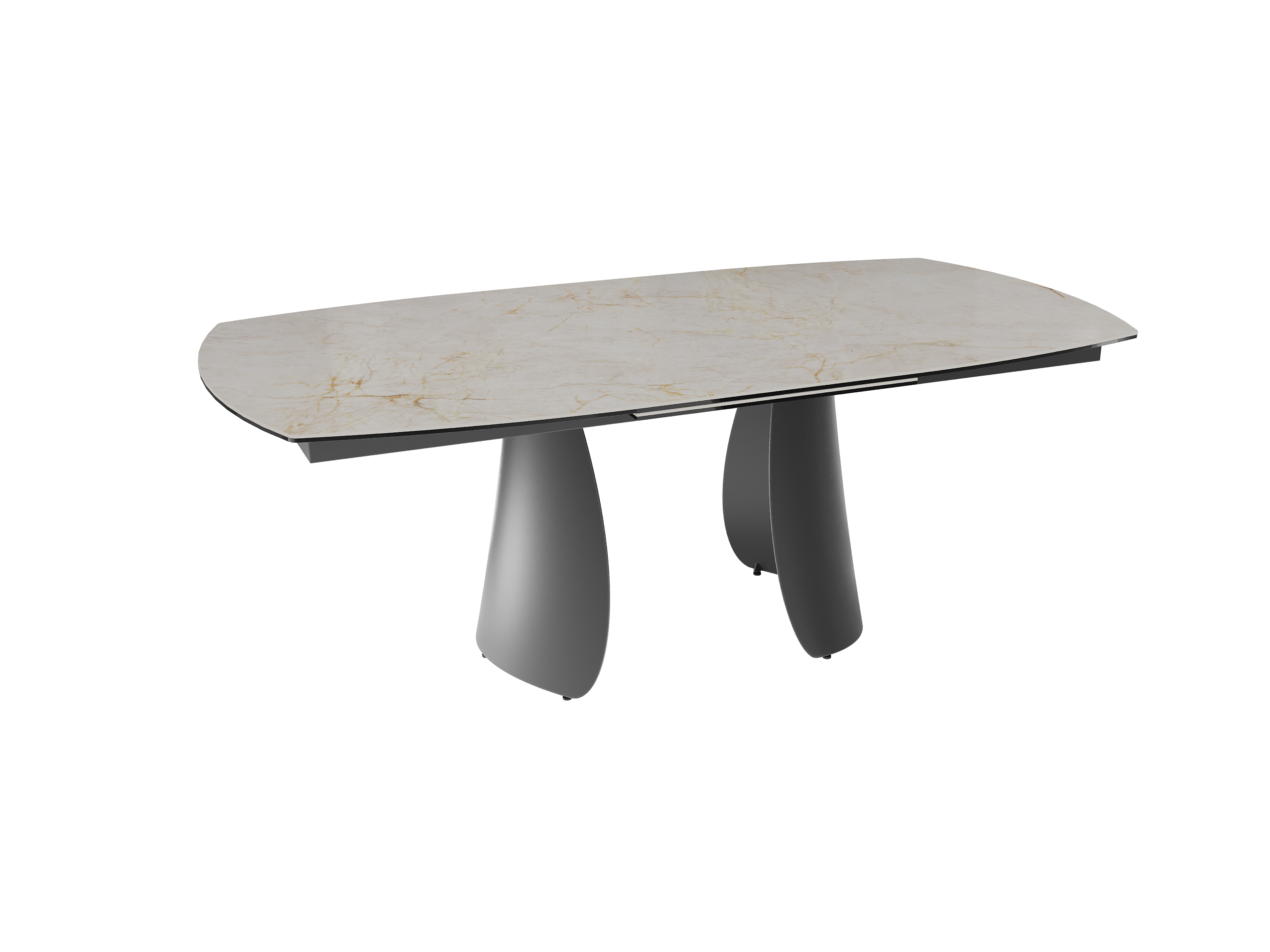 Dimensiones y detalles Peso neto : 136 Kg Color : Titanio Dimensiones : 200 x 100 x 76 cm Dimensiones abiertas : 260 x 100 x 76 cm Altura : 76 cm Ancho : 100 cm Largo : 200 cm Base : Acero lacado negro mate Superficie : Cerámica de 3 mm pegada sobre vidrio de 8 mm