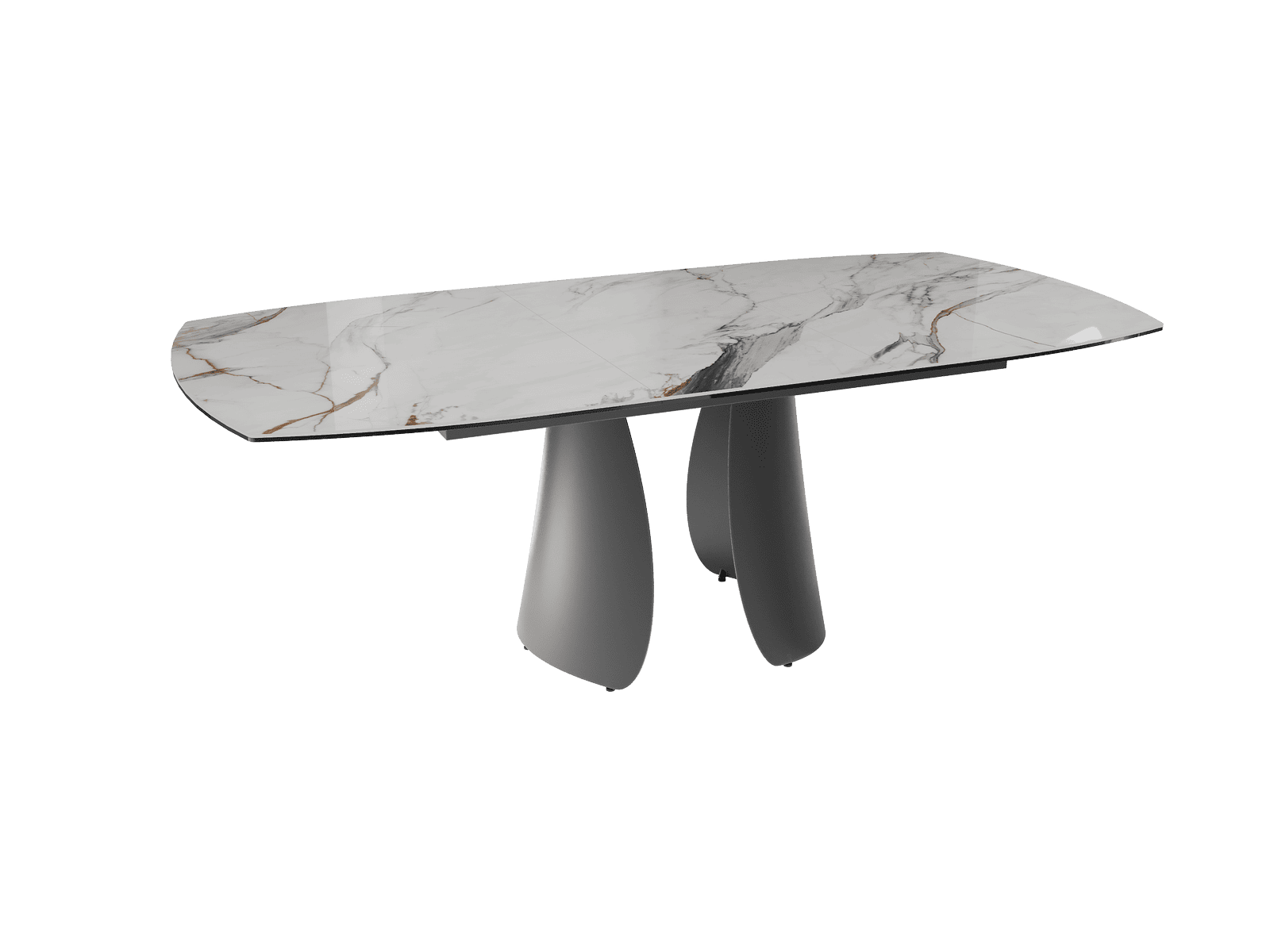 Dimensiones y detalles Peso neto : 132 Kg Color : Mármol Fiorentino Dimensiones : 160 x 100 x 76 cm Dimensiones abiertas : 210 x 100 x 76 cm Altura : 76 cm Ancho : 100 cm Largo : 160 cm Base : Acero lacado negro mate Superficie : Cerámica de 6 mm pegada sobre vidrio de 8 mm