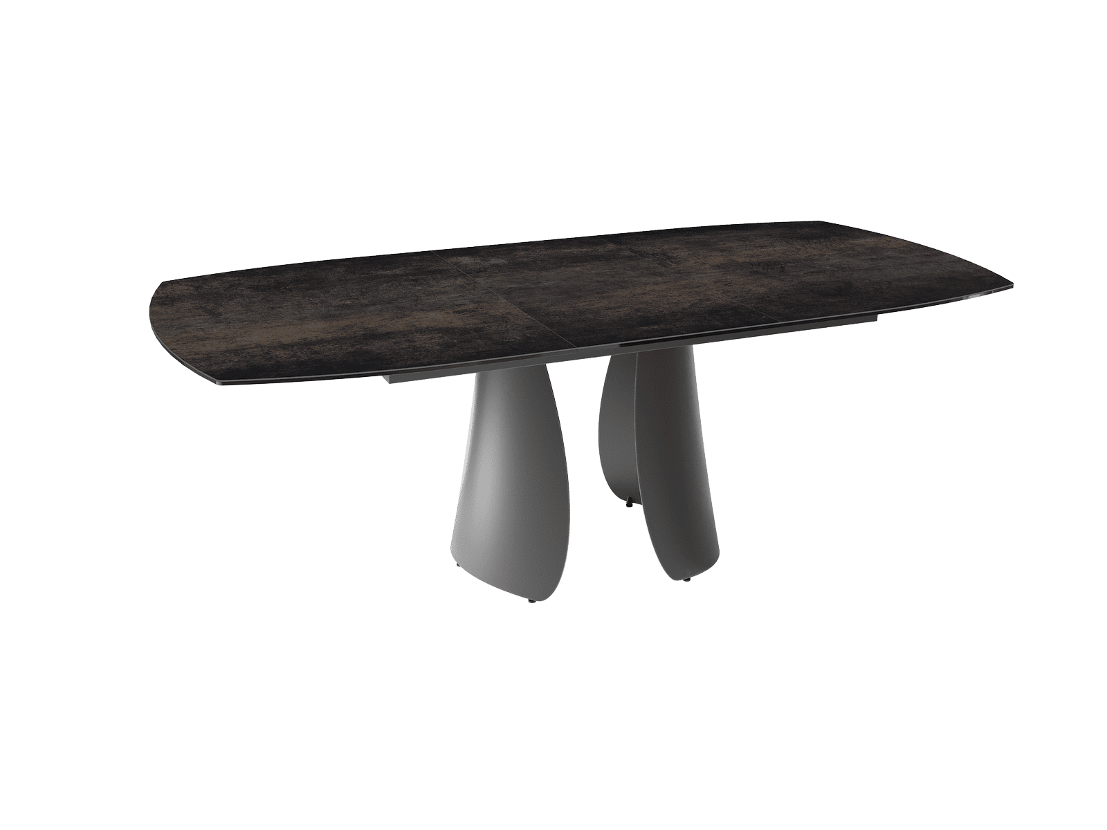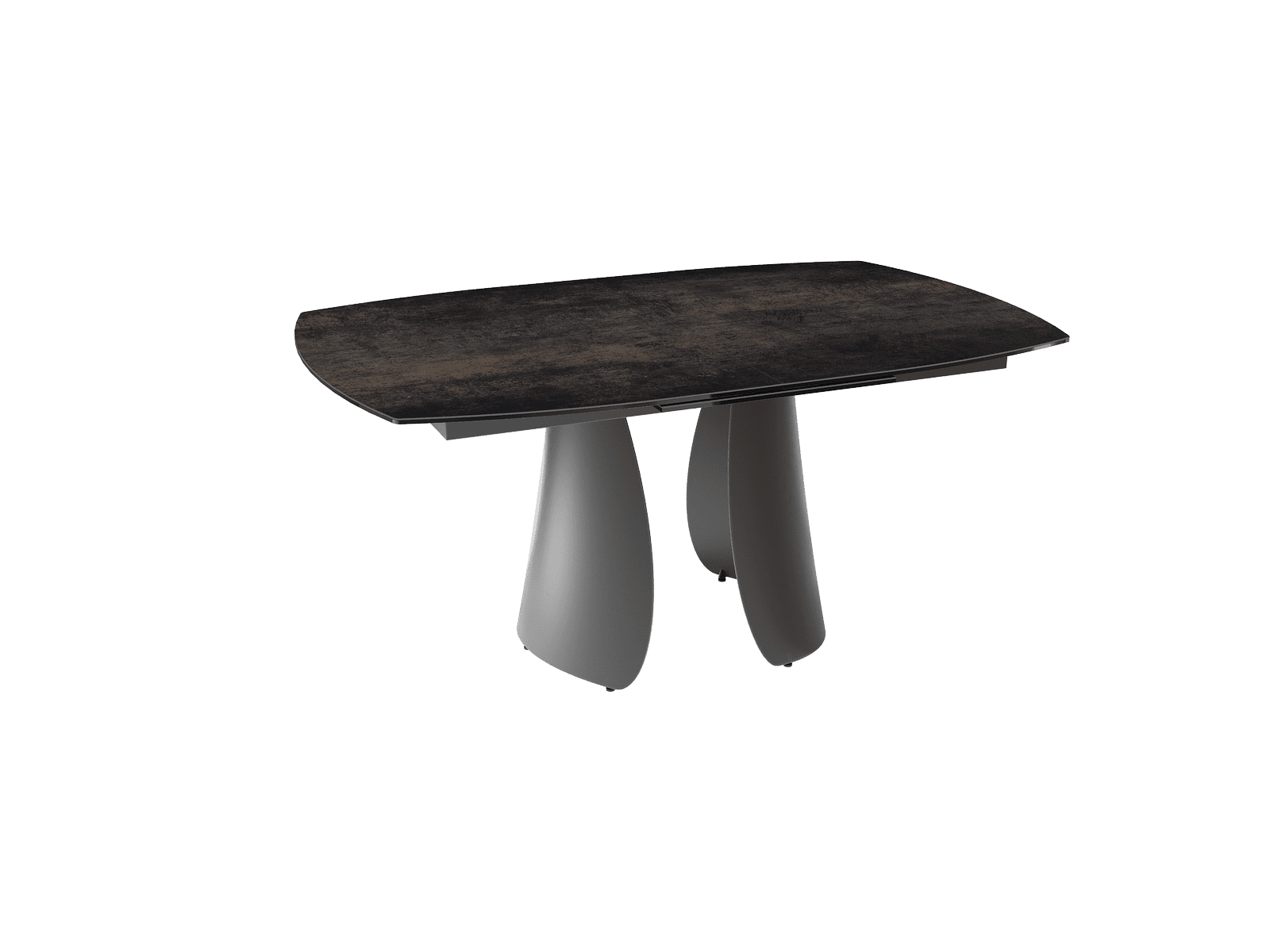 Dimensiones y detalles Peso neto : 119 Kg Color : Acero Dimensiones : 160 x 100 x 76 cm Dimensiones abiertas : 210 x 100 x 76 cm Altura : 76 cm Ancho : 100 cm Largo : 160 cm Base : Acero lacado negro mate Superficie : Cerámica de 3 mm pegada sobre vidrio de 8 mm