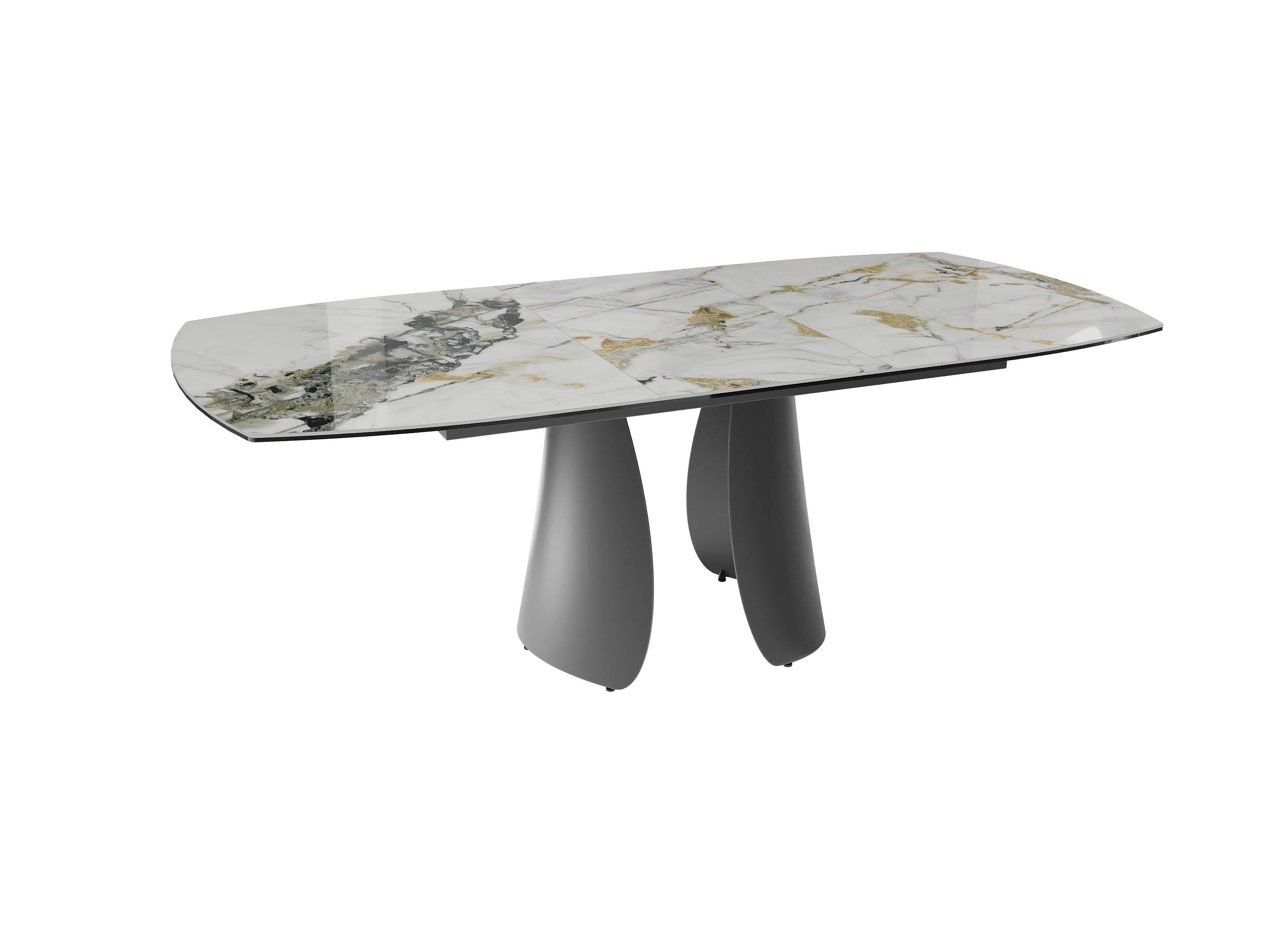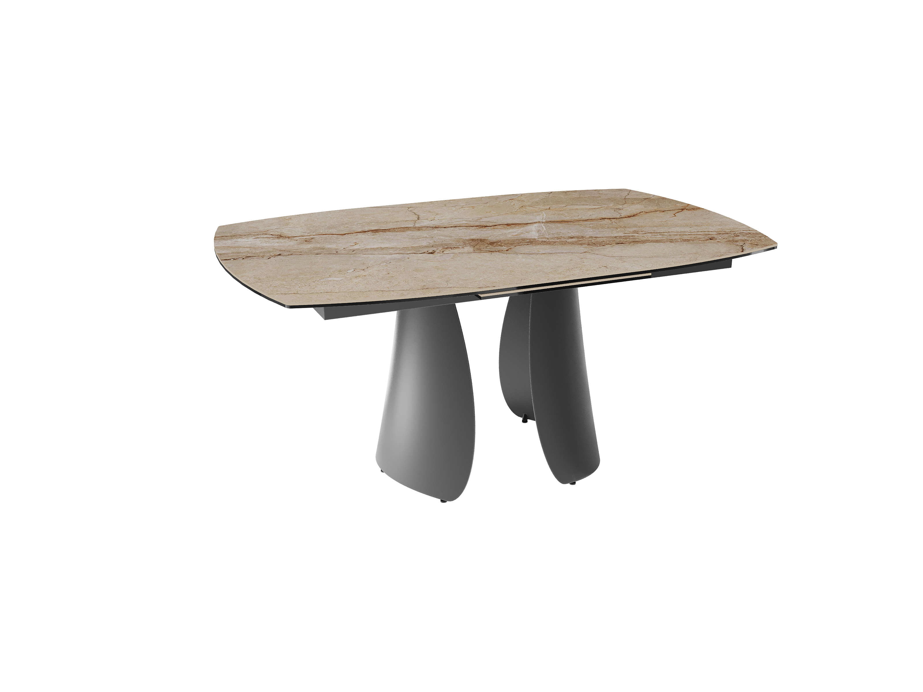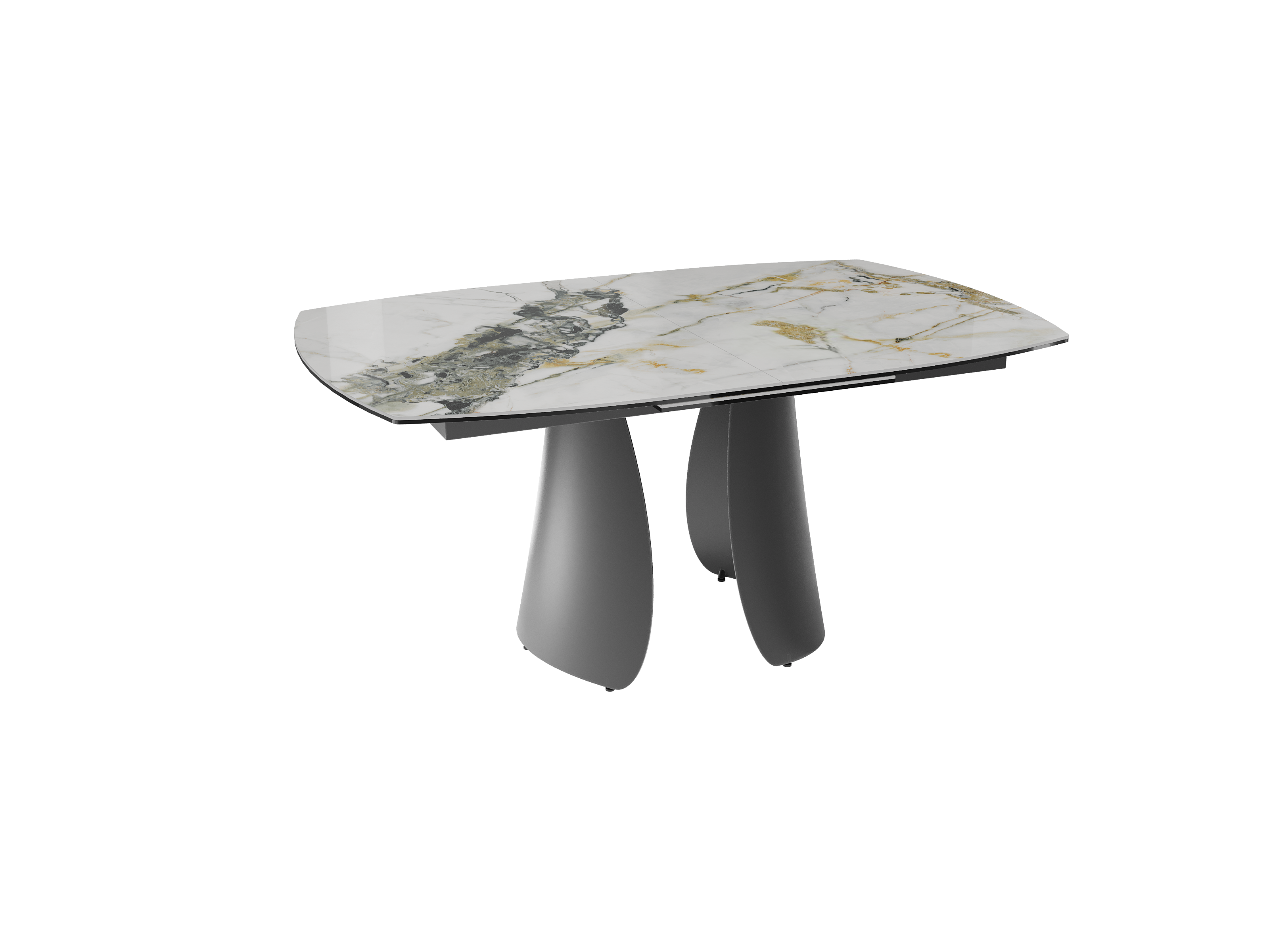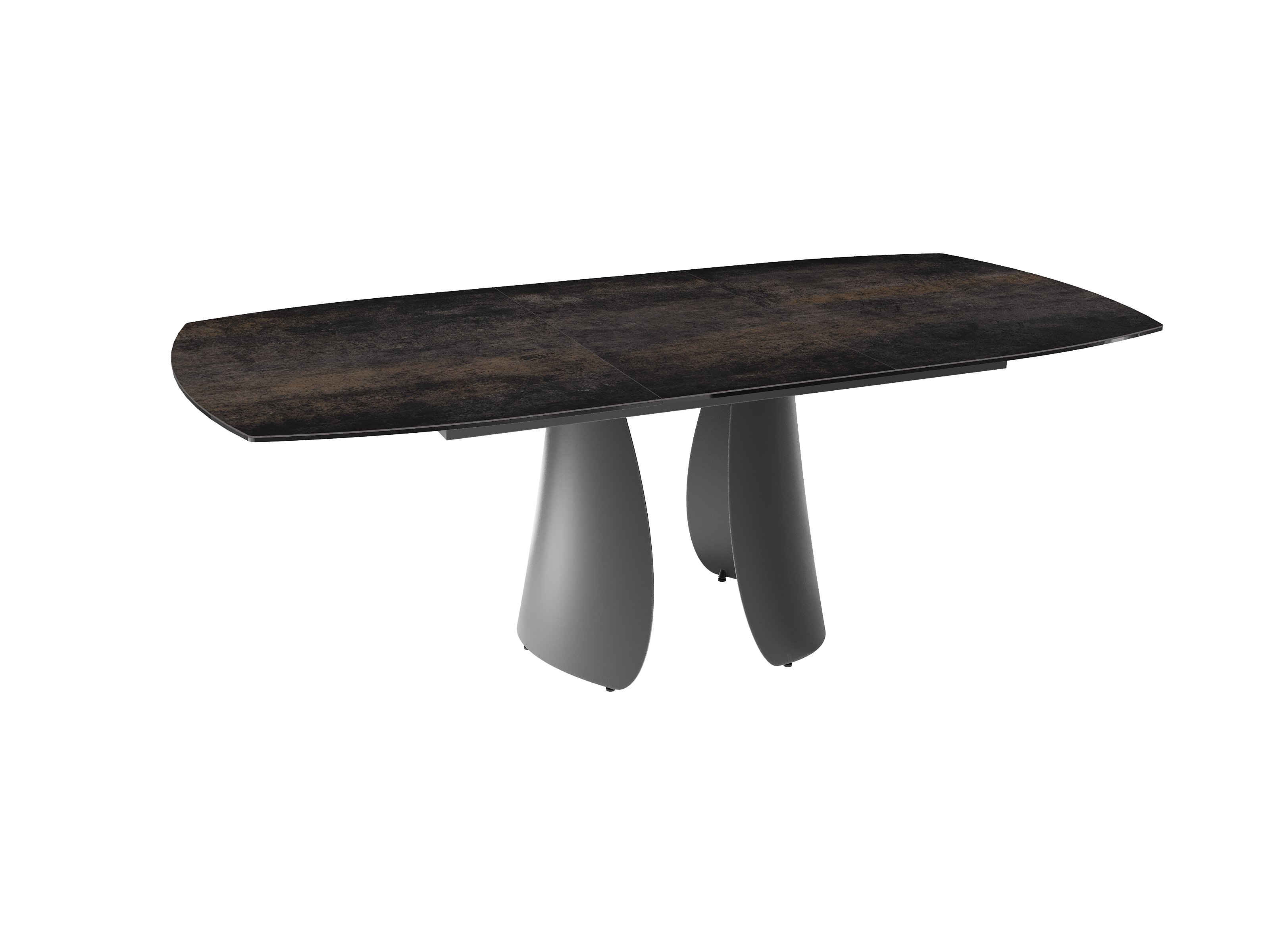 Dimensiones y detalles Peso neto : 119 Kg Color : Titanio Dimensiones : 160 x 100 x 76 cm Dimensiones abiertas : 210 x 100 x 76 cm Altura : 76 cm Ancho : 100 cm Largo : 160 cm Base : Acero lacado negro mate Superficie : Cerámica de 3 mm pegada sobre vidrio de 8 mm