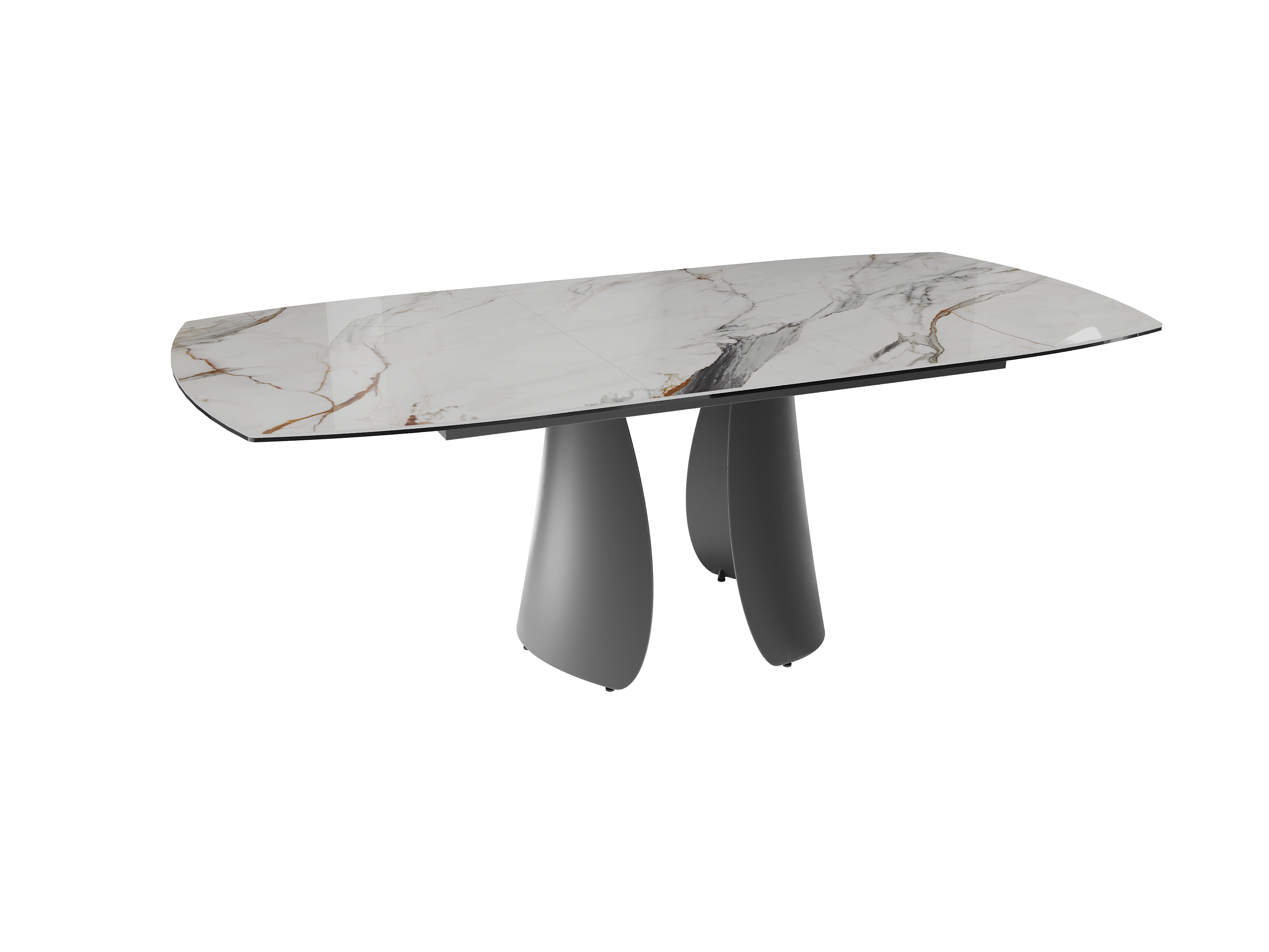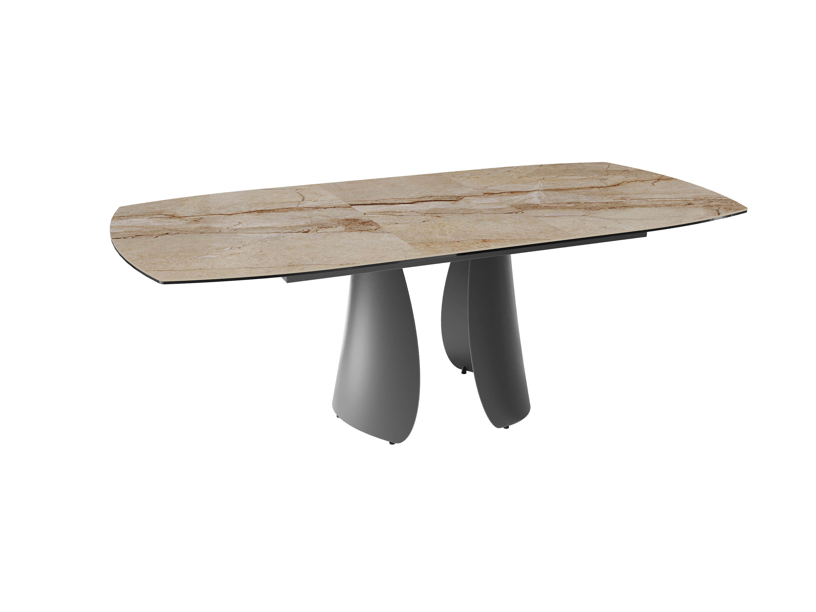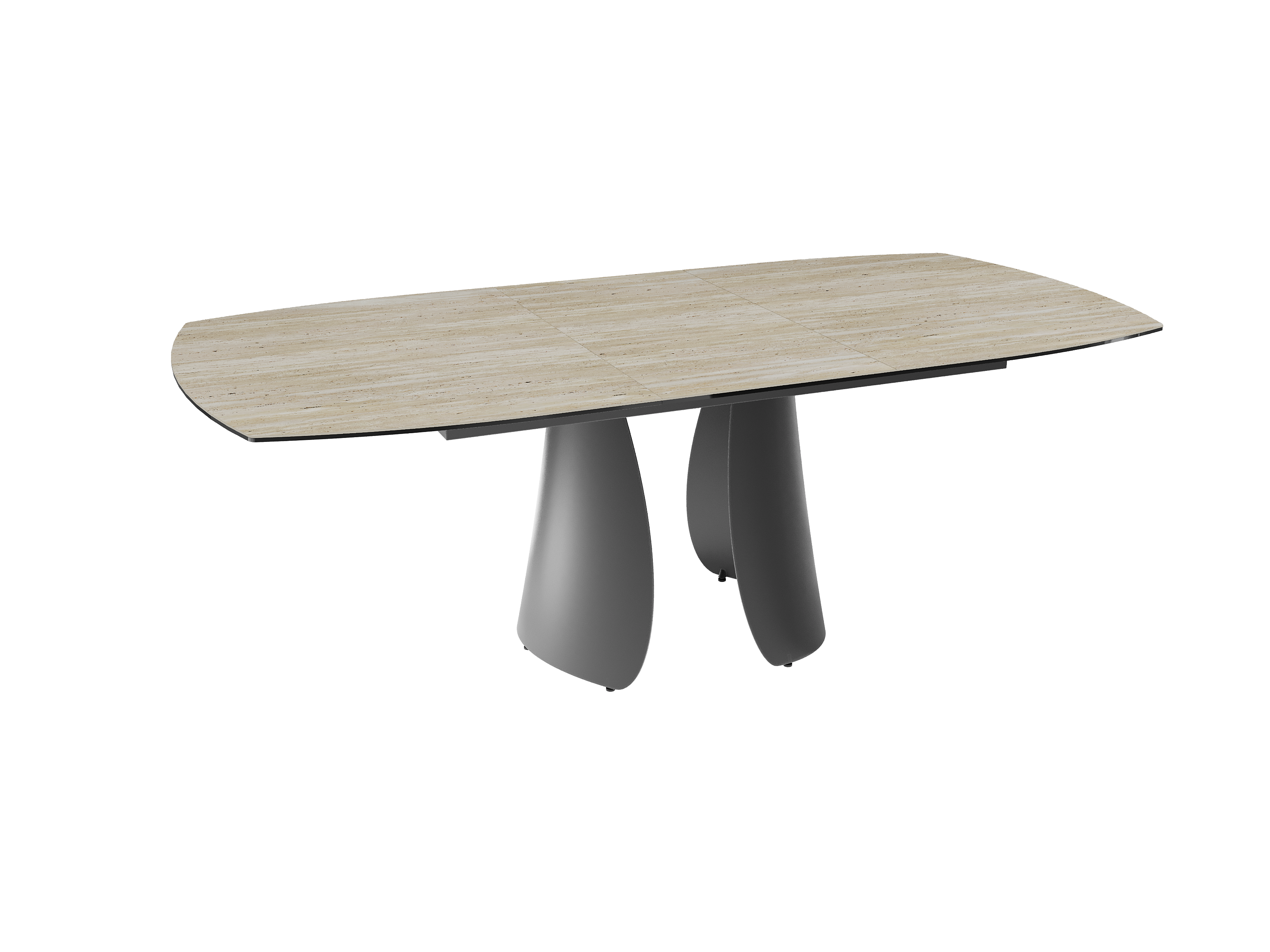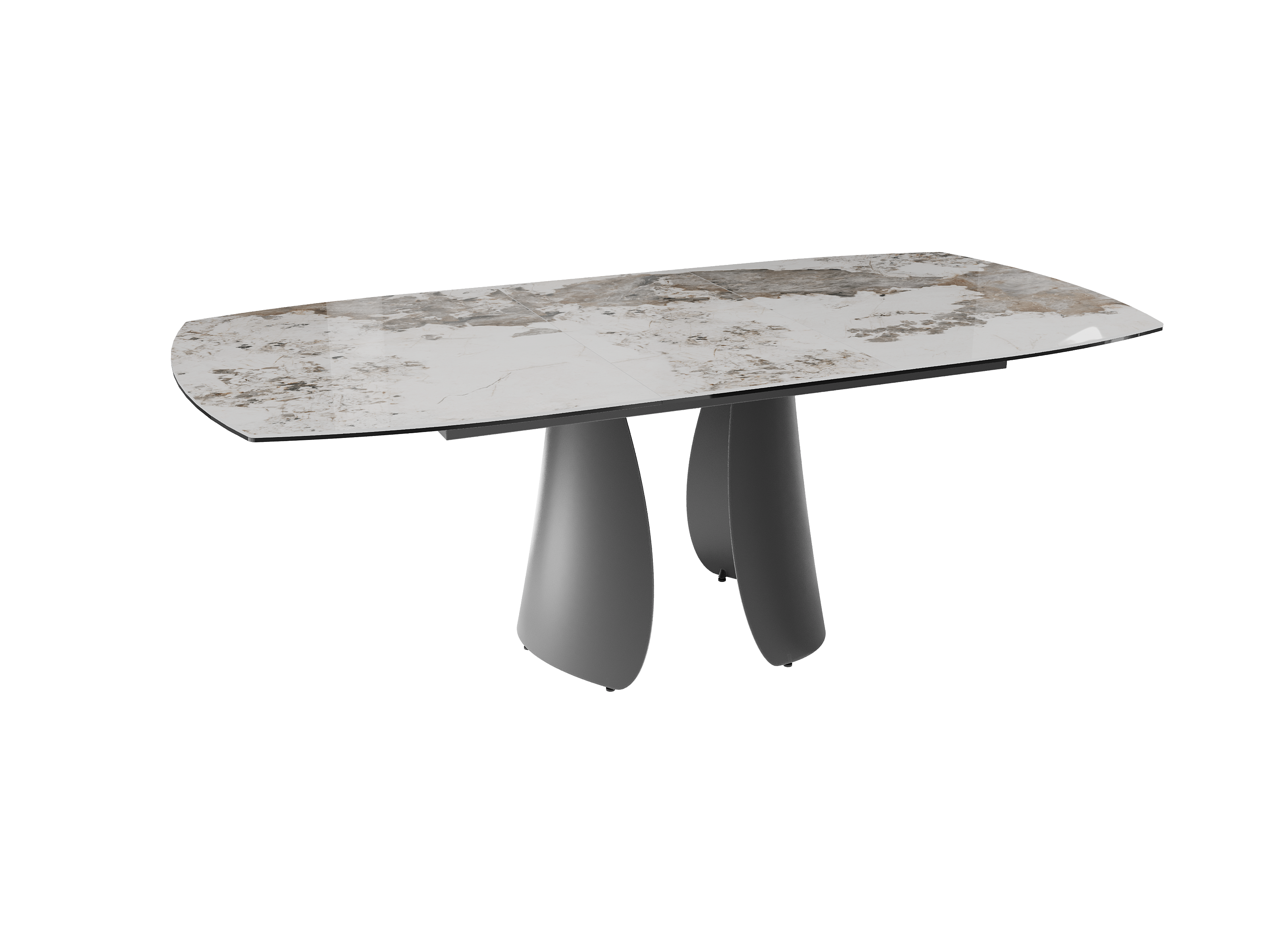 Dimensiones y detalles Peso neto : 119 Kg Color : Titanio Dimensiones : 160 x 100 x 76 cm Dimensiones abiertas : 210 x 100 x 76 cm Altura : 76 cm Ancho : 100 cm Largo : 160 cm Base : Acero lacado negro mate Superficie : Cerámica de 3 mm pegada sobre vidrio de 8 mm