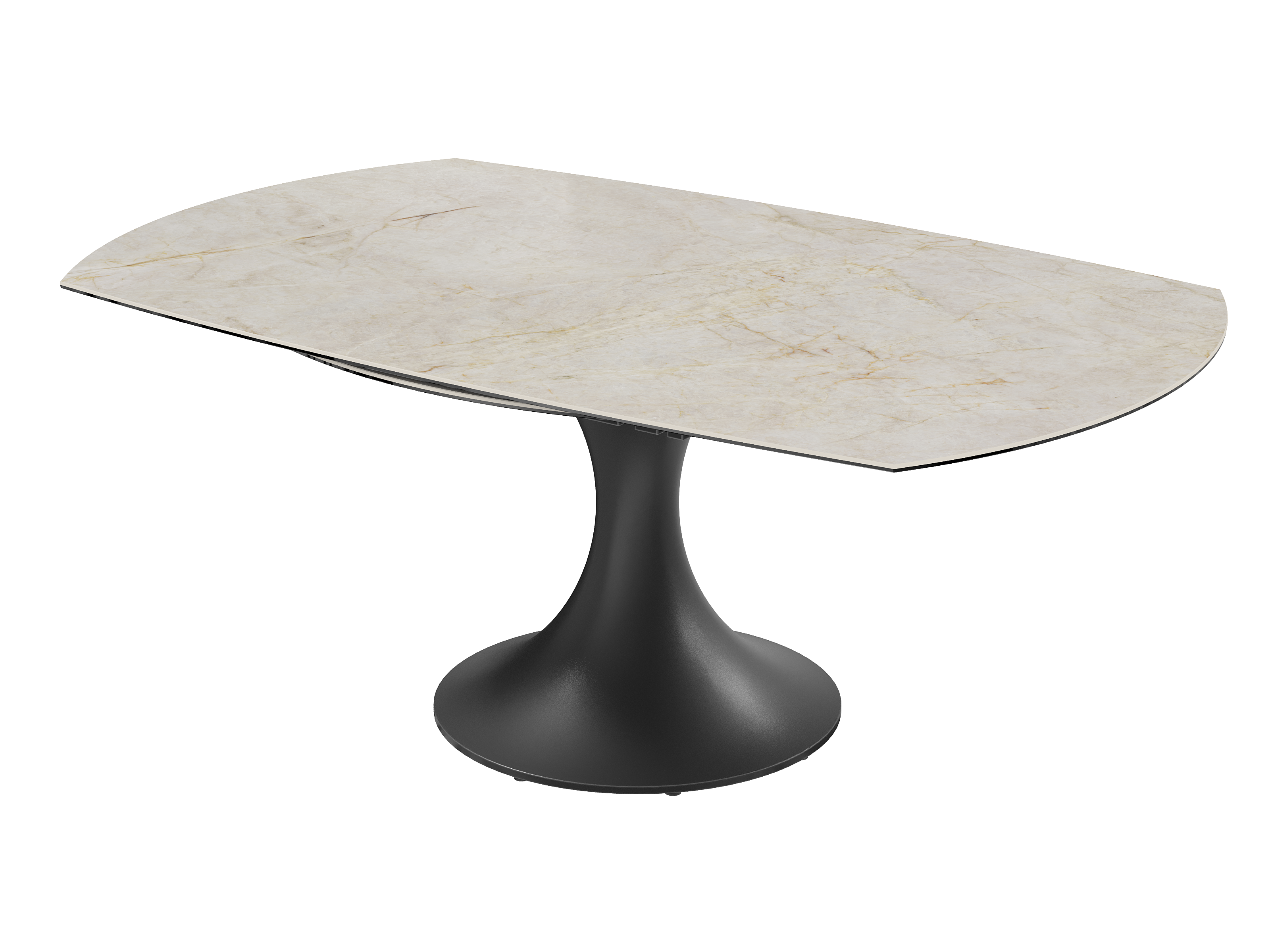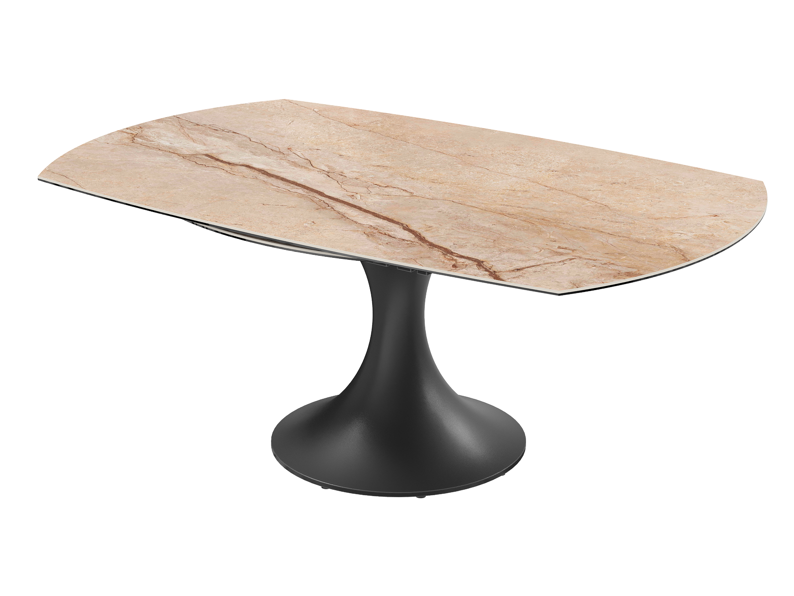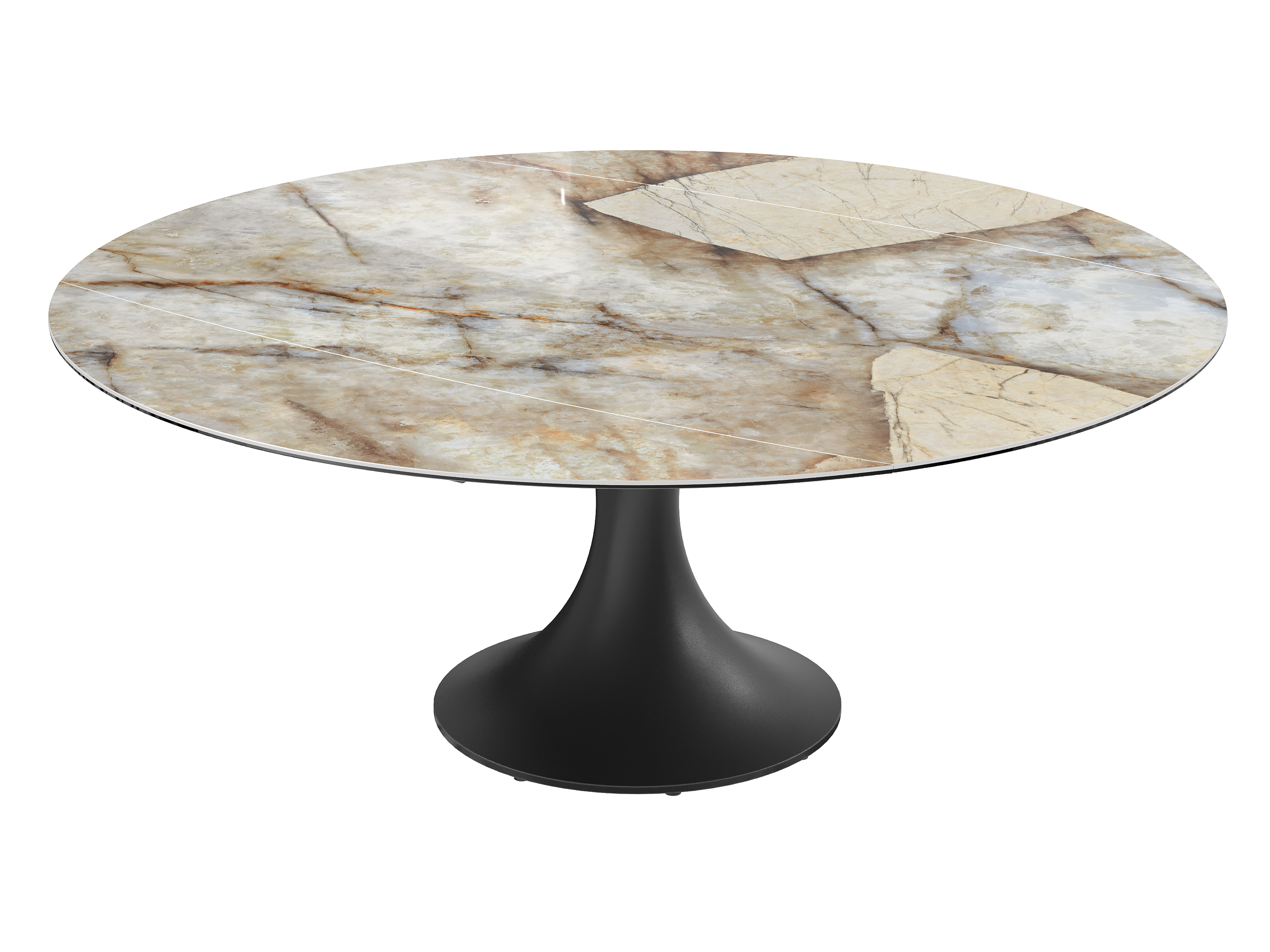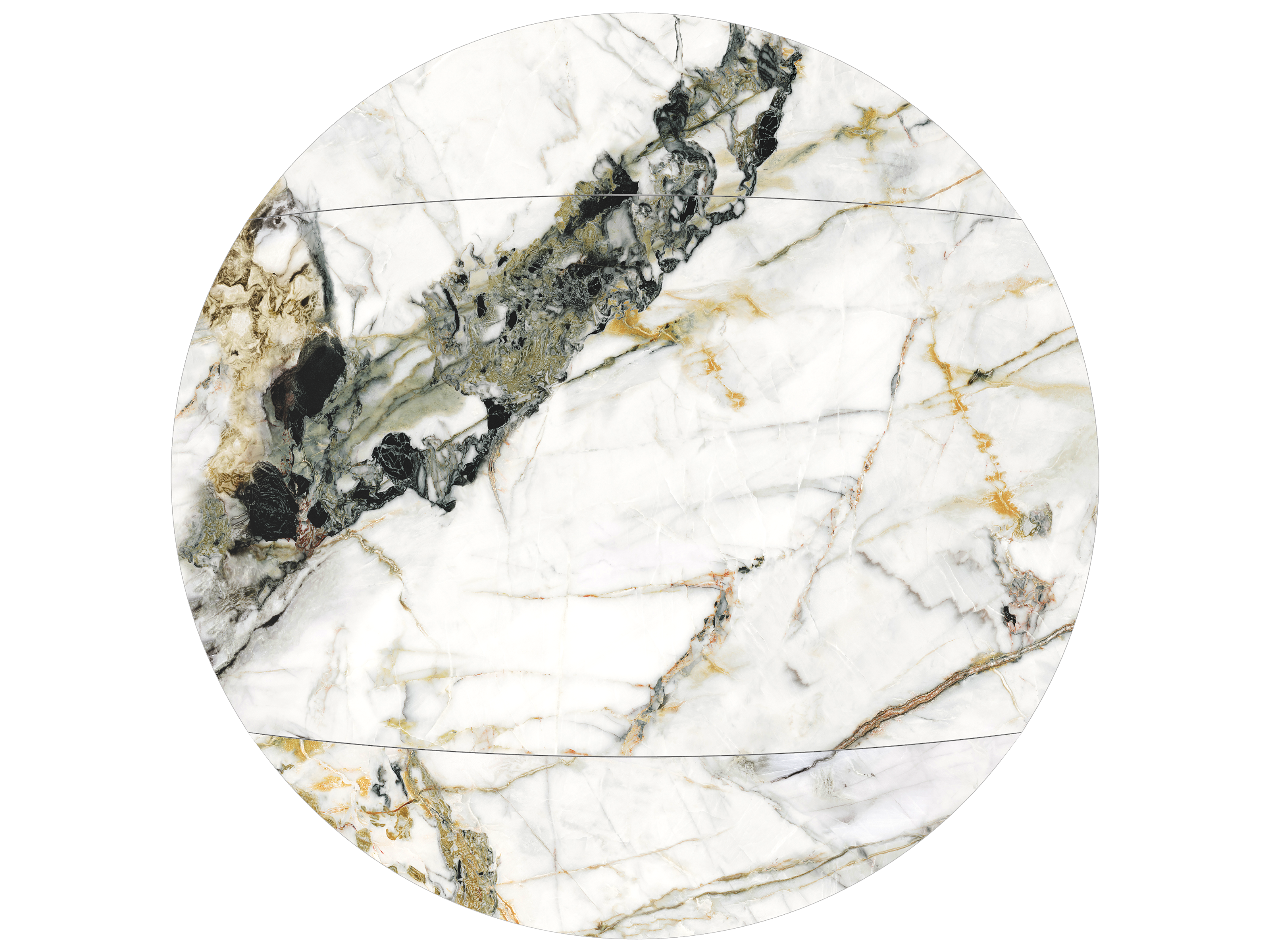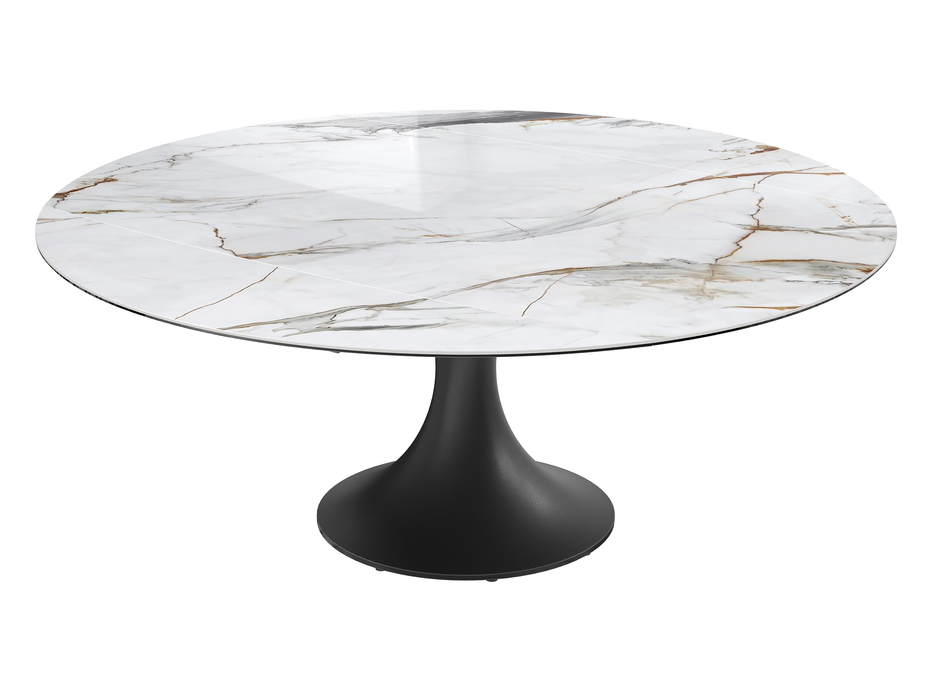 Dimensiones y detalles Peso neto : 178 Kg Color : Breccia Diámetro : 190 cm Dimensiones cerrado : 190 x 115 x 78 cm Dimensiones abiertas : Ø 190 x 75 cm Altura : 75/78 cm Ancho : 115 cm Largo : 190 cm Mecanismo sincronizado Base : Acero lacado negro mate Superficie : Cerámica de 6 mm pegada sobre vidrio de 8 mm