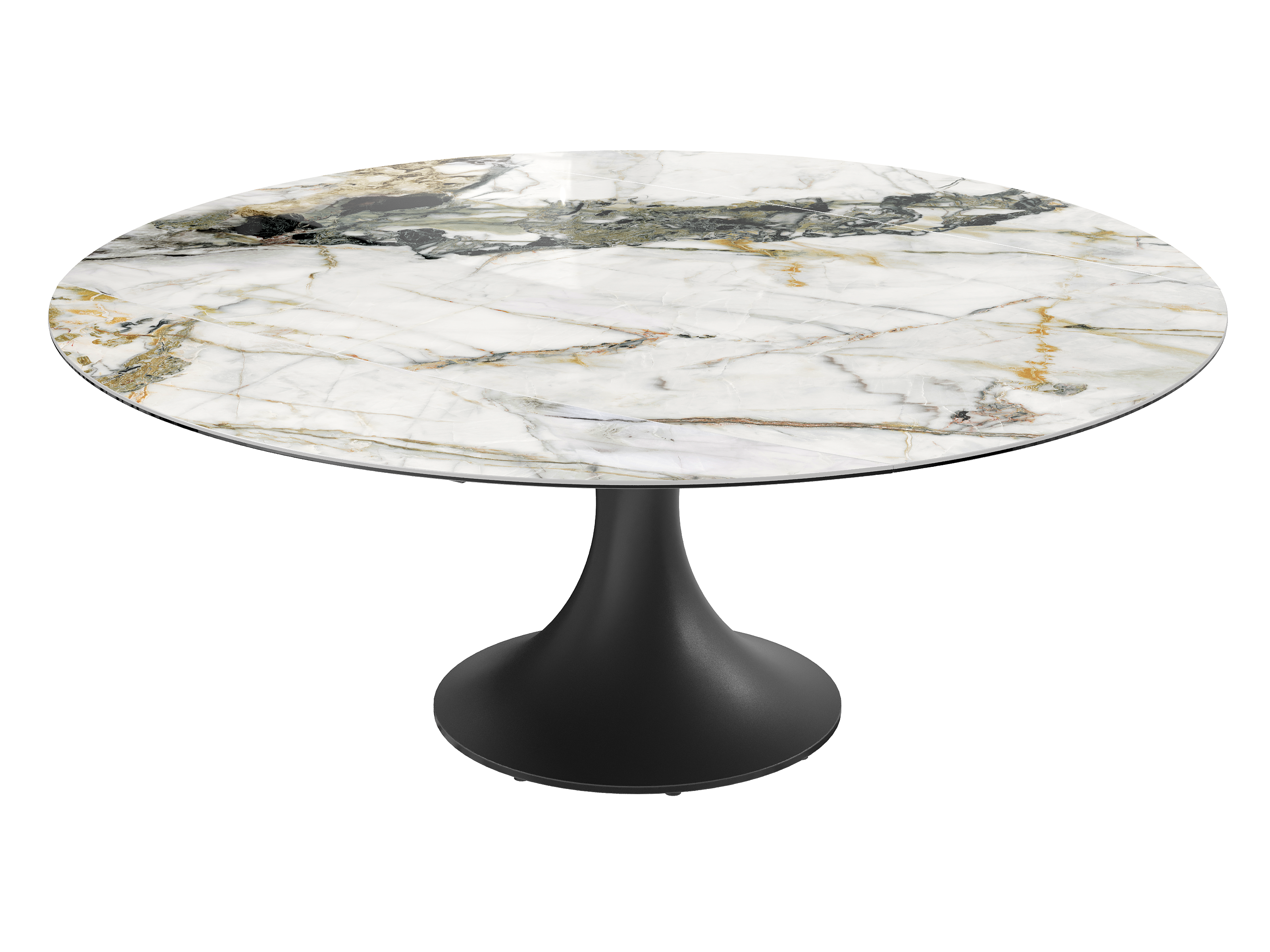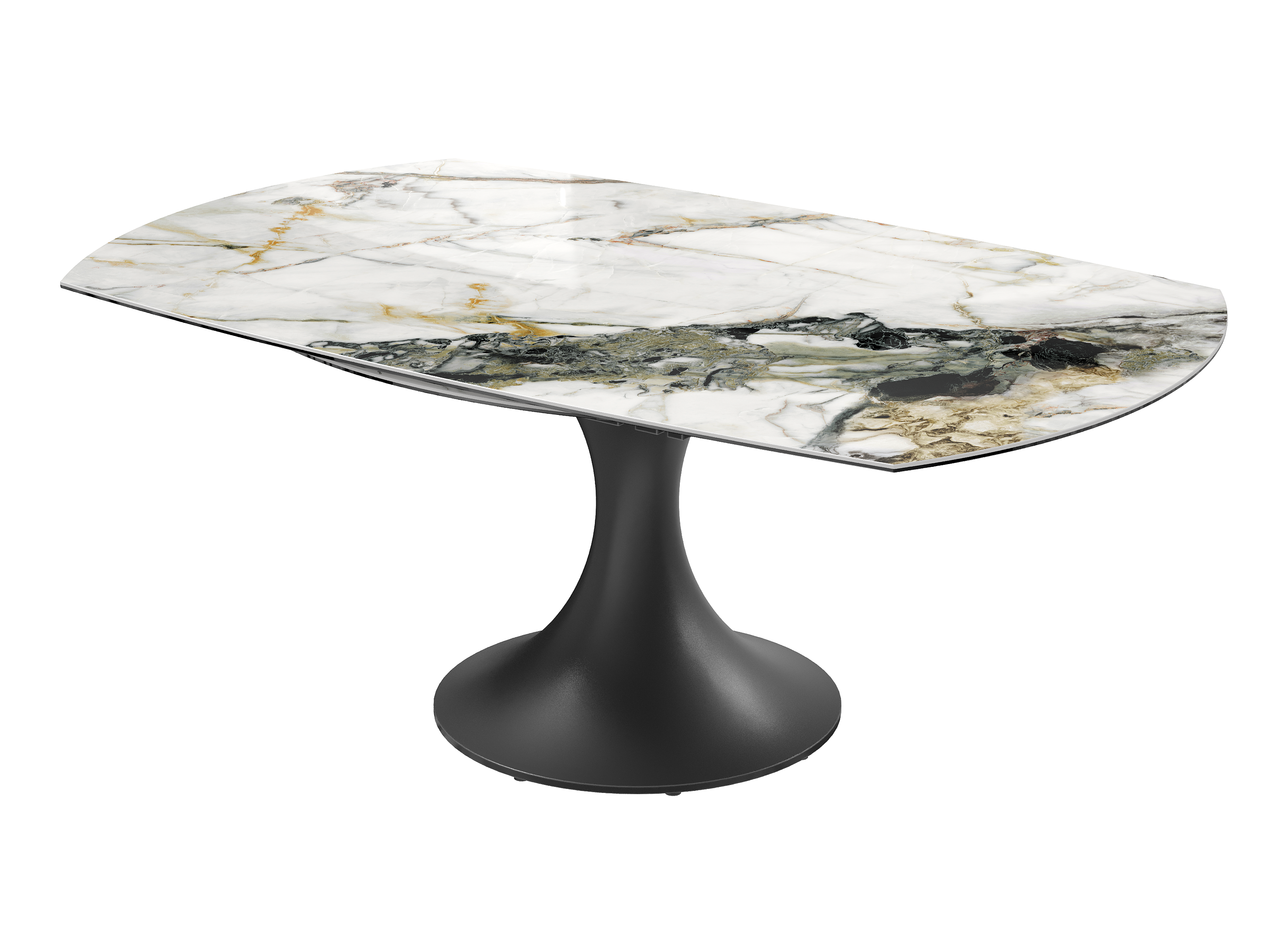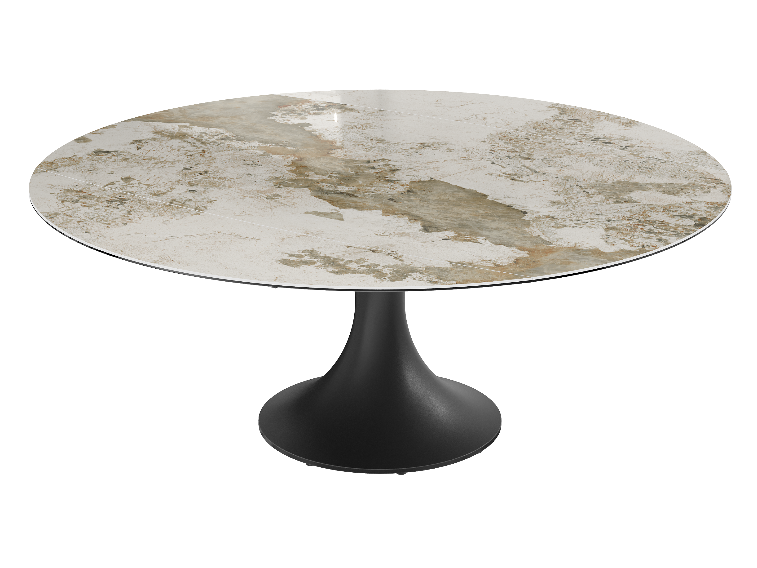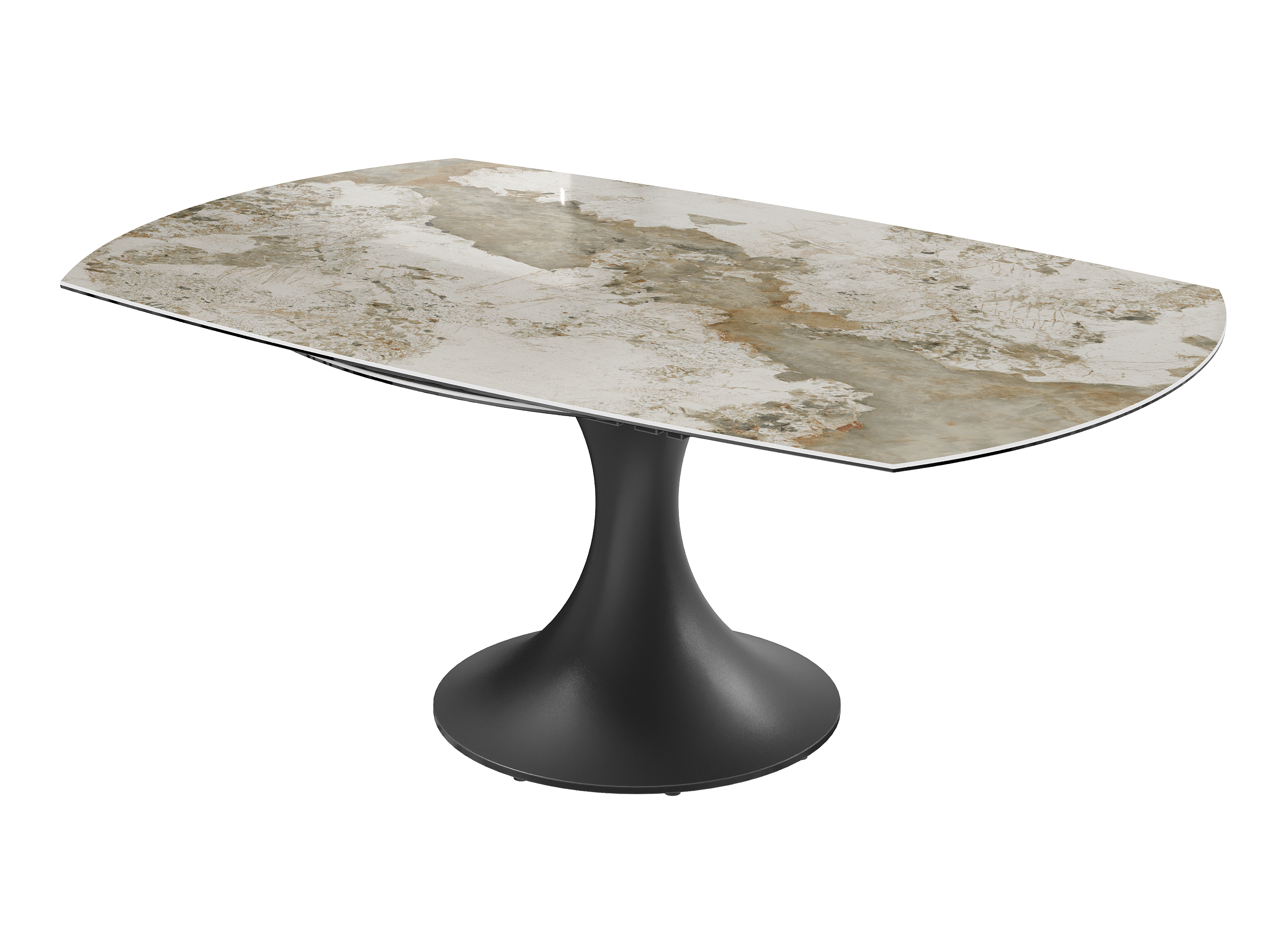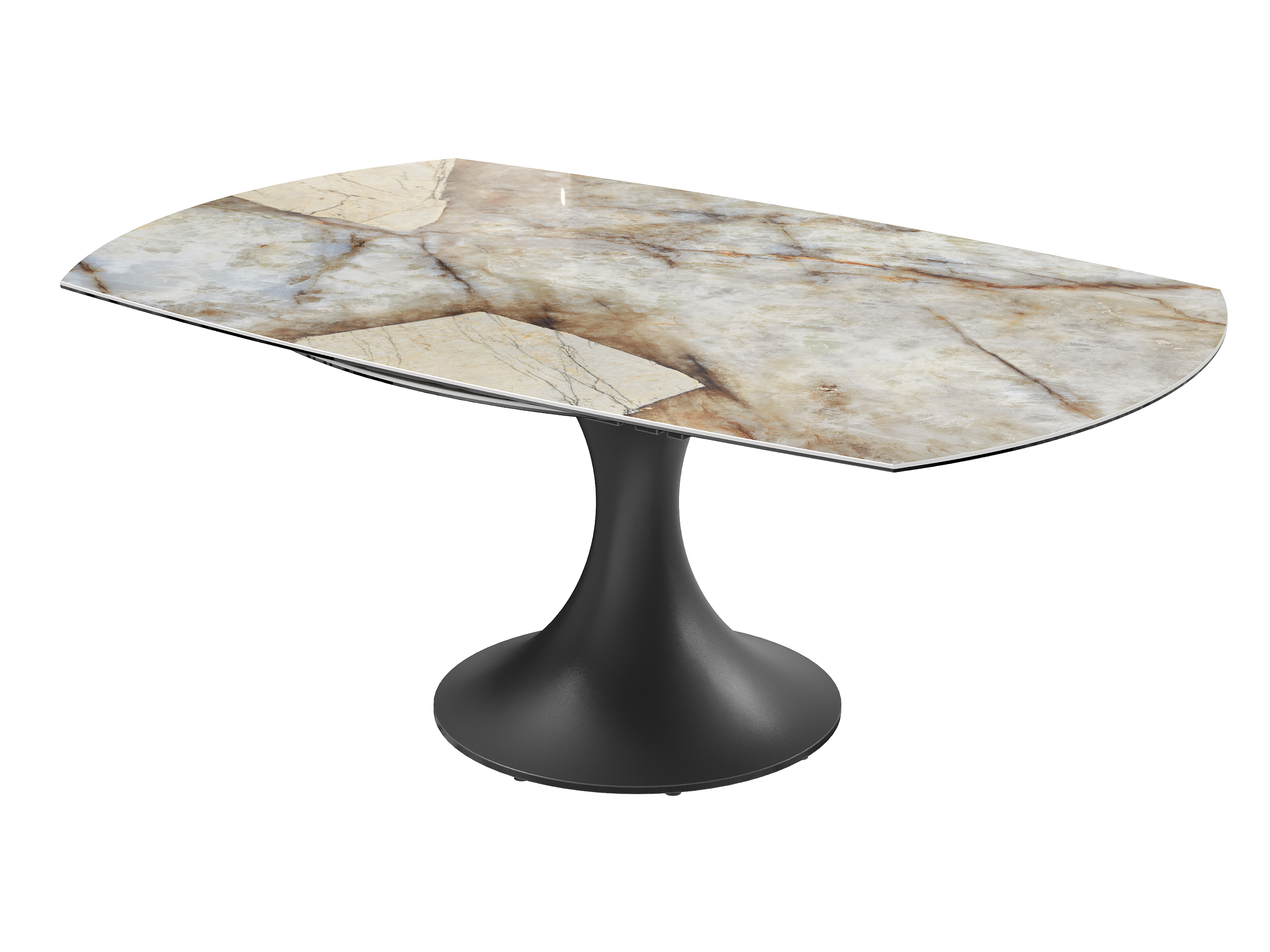 Dimensiones y detalles Peso neto : 178 Kg Color : Breccia Diámetro : 190 cm Dimensiones cerrado : 190 x 115 x 78 cm Dimensiones abiertas : Ø 190 x 75 cm Altura : 75/78 cm Ancho : 115 cm Largo : 190 cm Mecanismo sincronizado Base : Acero lacado negro mate Superficie : Cerámica de 6 mm pegada sobre vidrio de 8 mm