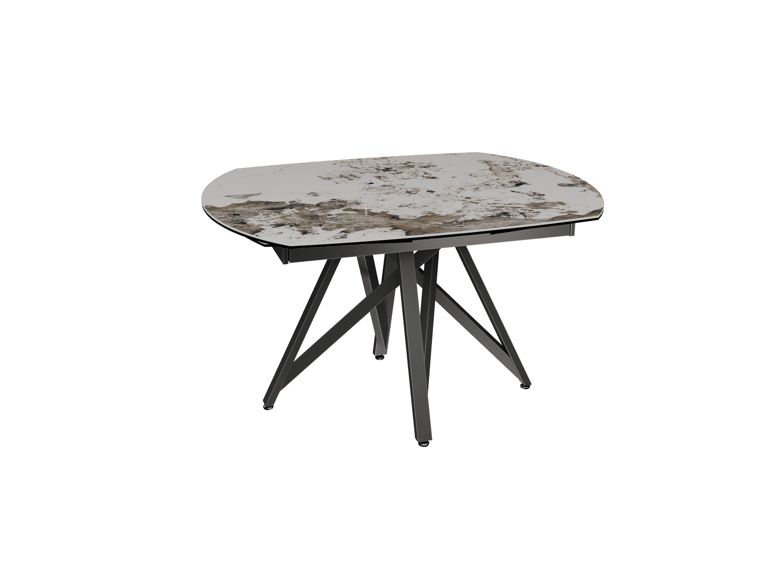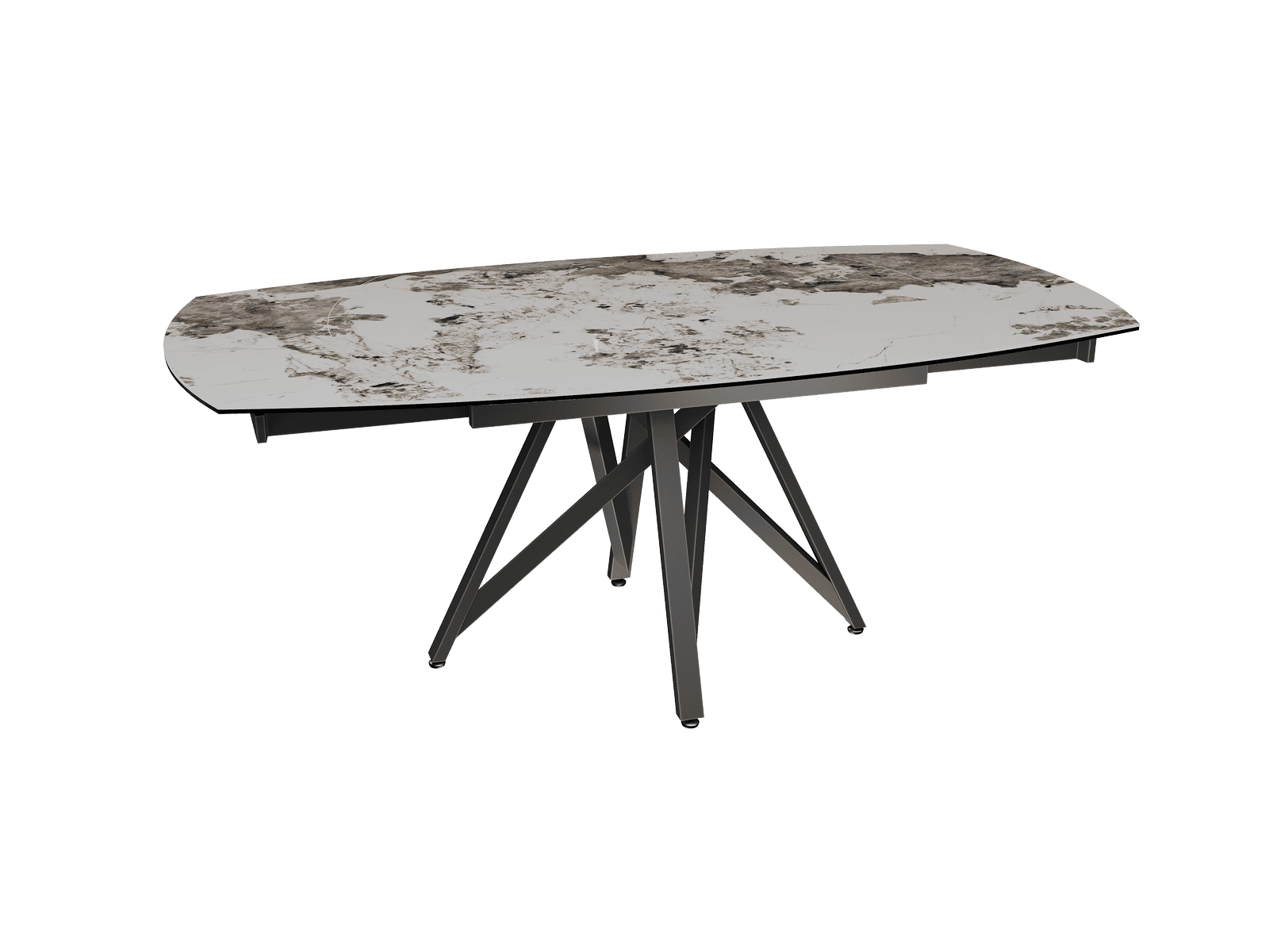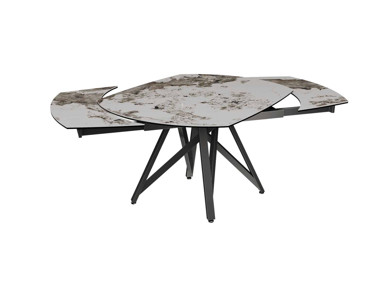 Dimensiones y detalles Peso neto : 103 Kg Color : Mármol Calcatta Dimensiones : 130 x 100 x 76 cm Dimensiones abiertas : 190 x 100 x 76 cm Altura : 76 cm Ancho : 100 cm Largo : 130 cm Mecanismo sincronizado Número de comensales : 6-8 personas Base : Acero lacado negro mate Superficie : Cerámica de 6 mm pegada sobre vidrio de 6 mm