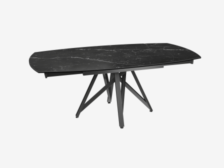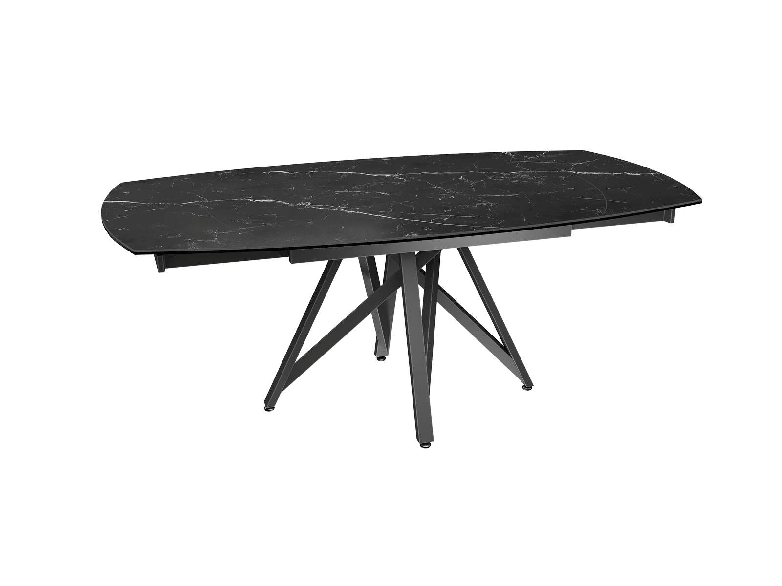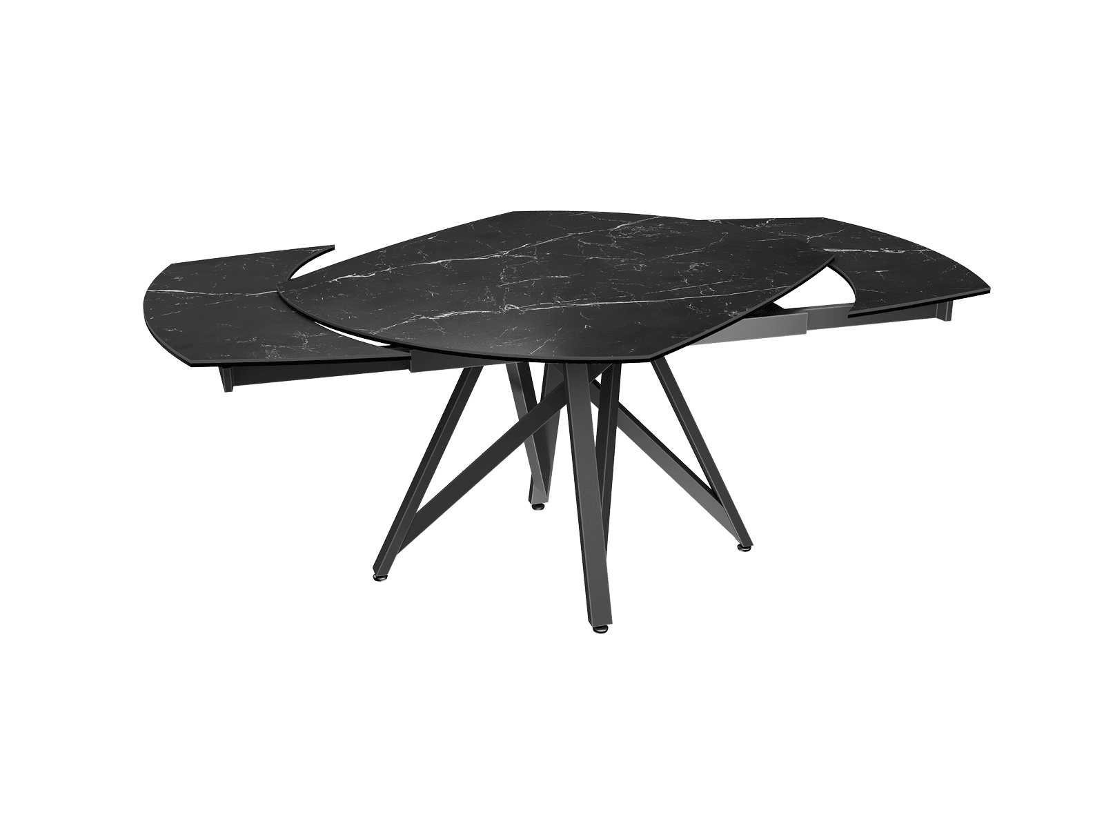 Dimensiones y detalles Peso neto : 103 Kg Color : Mármol Marquina Dimensiones : 130 x 100 x 76 cm Dimensiones abiertas : 190 x 100 x 76 cm Altura : 76 cm Ancho : 100 cm Largo : 130 cm Mecanismo sincronizado Número de comensales : 6-8 personas Base : Acero lacado negro mate Superficie : Cerámica de 6 mm pegada sobre vidrio de 6 mm