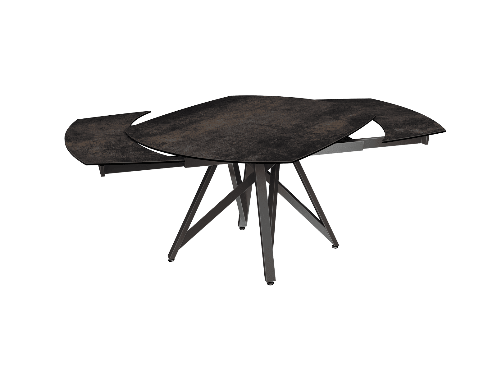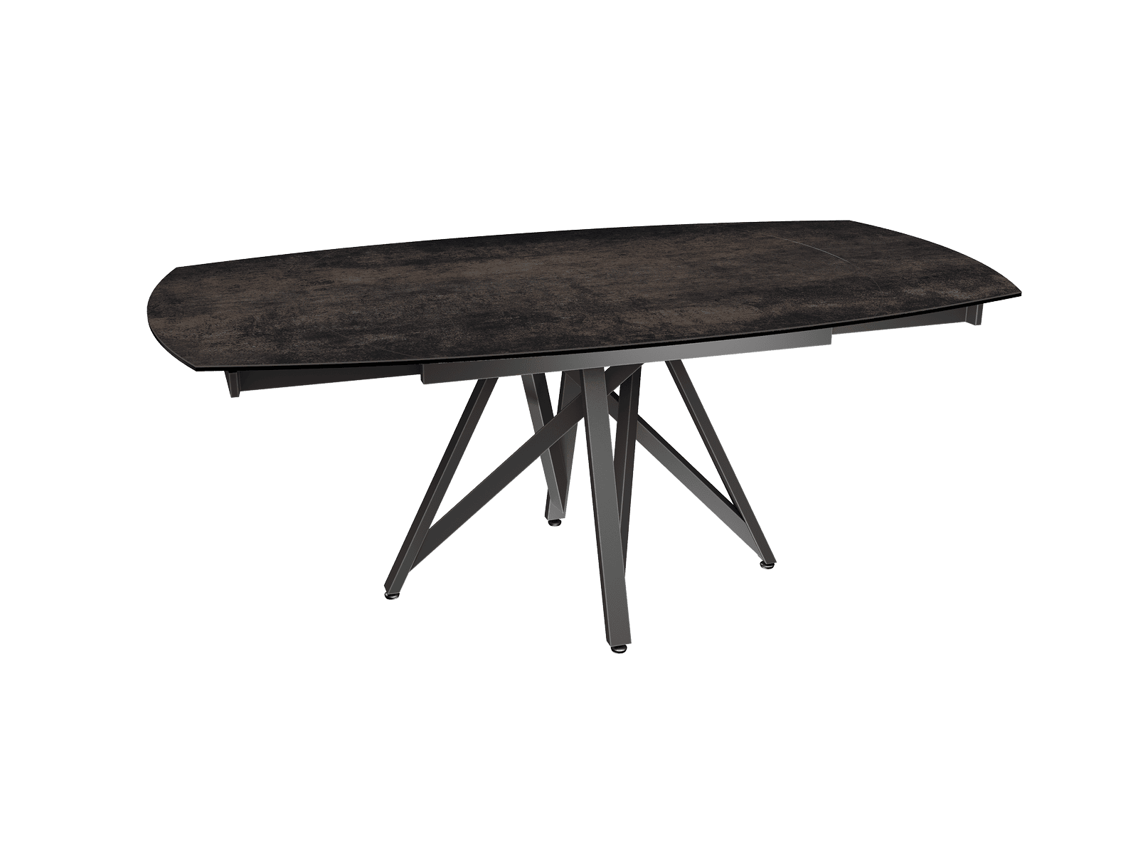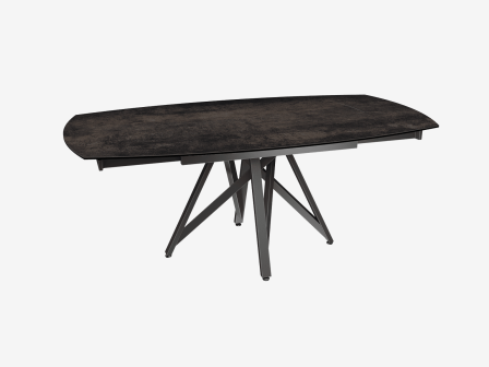 Dimensiones y detalles Peso neto : 103,7 Kg Color : Acero Dimensiones : 130 x 100 x 76 cm Dimensiones abiertas : 190 x 100 x 76 cm Altura : 76 cm Ancho : 100 cm Largo : 130 cm Mecanismo sincronizado Número de comensales : 6-8 personas Base : Acero lacado negro mate Superficie : Cerámica de 3 mm pegada sobre vidrio de 8 mm