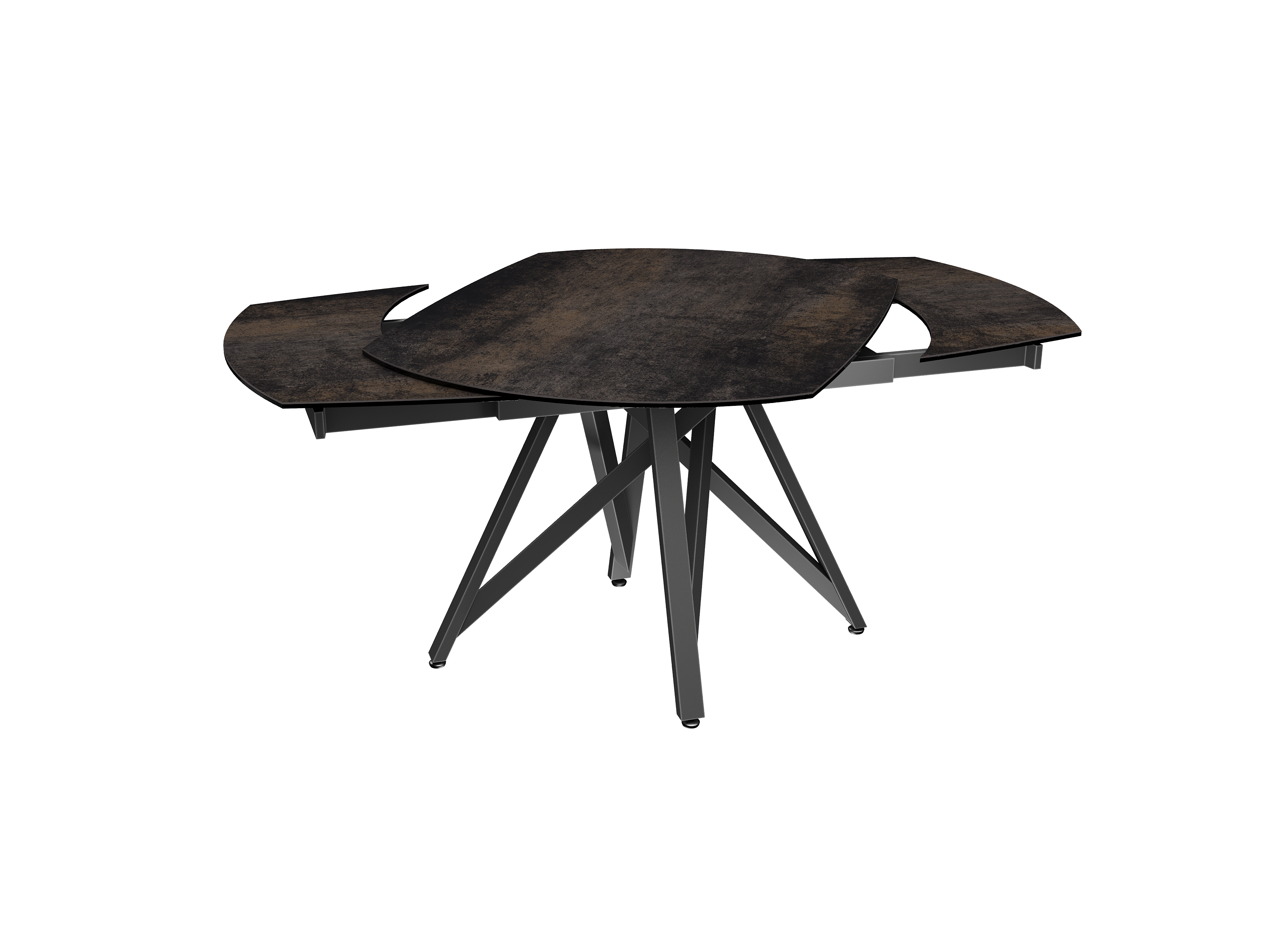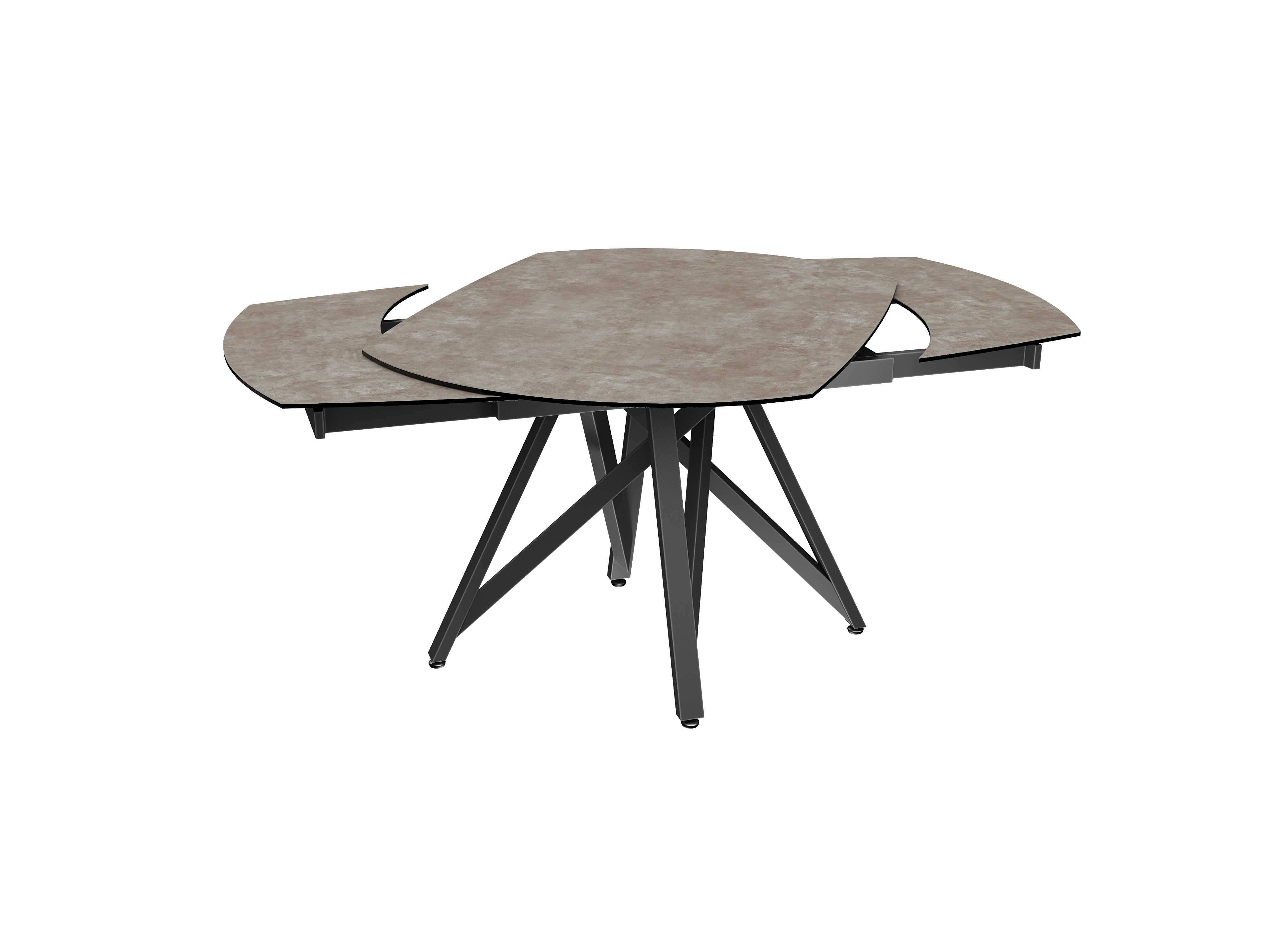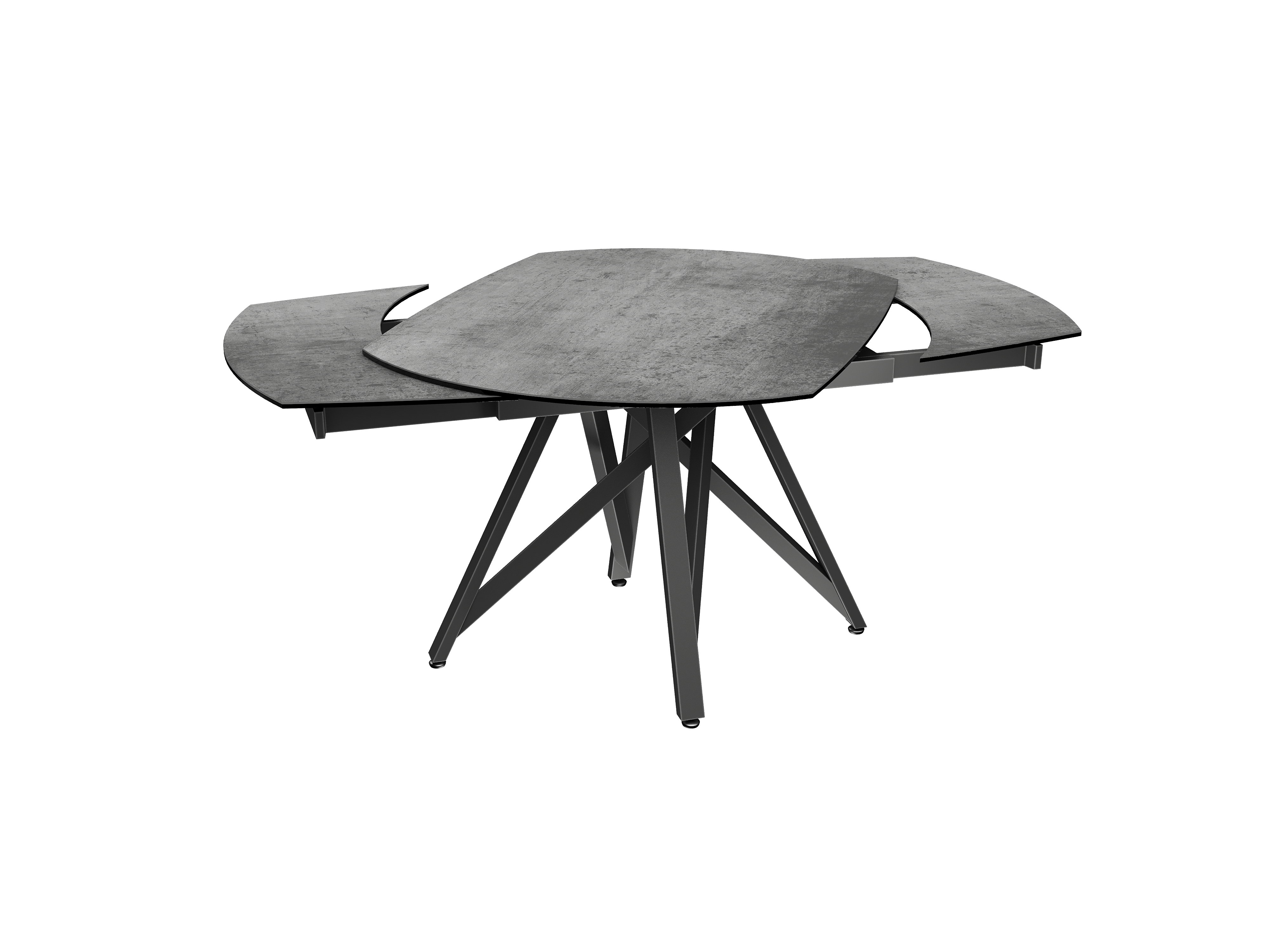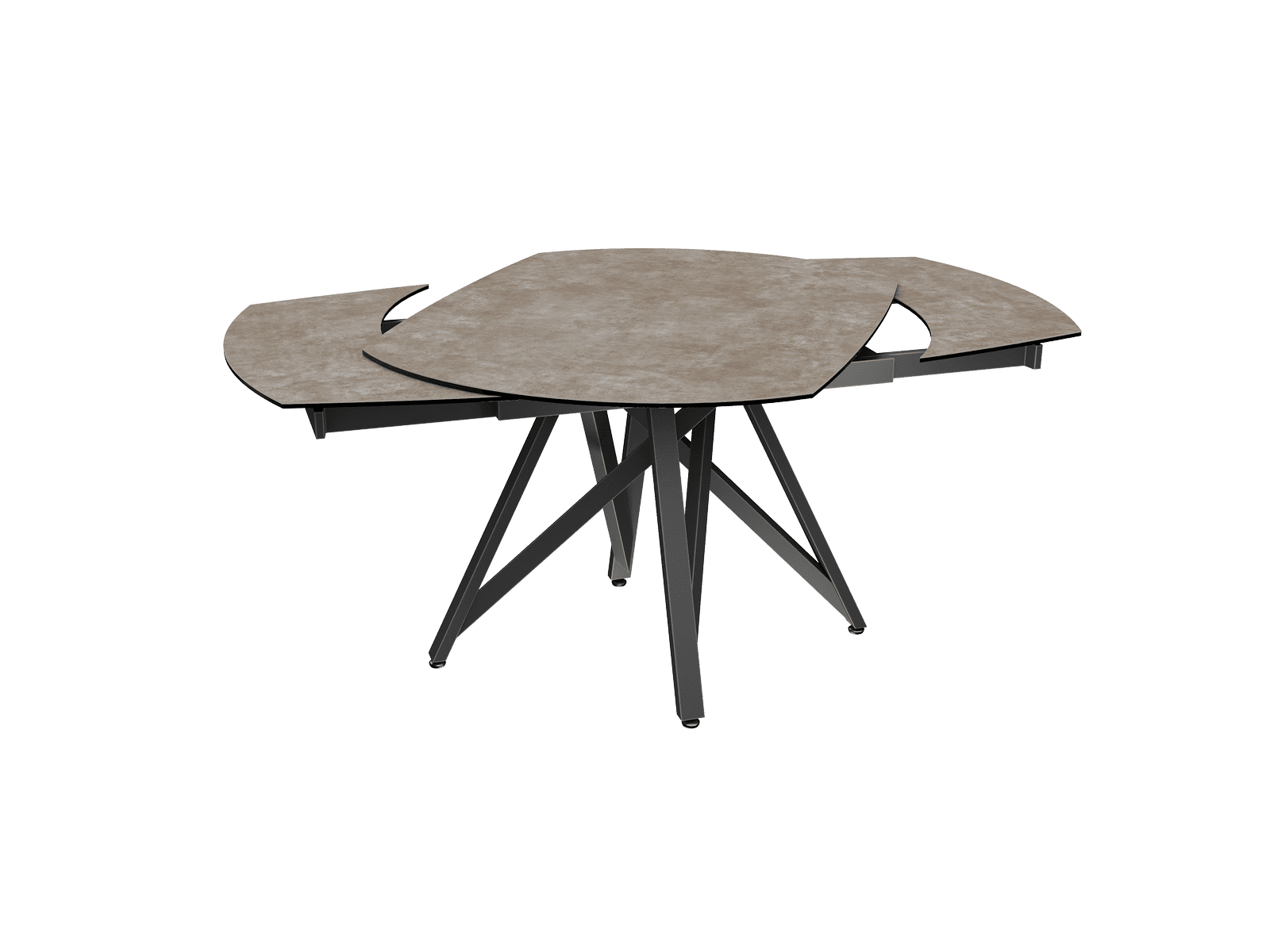 Dimensiones y detalles Peso neto : 90,5 Kg Color : Arcilla Dimensiones : 120 x 90 x 76 cm Dimensiones abiertas : 180 x 90 x 76 cm Altura : 76 cm Ancho : 90 cm Largo : 120 cm Mecanismo sincronizado Número de comensales : 6-8 personas Base : Acero lacado negro mate Superficie : Cerámica de 3 mm pegada sobre vidrio de 8 mm