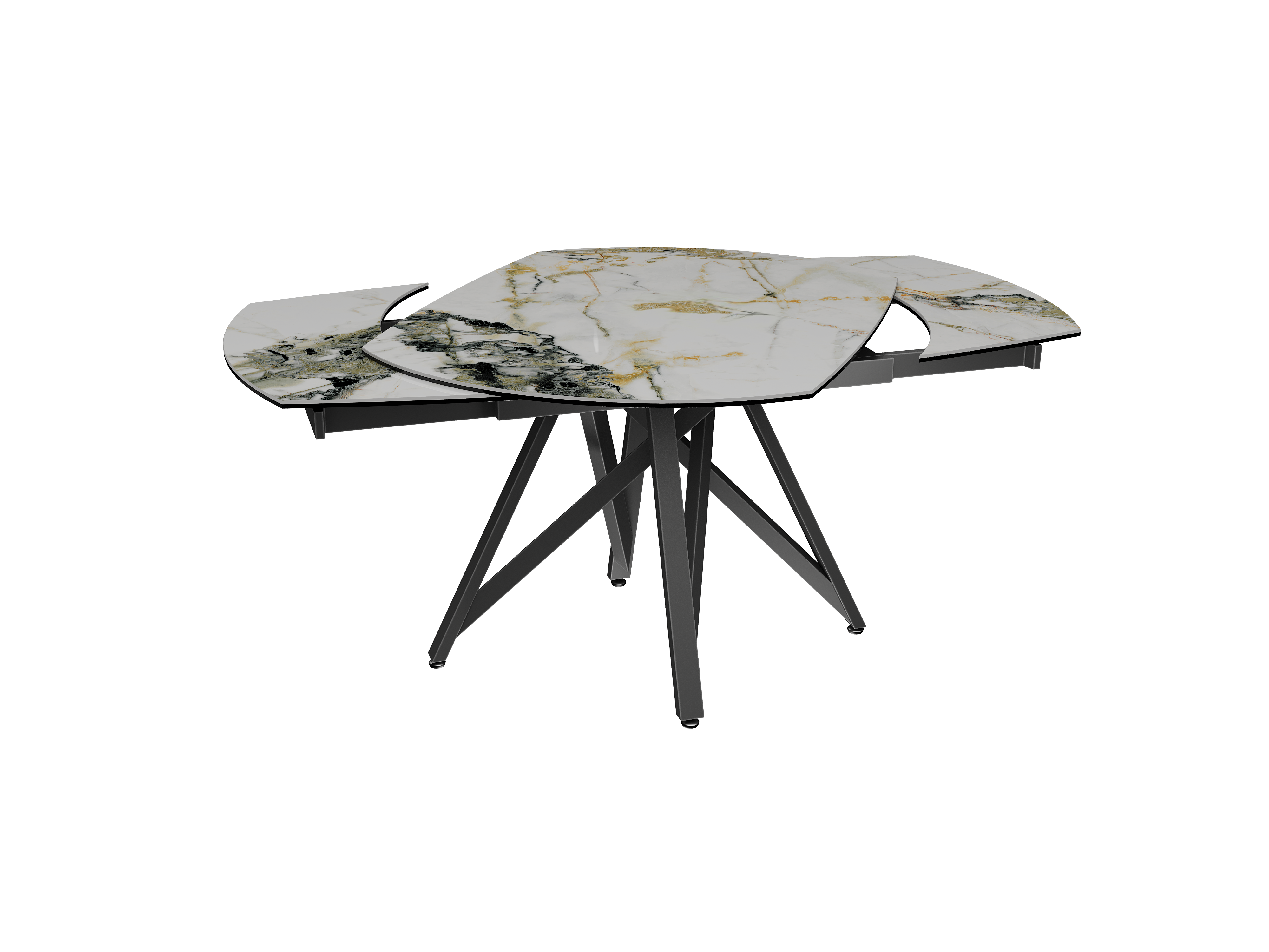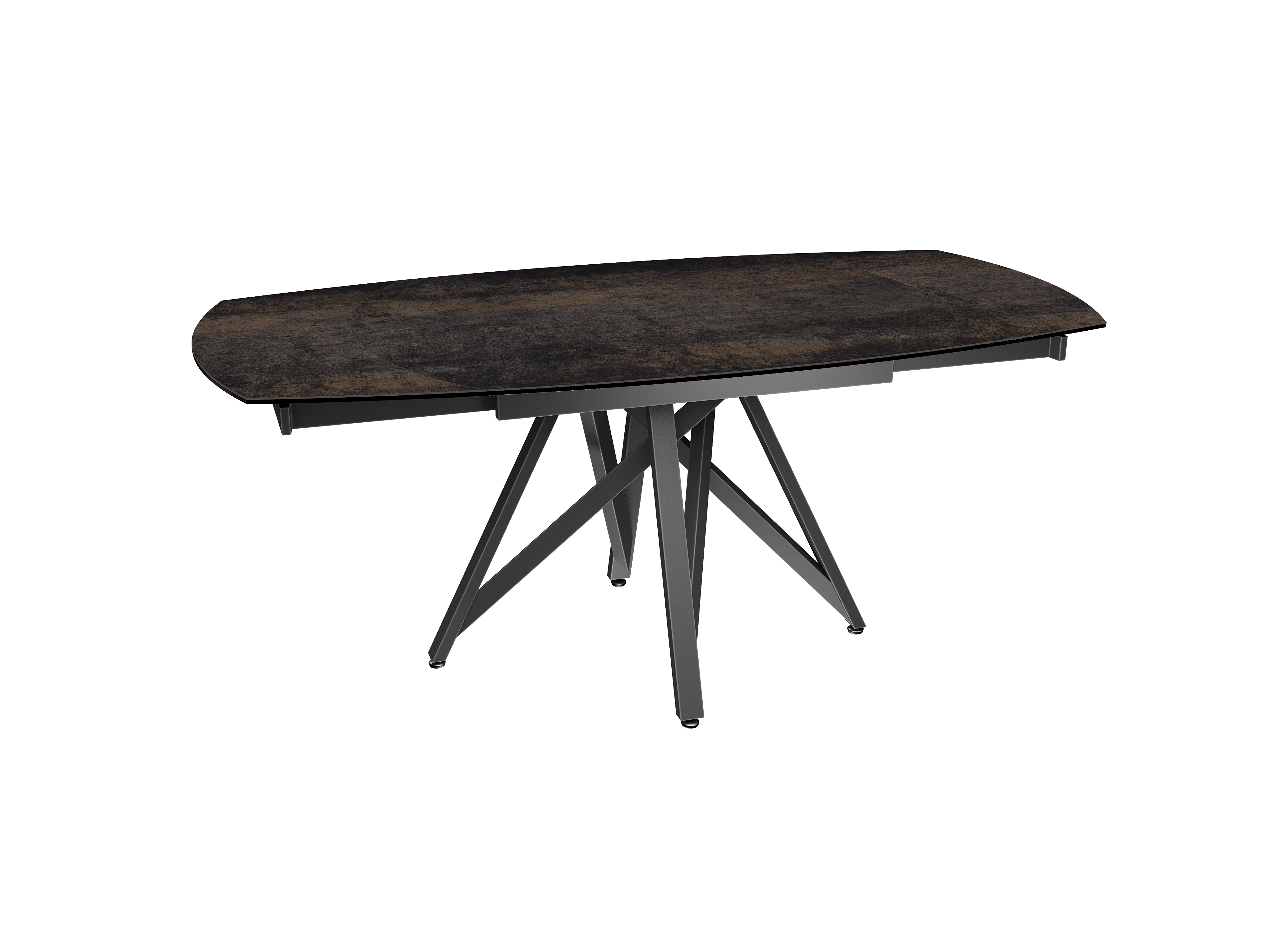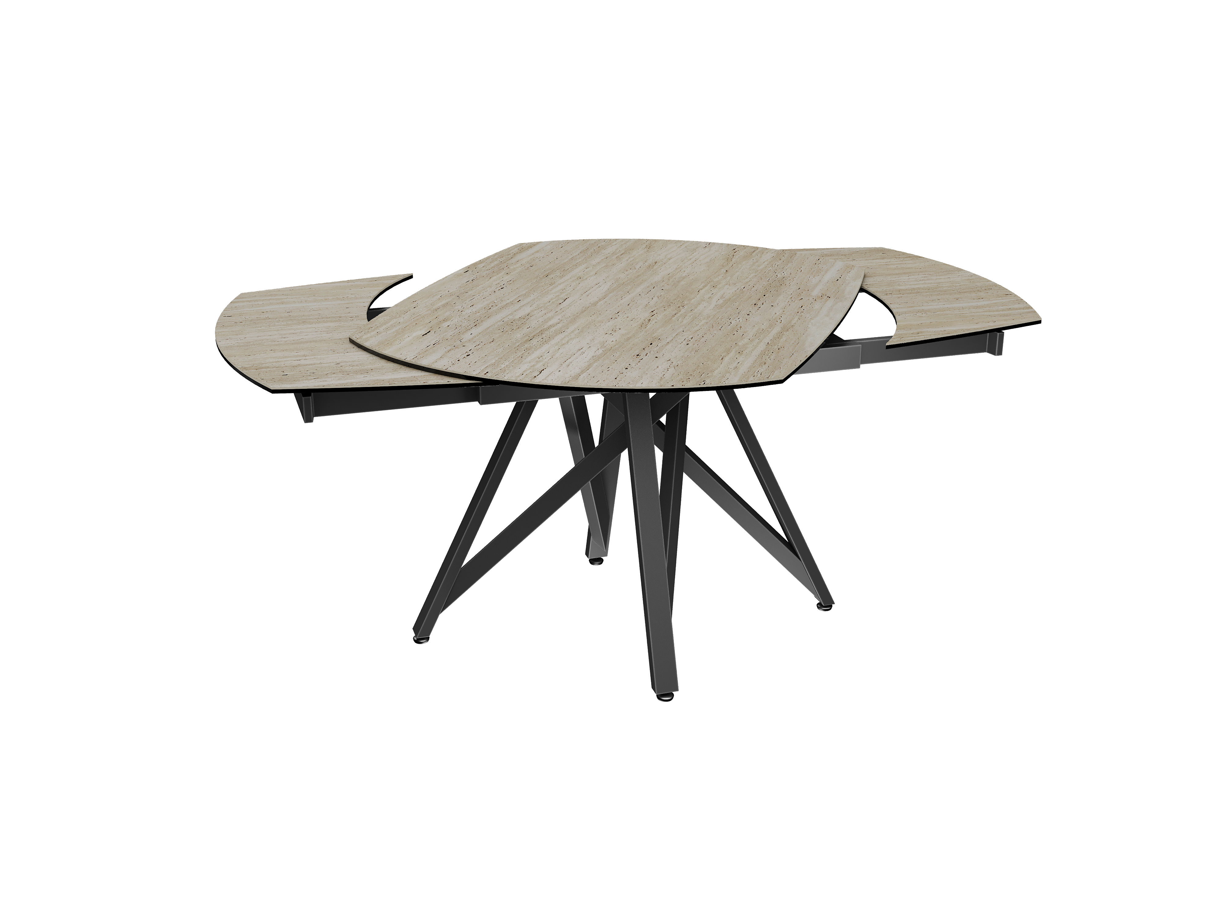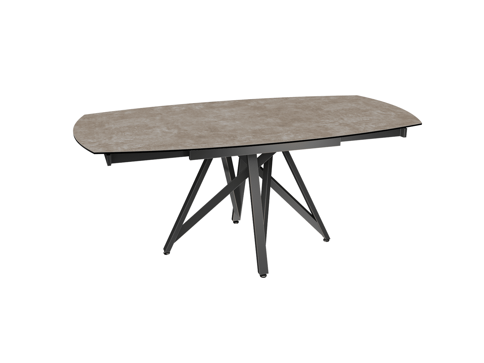 Dimensiones y detalles Peso neto : 90,5 Kg Color : Arcilla Dimensiones : 120 x 90 x 76 cm Dimensiones abiertas : 180 x 90 x 76 cm Altura : 76 cm Ancho : 90 cm Largo : 120 cm Mecanismo sincronizado Número de comensales : 6-8 personas Base : Acero lacado negro mate Superficie : Cerámica de 3 mm pegada sobre vidrio de 8 mm
