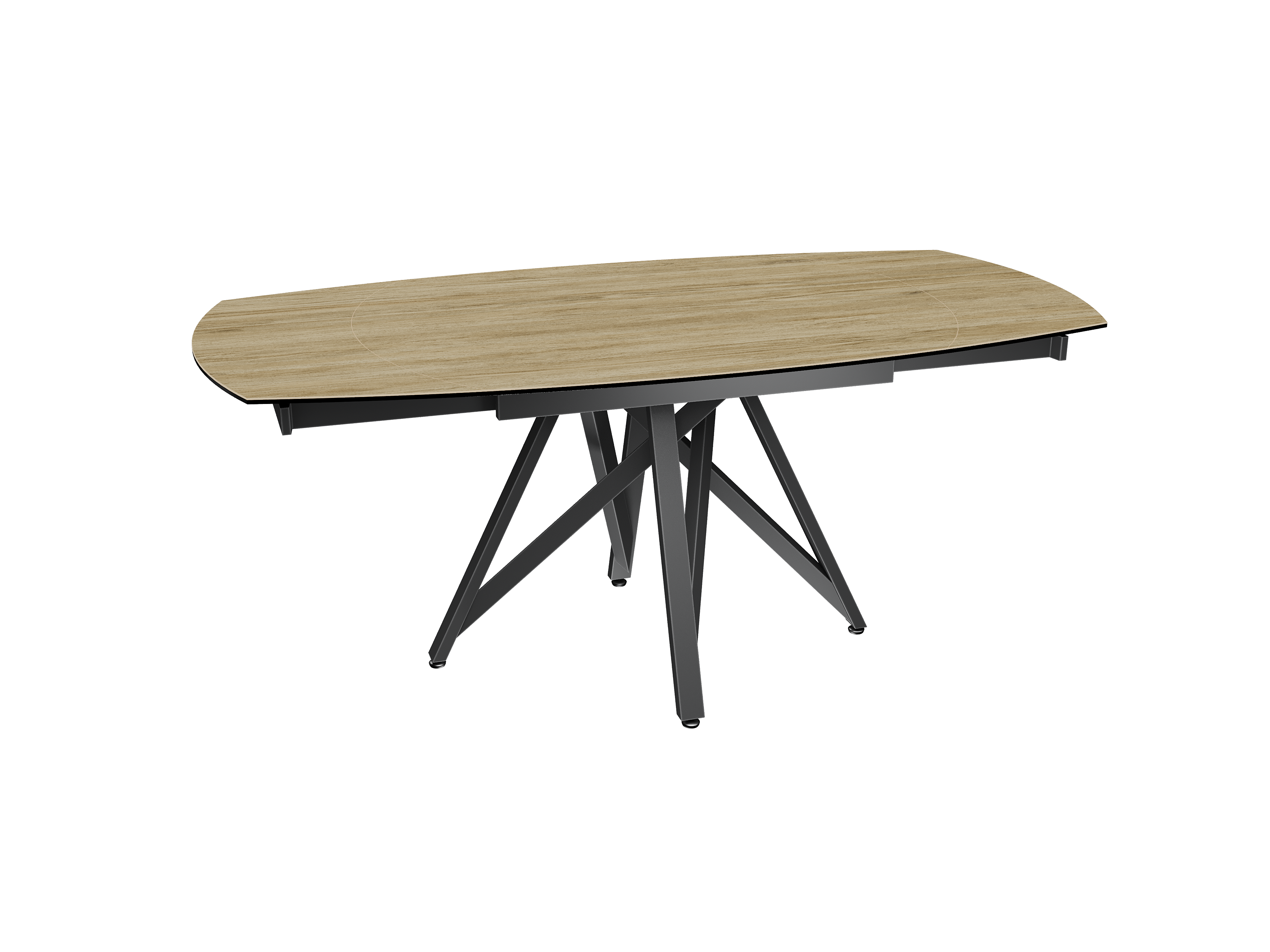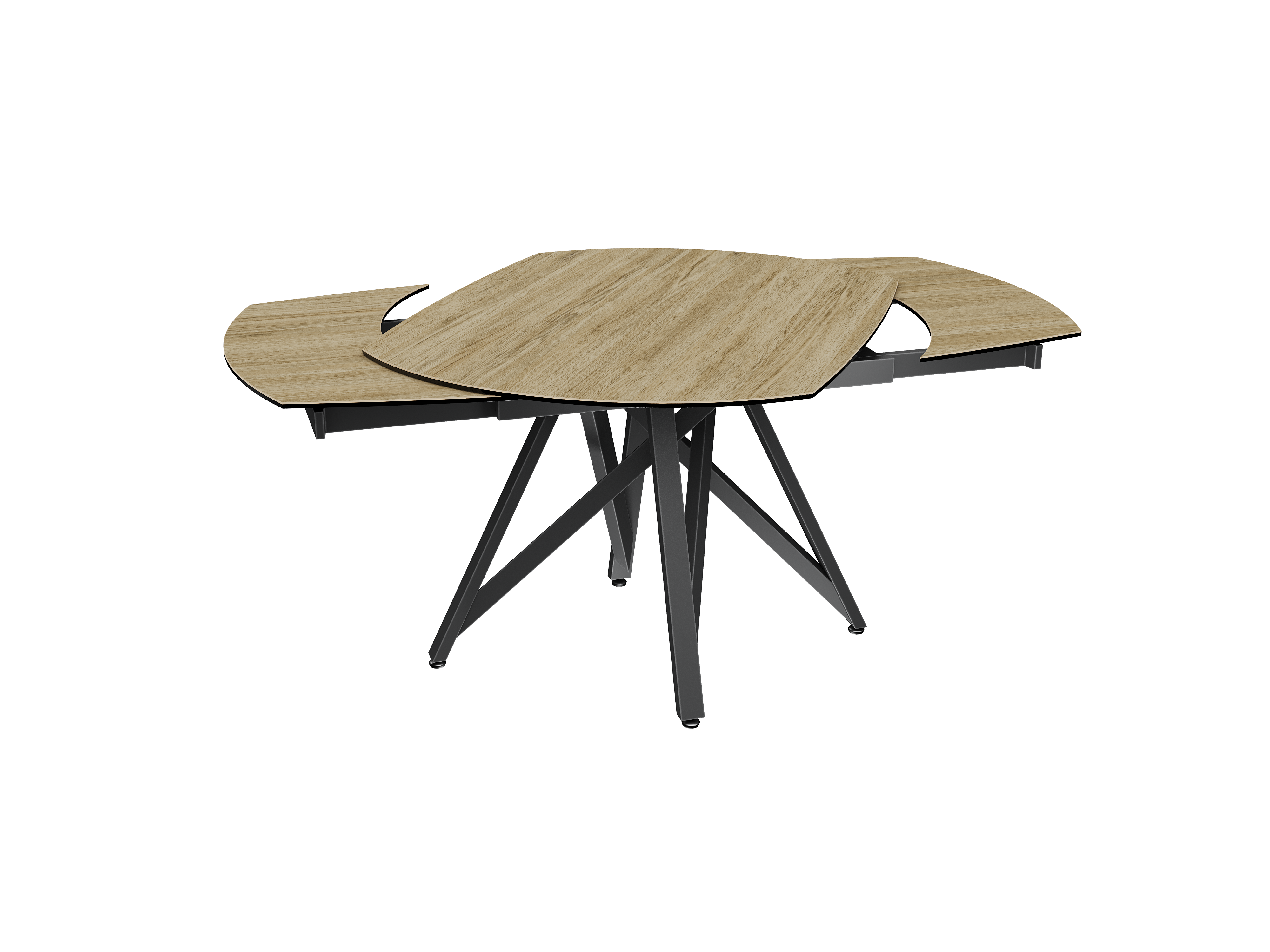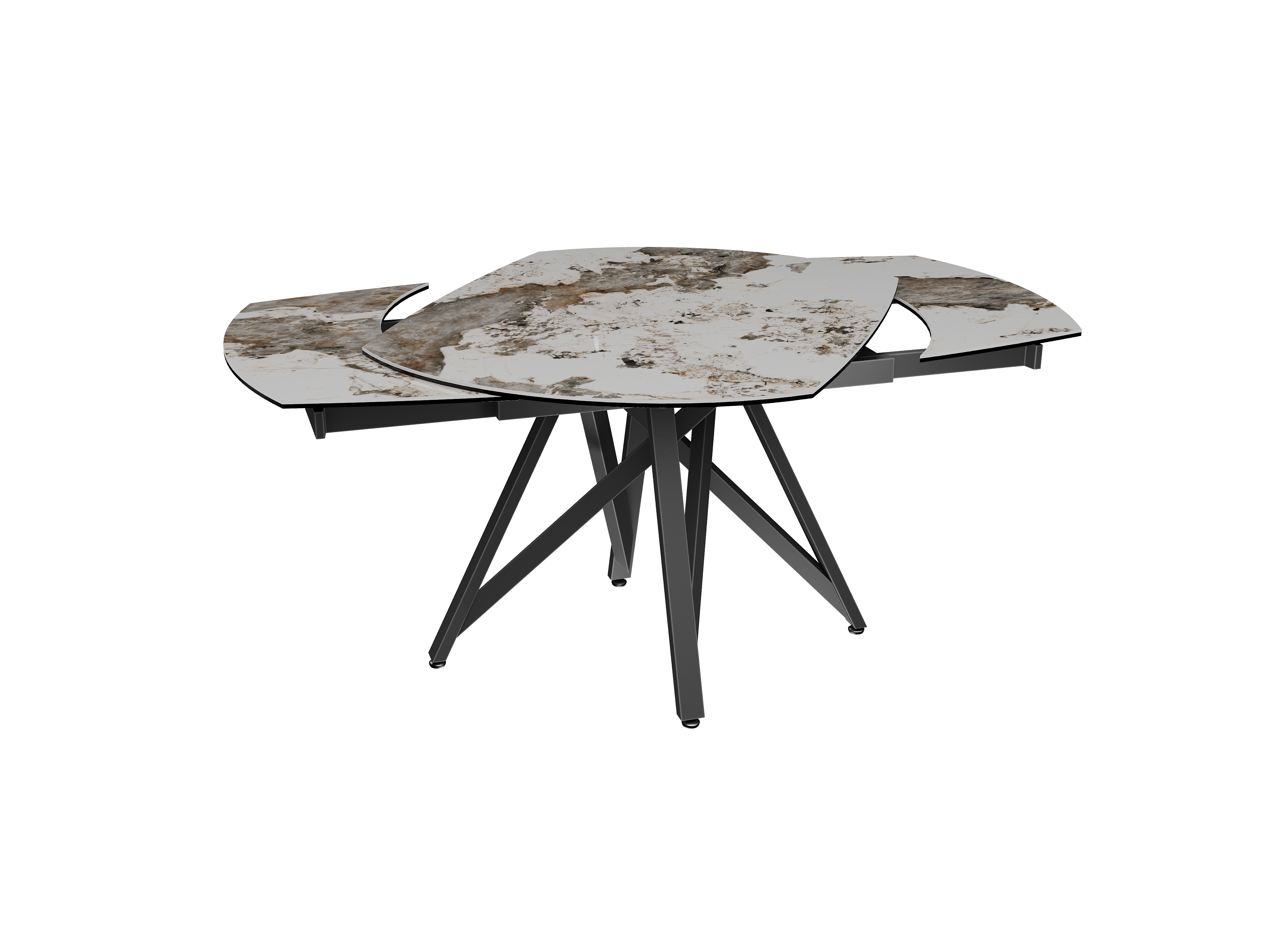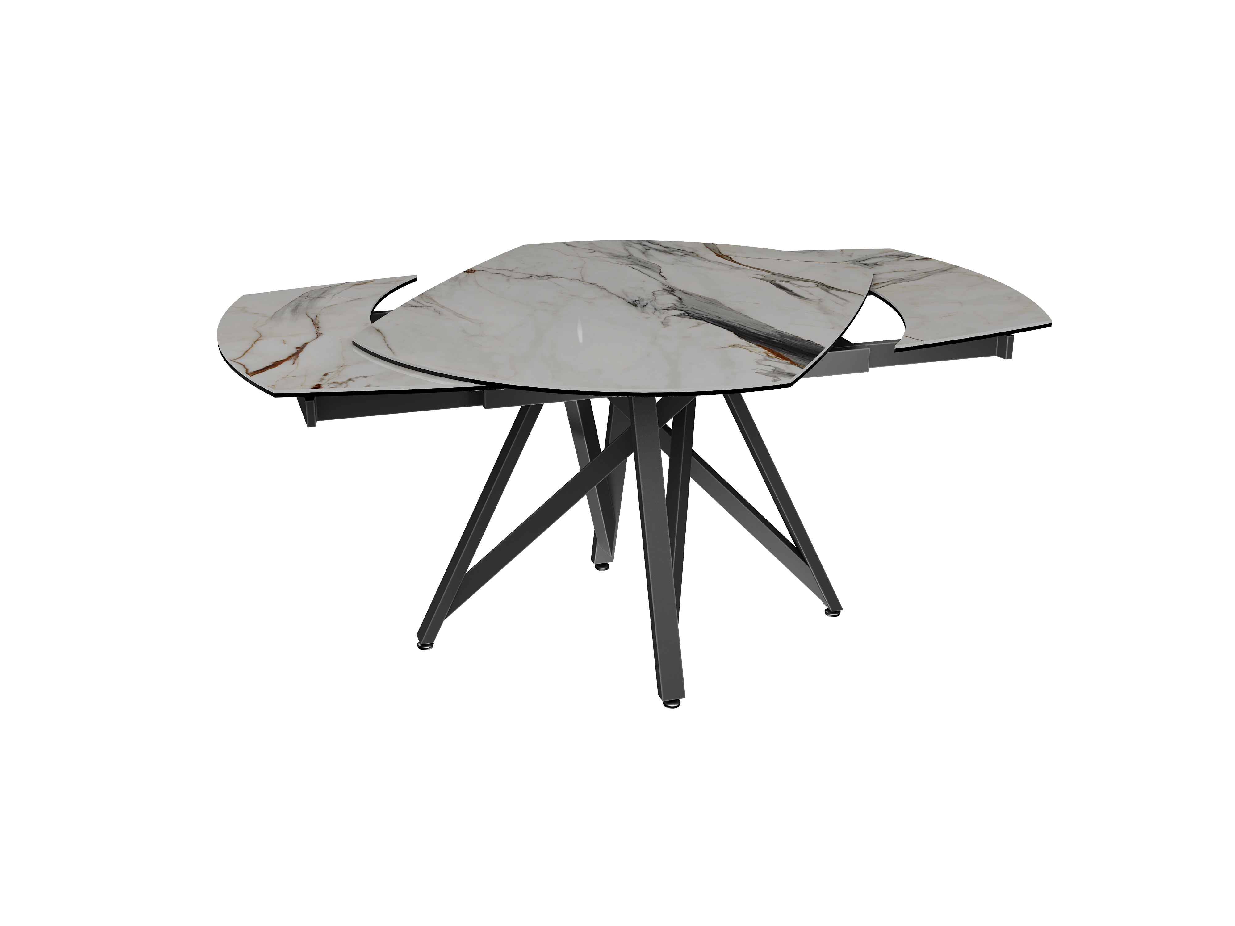 Dimensiones y detalles Peso neto : 90,5 Kg Color : Arcilla Dimensiones : 120 x 90 x 76 cm Dimensiones abiertas : 180 x 90 x 76 cm Altura : 76 cm Ancho : 90 cm Largo : 120 cm Mecanismo sincronizado Número de comensales : 6-8 personas Base : Acero lacado negro mate Superficie : Cerámica de 3 mm pegada sobre vidrio de 8 mm