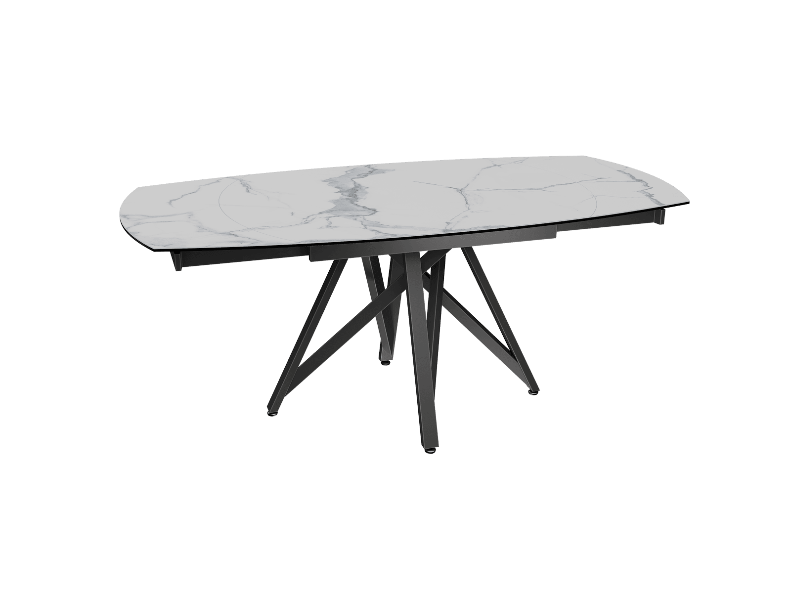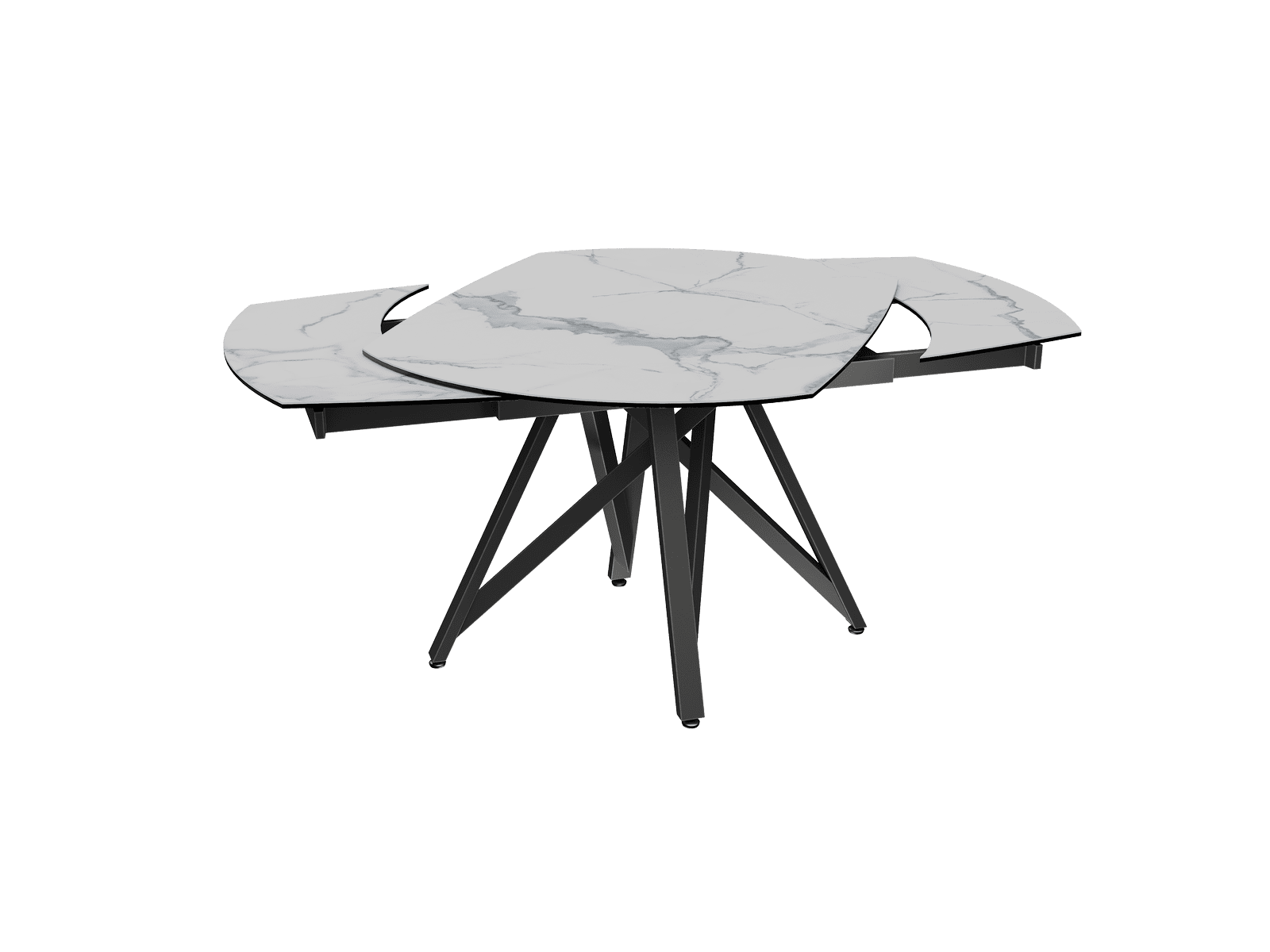 Dimensiones y detalles Peso neto : 90,5 Kg Color : Marmól mate Dimensiones : 120 x 90 x 76 cm Dimensiones abiertas : 180 x 90 x 76 cm Altura : 76 cm Ancho : 90 cm Largo : 120 cm Mecanismo sincronizado Número de comensales : 6-8 personas Base : Acero lacado negro mate Superficie : Cerámica de 3 mm pegada sobre vidrio de 8 mm