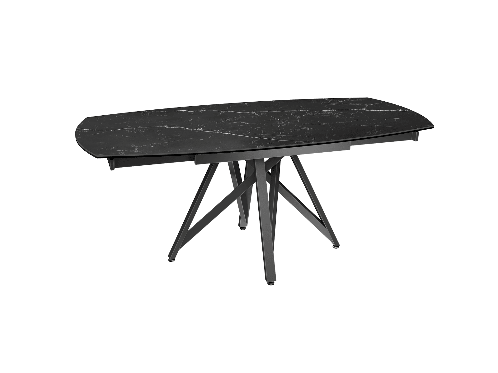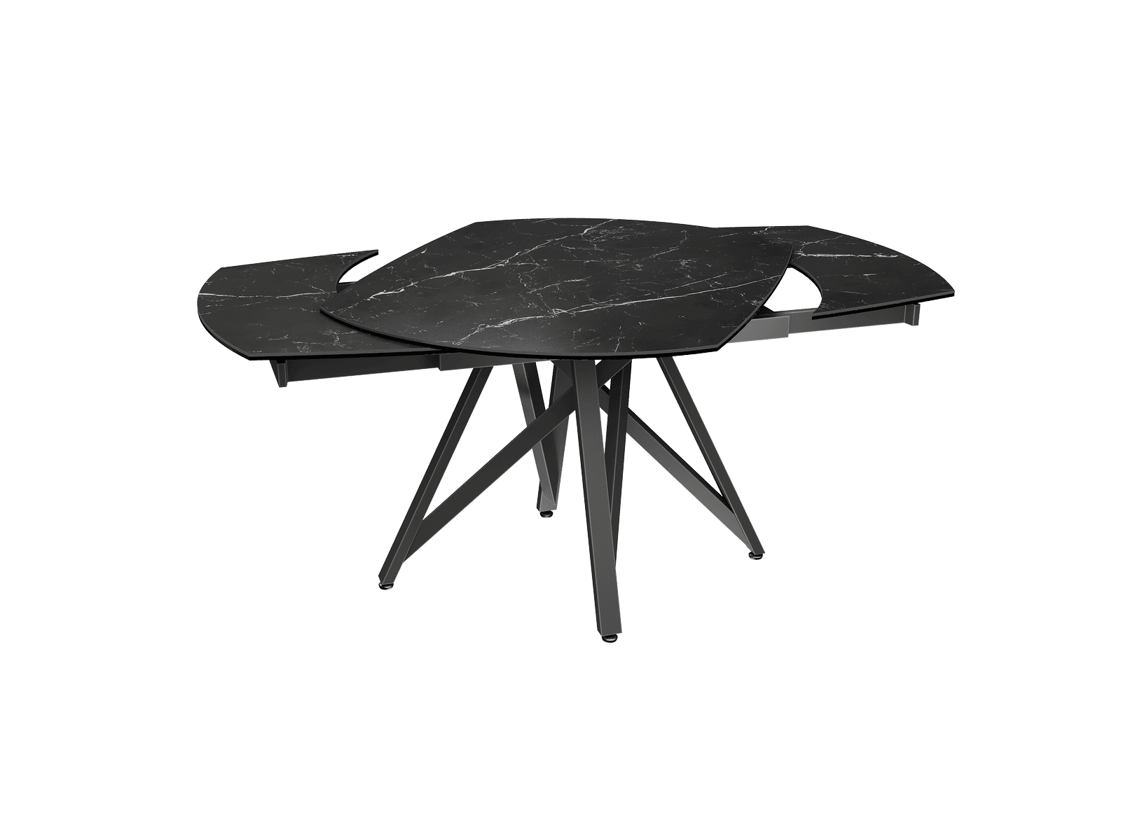 Dimensiones y detalles Peso neto : 92,5 Kg Color : Mármol Marquina Dimensiones : 120 x 90 x 76 cm Dimensiones abiertas : 180 x 90 x 76 cm Altura : 76 cm Ancho : 90 cm Largo : 120 cm Mecanismo sincronizado Número de comensales : 6-8 personas Base : Acero lacado negro mate Superficie : Cerámica de 6 mm pegada sobre vidrio de 6 mm