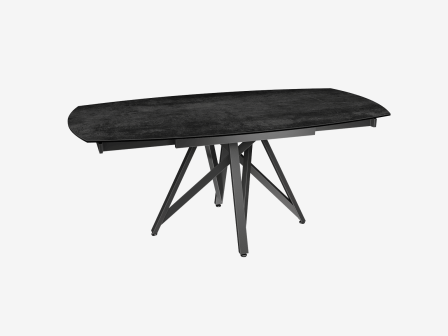 Dimensiones y detalles Peso neto : 90,5 Kg Color : Titanio Dimensiones : 120 x 90 x 76 cm Dimensiones abiertas : 180 x 90 x 76 cm Altura : 76 cm Ancho : 90 cm Largo : 120 cm Mecanismo sincronizado Número de comensales : 6-8 personas Base : Acero lacado negro mate Superficie : Cerámica de 3 mm pegada sobre vidrio de 8 mm