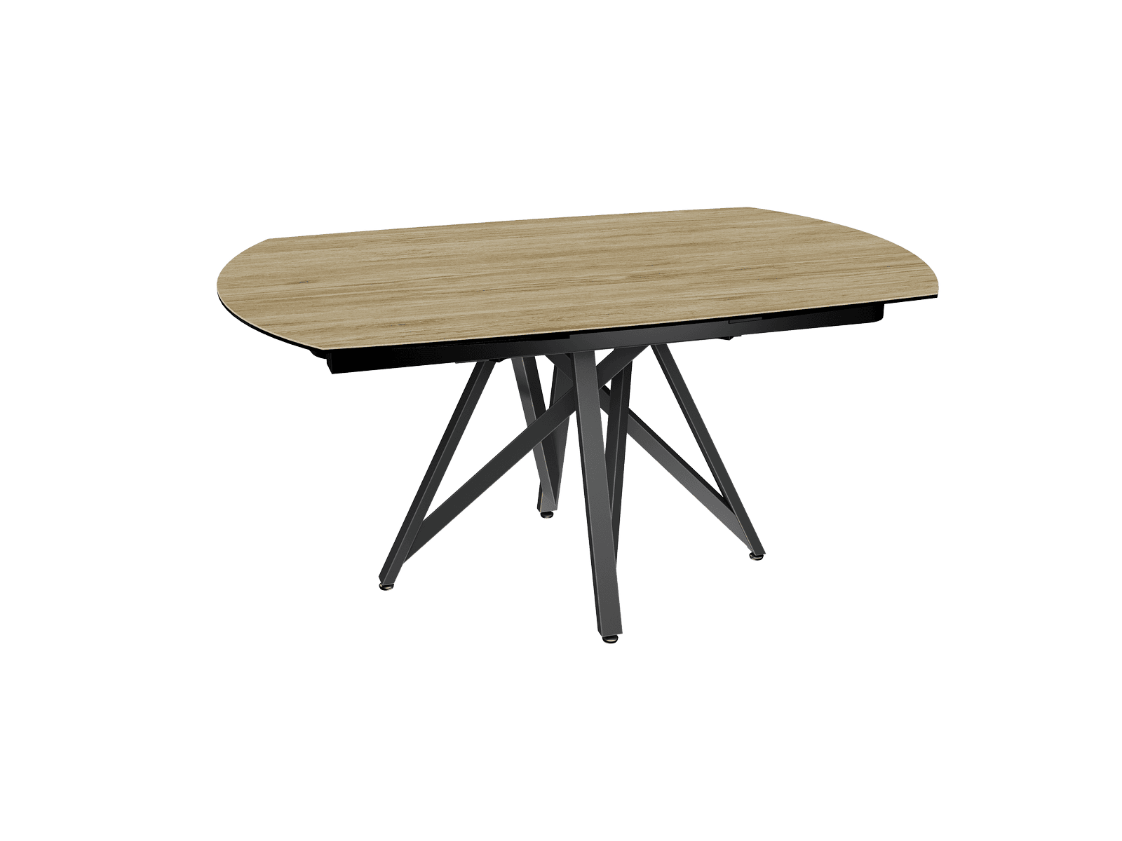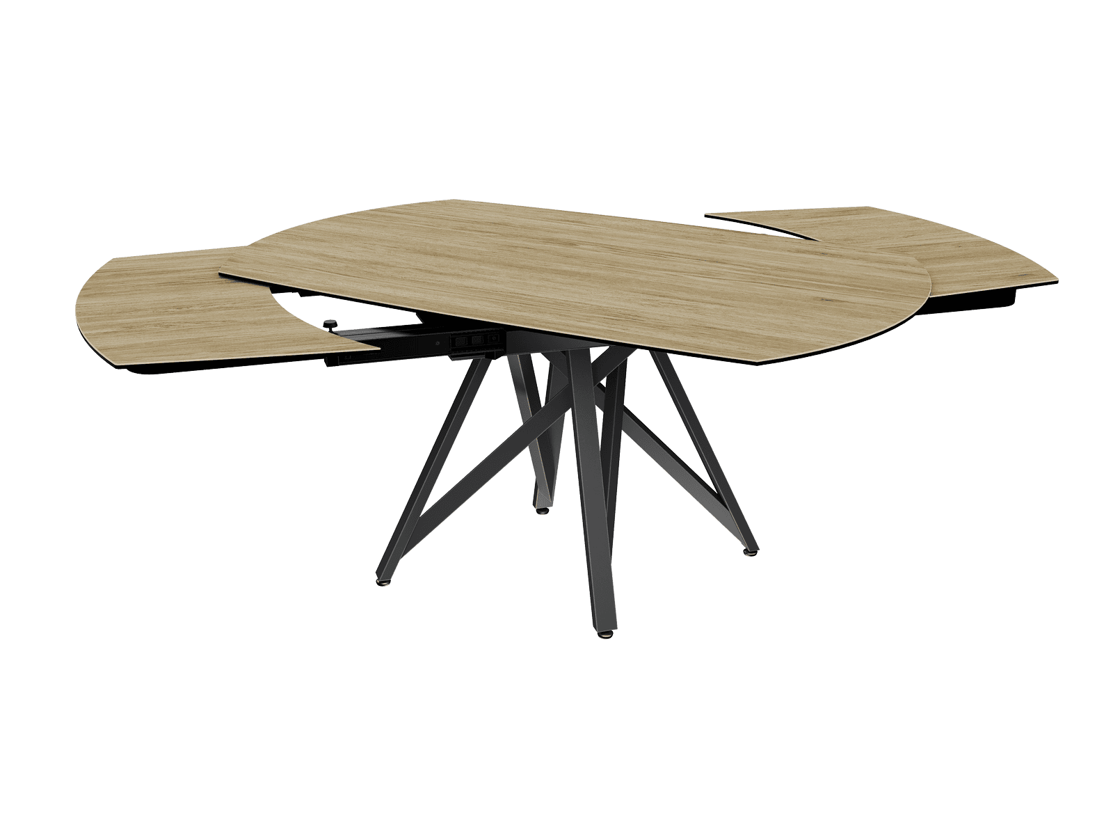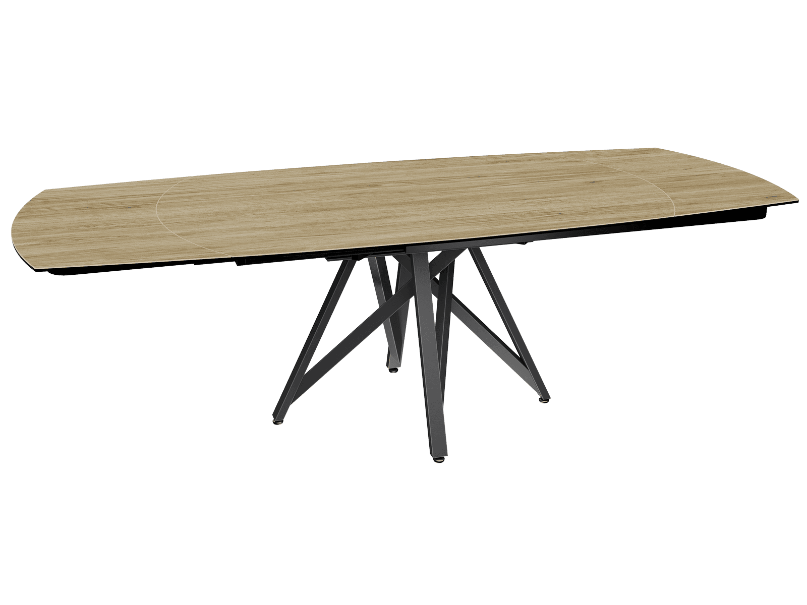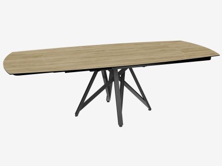 Dimensiones y detalles Peso neto : 137 Kg Color : Roble claro Dimensiones : 160 x 100 x 76 cm Dimensiones abiertas : 240 x 100 x 76 cm Altura : 76 cm Ancho : 100 cm Largo : 160 cm Mecanismo sincronizado Número de comensales : 8-10 personas Base : Acero lacado negro mate Superficie : Cerámica de 3 mm pegada sobre vidrio de 8 mm