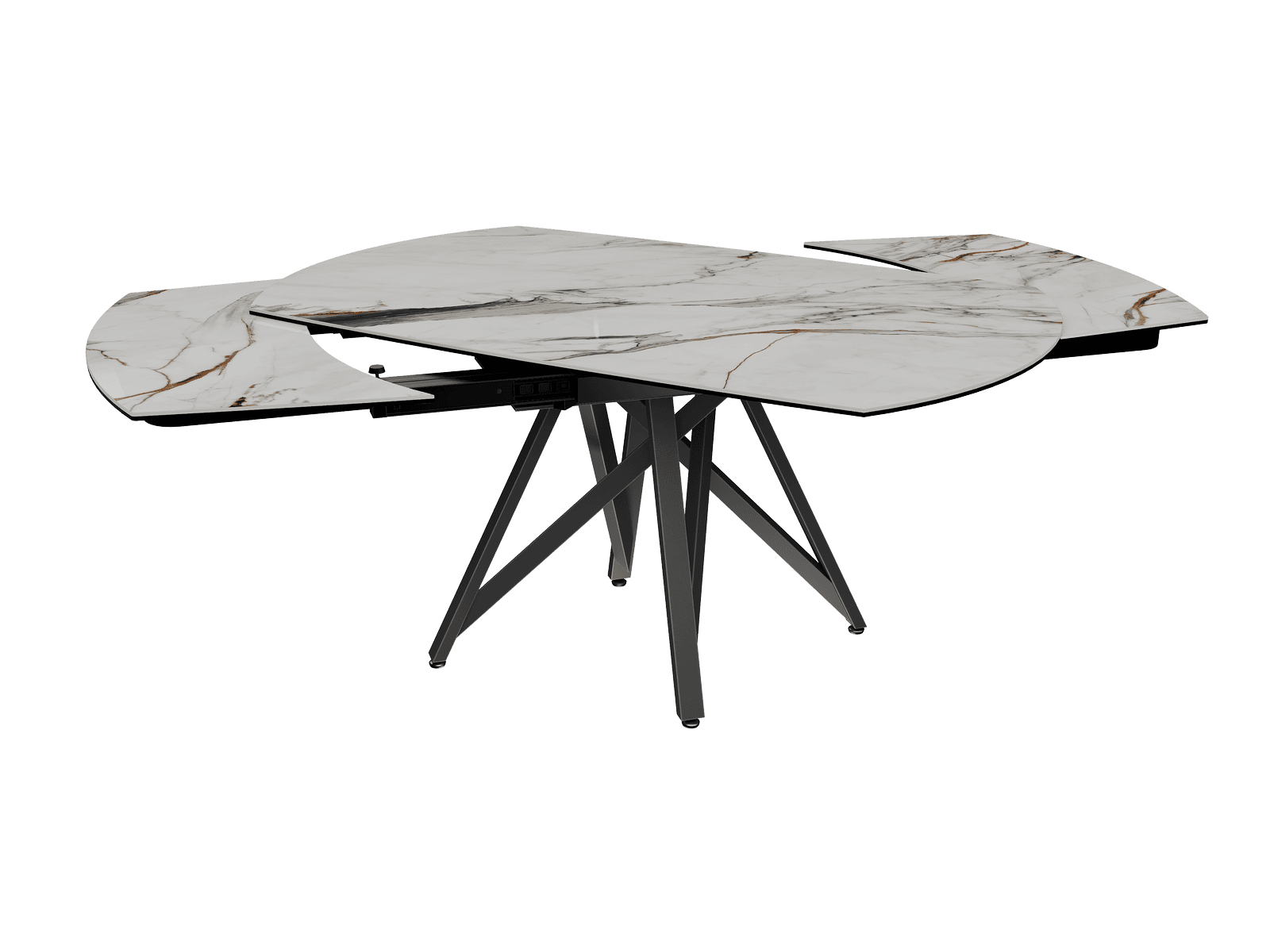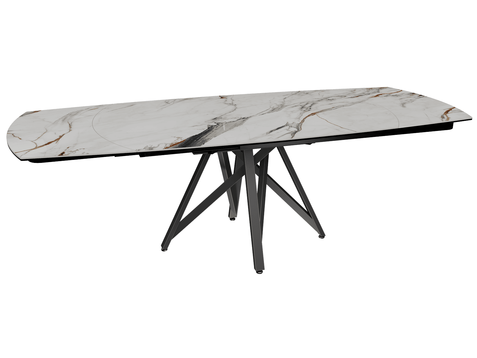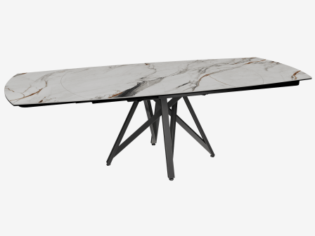 Dimensiones y detalles Peso neto : 151 Kg Color : Mármol Fiorentino Dimensiones : 160 x 100 x 76 cm Dimensiones abiertas : 240 x 100 x 76 cm Altura : 76 cm Ancho : 100 cm Largo : 160 cm Mecanismo sincronizado Número de comensales : 8-10 personas Base : Acero lacado negro mate Superficie : Cerámica de 6 mm pegada sobre vidrio de 8 mm