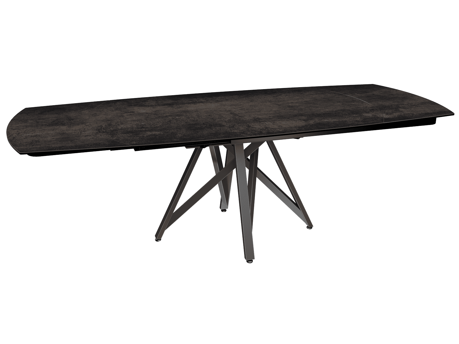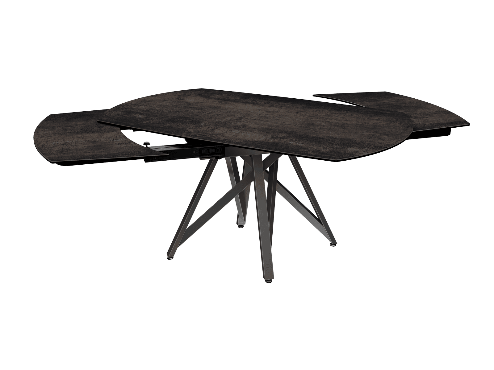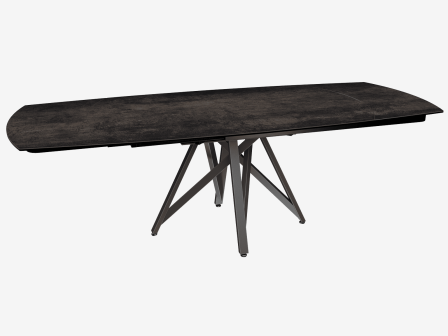 Dimensiones y detalles Peso neto : 137 Kg Color : Acero Dimensiones : 160 x 100 x 76 cm Dimensiones abiertas : 240 x 100 x 76 cm Altura : 76 cm Ancho : 100 cm Largo : 160 cm Mecanismo sincronizado Número de comensales : 8-10 personas Base : Acero lacado negro mate Superficie : Cerámica de 3 mm pegada sobre vidrio de 8 mm
