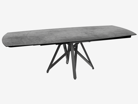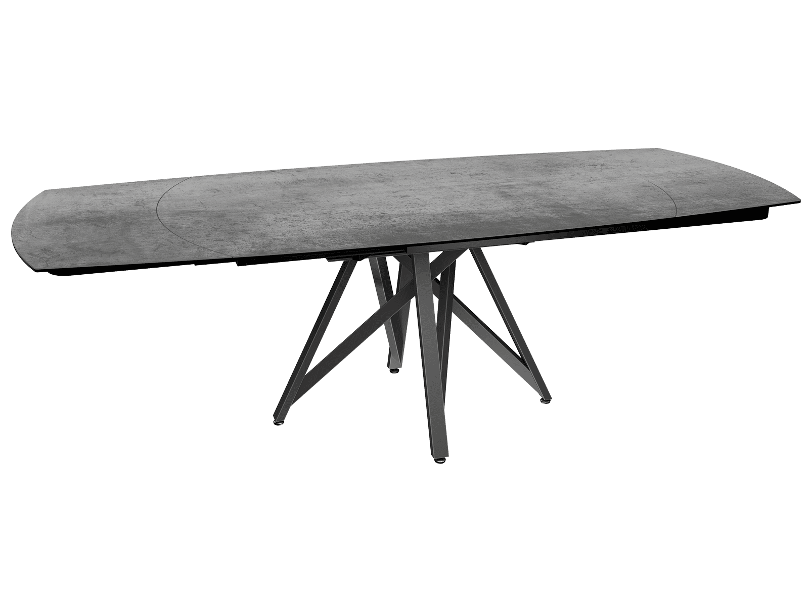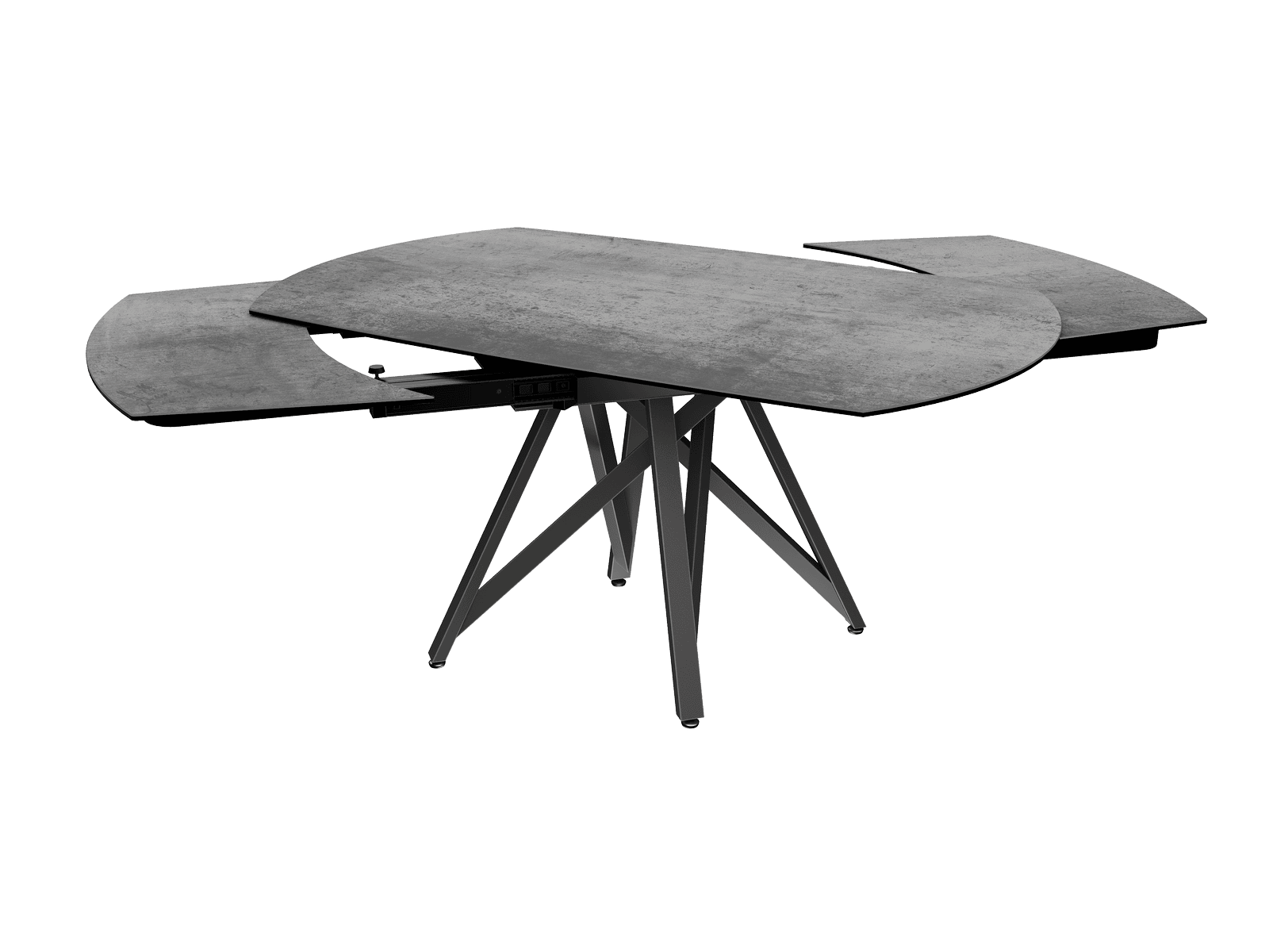 Dimensiones y detalles Peso neto : 137 Kg Color : Plata Dimensiones : 160 x 100 x 76 cm Dimensiones abiertas : 240 x 100 x 76 cm Altura : 76 cm Ancho : 100 cm Largo : 160 cm Mecanismo sincronizado Número de comensales : 8-10 personas Base : Acero lacado negro mate Superficie : Cerámica de 3 mm pegada sobre vidrio de 8 mm