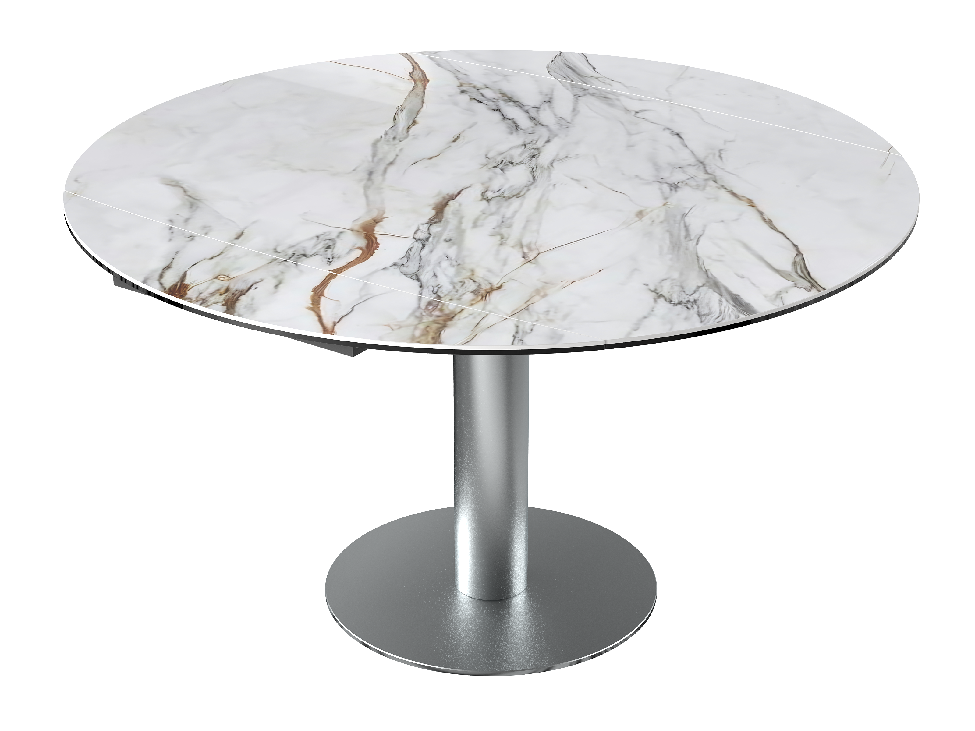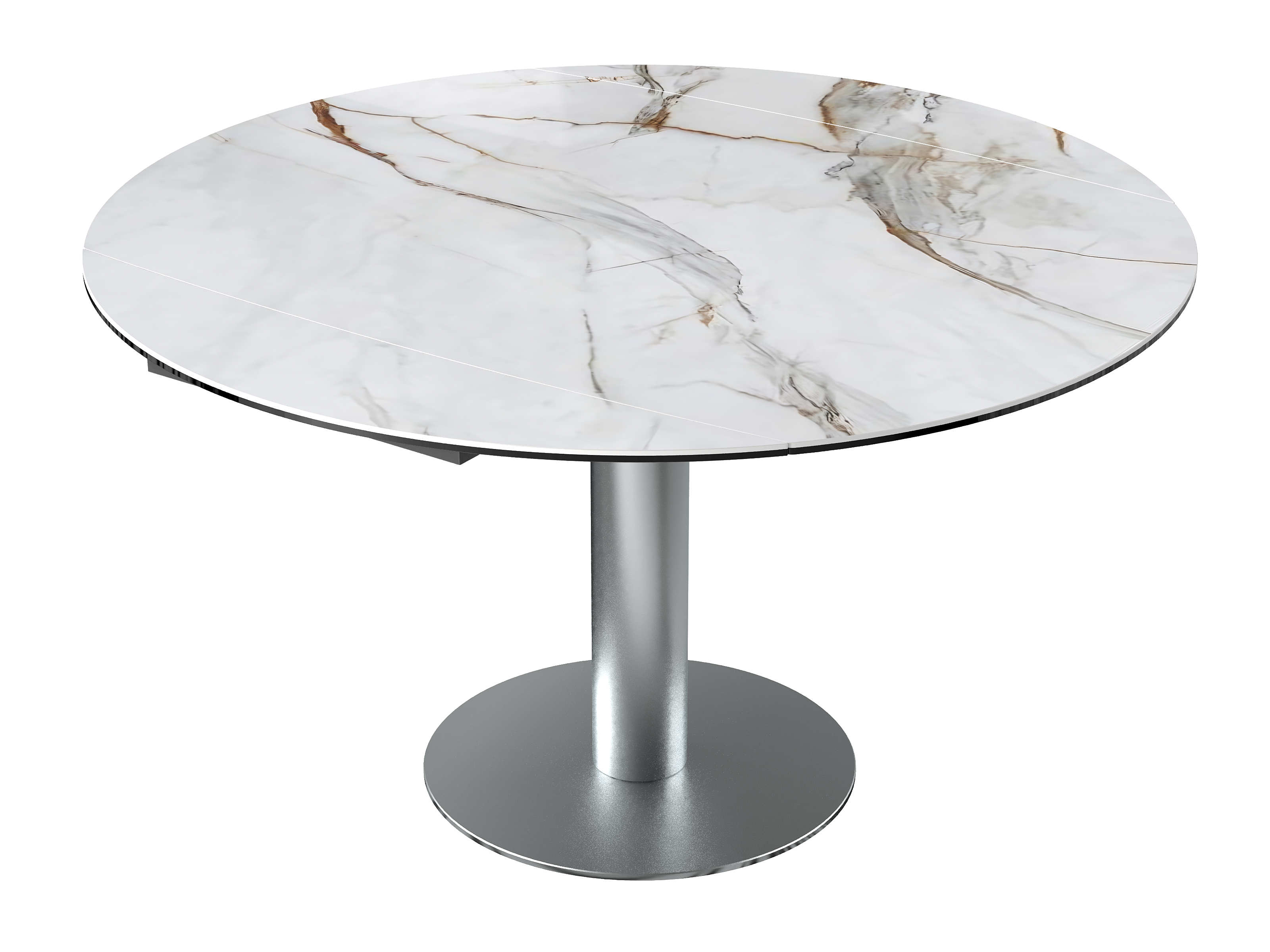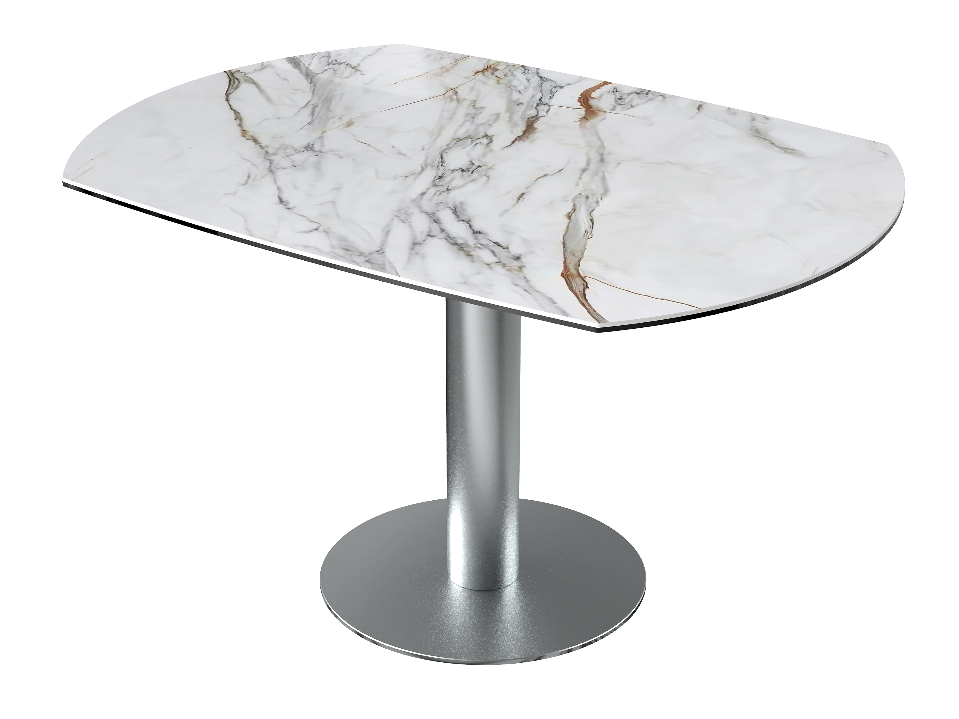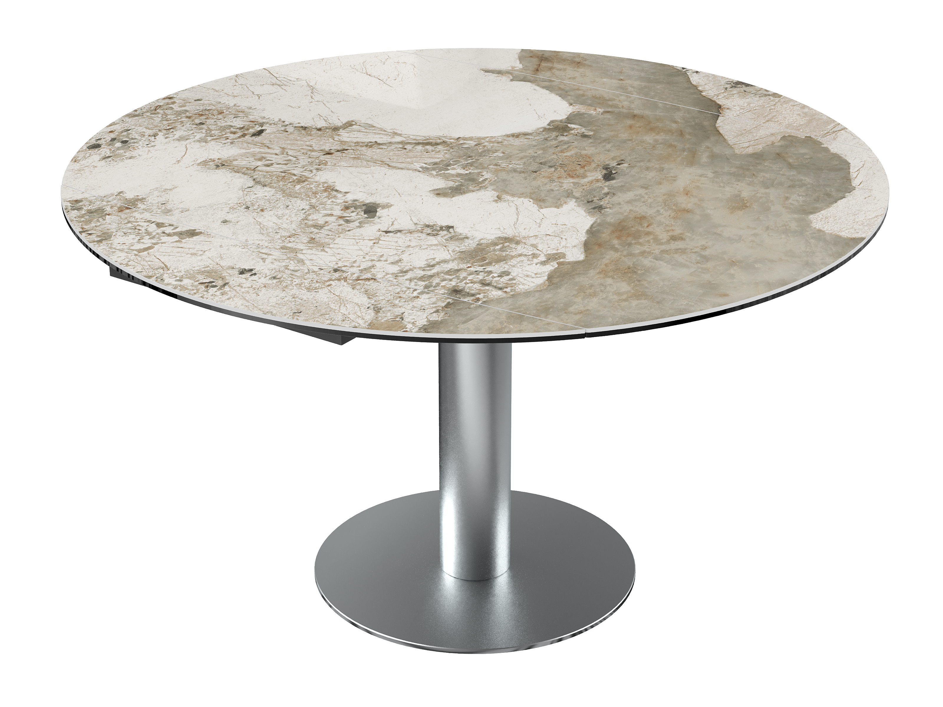 Dimensiones y detalles Peso neto : 84,9 Kg Color : Mármol Marquina Dimensiones cerrado : 135 x 95 x 77 cm Dimensiones abiertas : Ø 135 x 75 cm Altura : 77/75 cm Ancho : 95 cm Largo : 135 cm Mecanismo sincronizado Número de comensales : 4-6 personas Base : Acero inoxidable Superficie : Cerámica de 6 mm pegada sobre vidrio de 6 mm Código INPI : 20161761