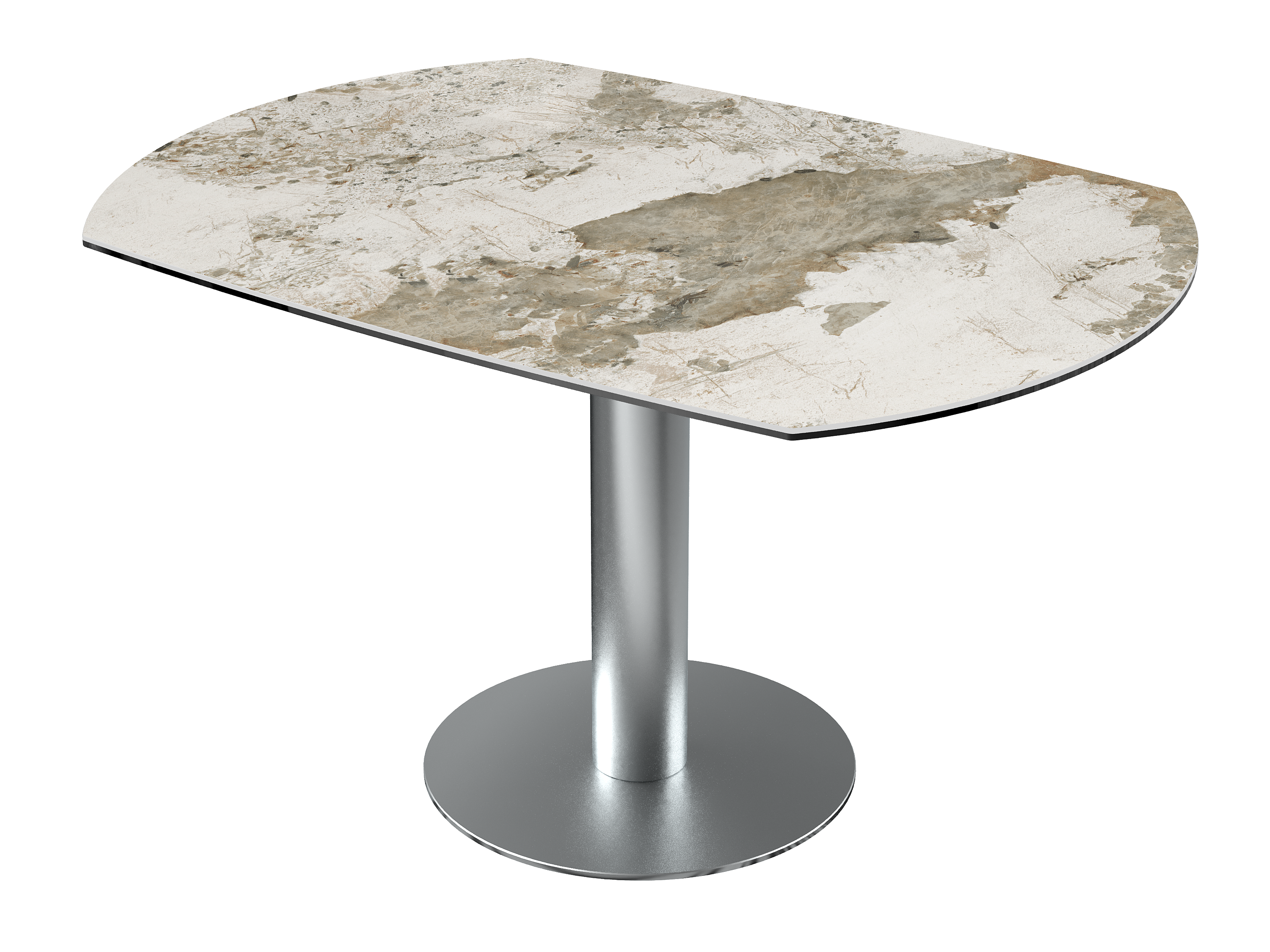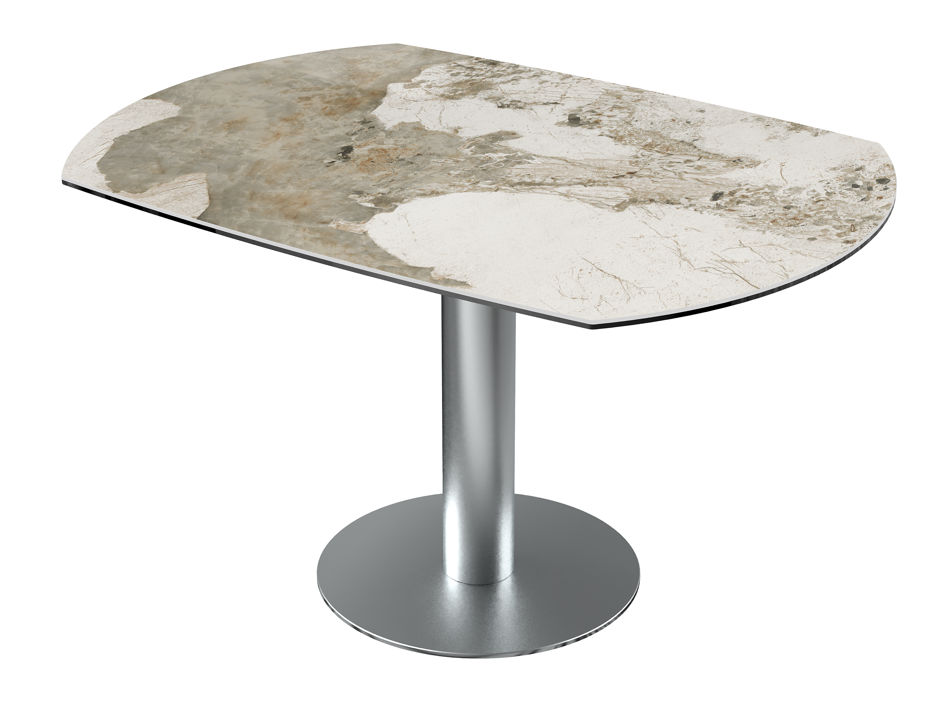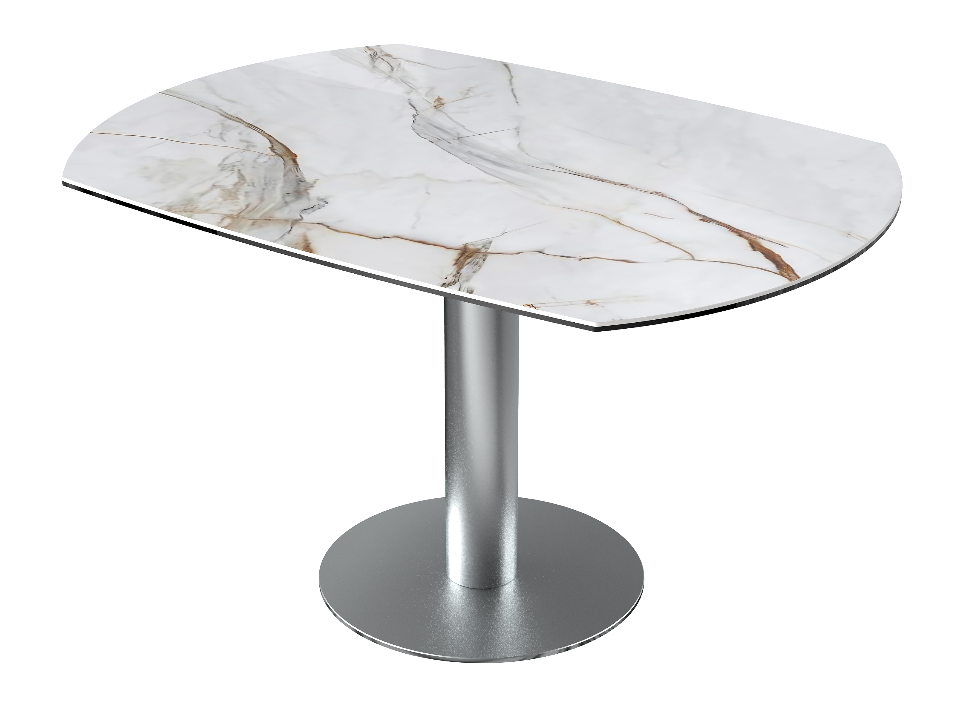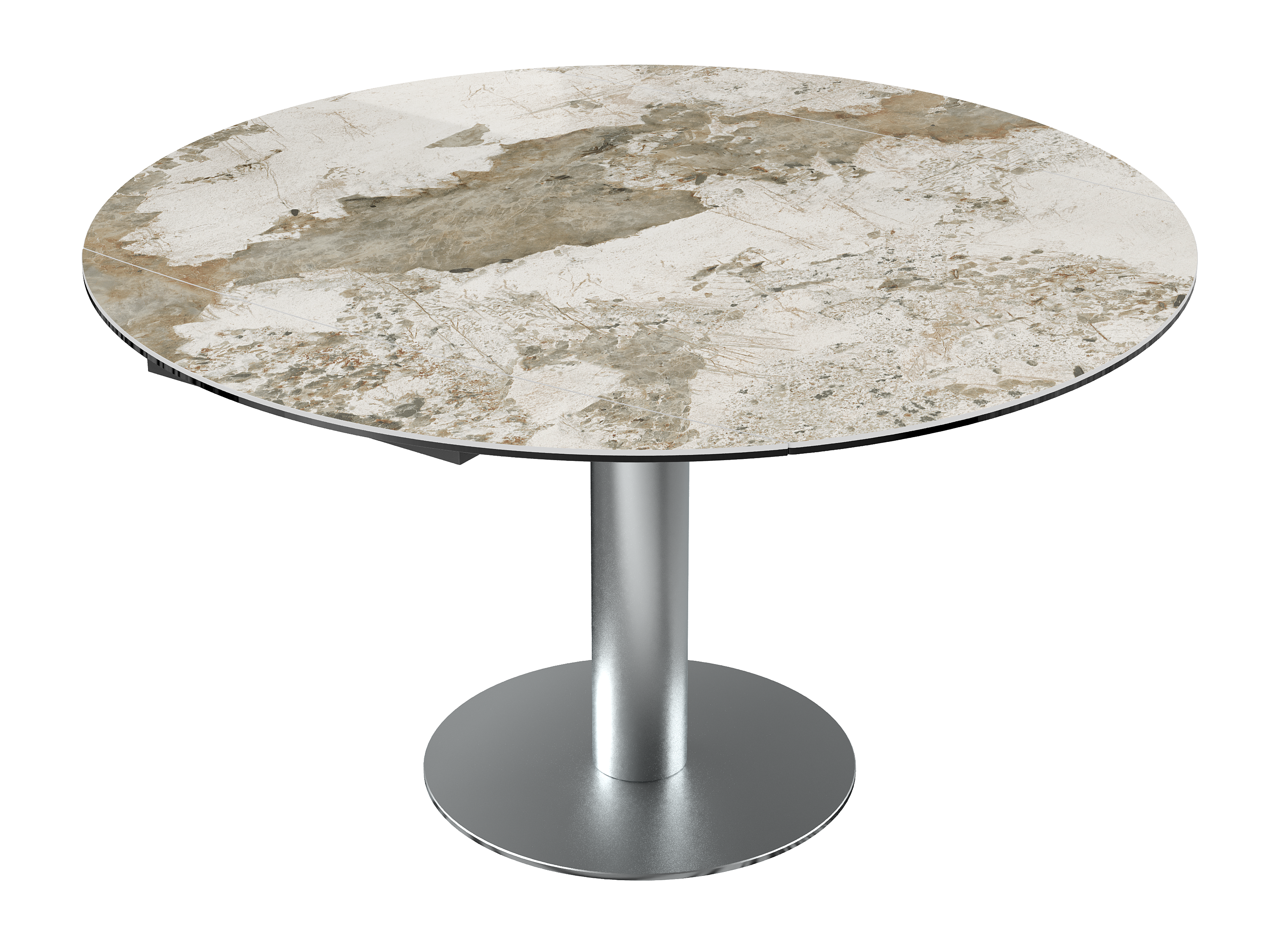 Dimensiones y detalles Peso neto : 84,9 Kg Color : Mármol Marquina Dimensiones cerrado : 135 x 95 x 77 cm Dimensiones abiertas : Ø 135 x 75 cm Altura : 77/75 cm Ancho : 95 cm Largo : 135 cm Mecanismo sincronizado Número de comensales : 4-6 personas Base : Acero inoxidable Superficie : Cerámica de 6 mm pegada sobre vidrio de 6 mm Código INPI : 20161761