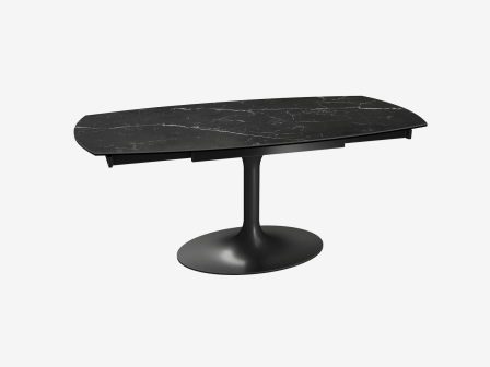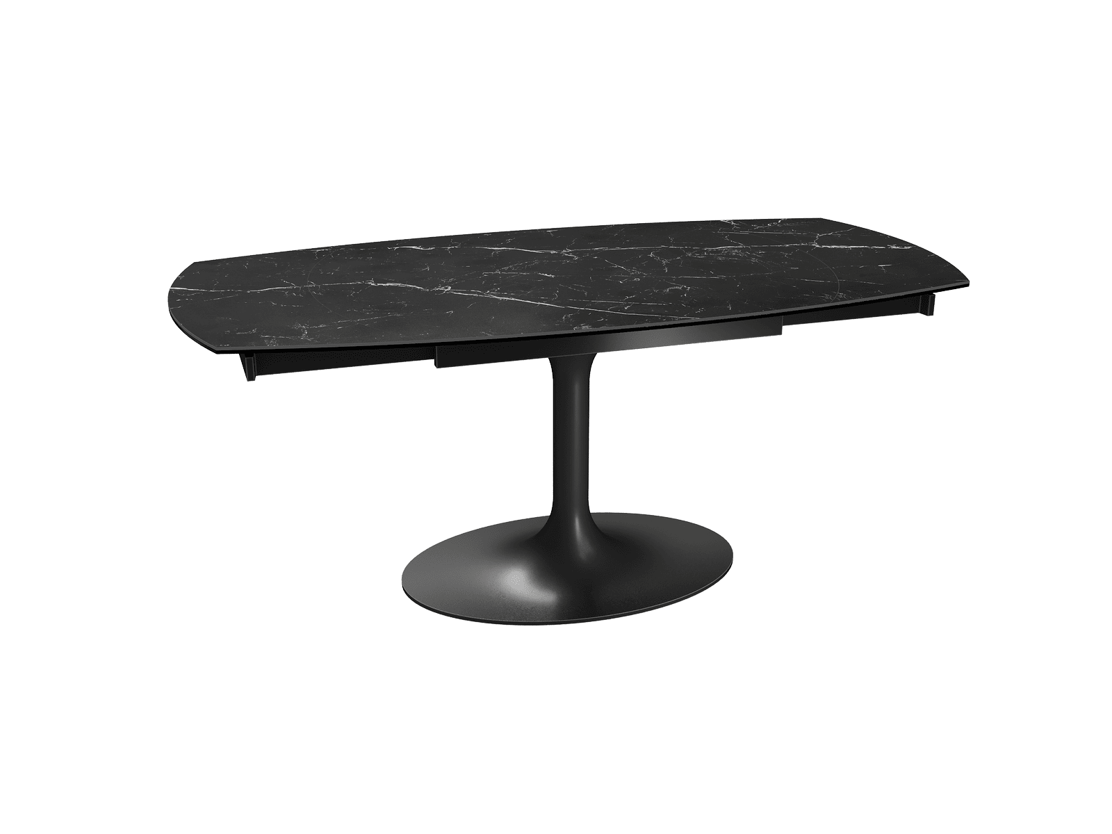 Dimensiones y detalles Peso neto : 124 Kg Color : Mármol Marquina Dimensiones : 120 x 90 x 76 cm Dimensiones abiertas : 180 x 90 x 76 cm Altura : 76 cm Ancho : 90 cm Largo : 120 cm Mecanismo sincronizado Número de comensales : 4-6 personas Base : Acero lacado negro mate Superficie : Cerámica de 6 mm pegada sobre vidrio de 6 mm