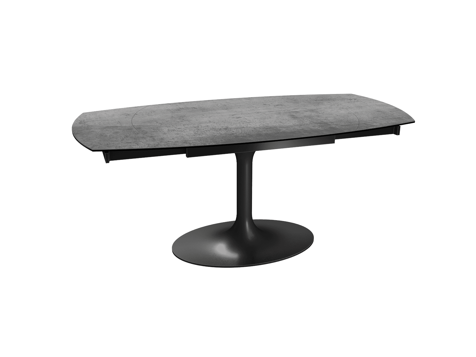 Dimensiones y detalles Peso neto : 122 Kg Color : Plata Dimensiones : 120 x 90 x 76 cm Dimensiones abiertas : 180 x 90 x 76 cm Altura : 76 cm Ancho : 90 cm Largo : 120 cm Mecanismo sincronizado Número de comensales : 4-6 personas Base : Acero lacado negro mate Superficie : Cerámica de 3 mm pegada sobre vidrio de 8 mm