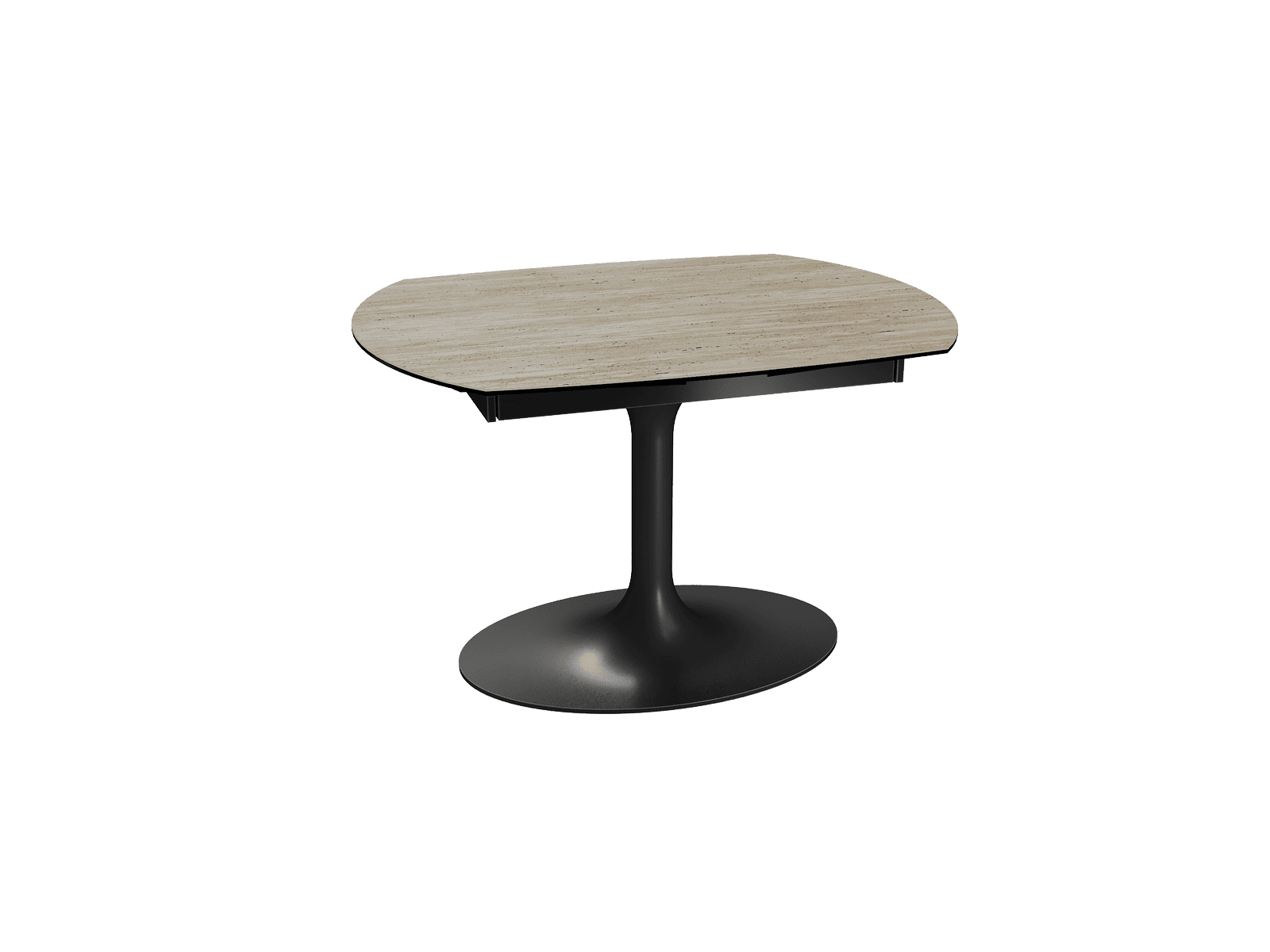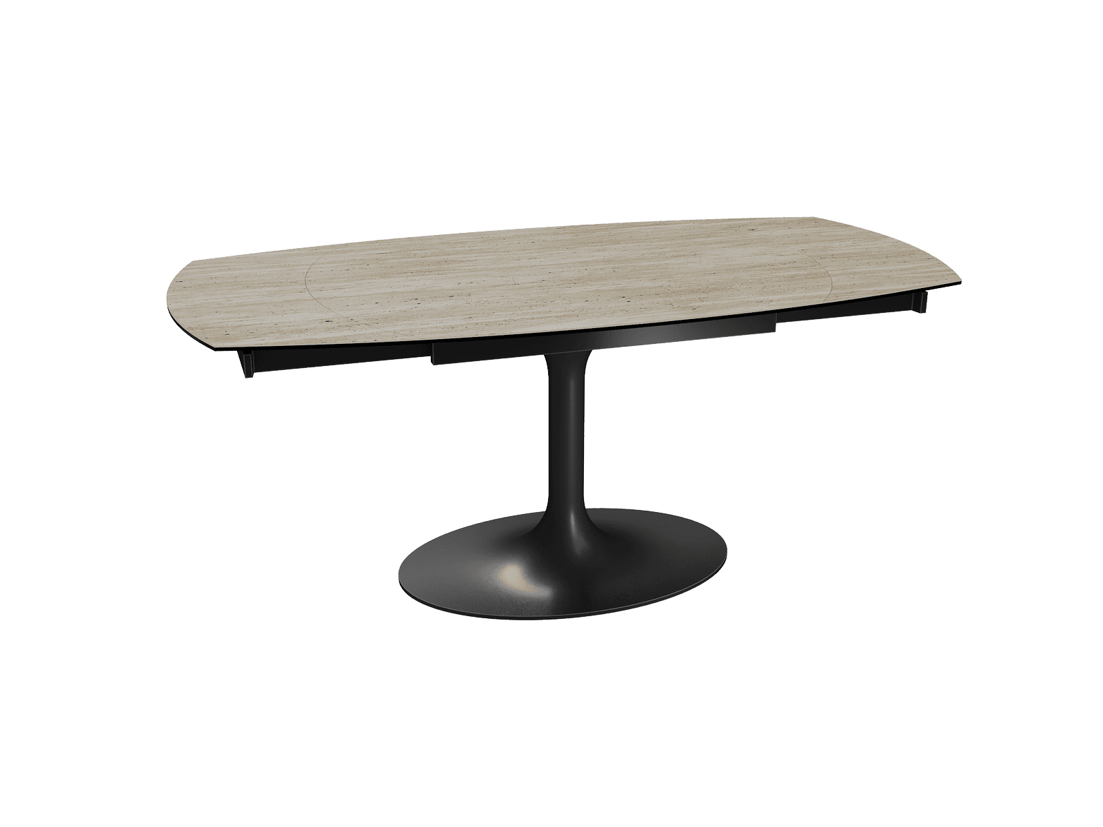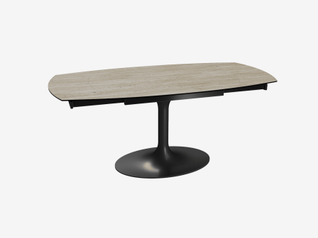 Dimensiones y detalles Peso neto : 122 Kg Color : Travertino Dimensiones : 120 x 90 x 76 cm Dimensiones abiertas : 180 x 90 x 76 cm Altura : 76 cm Ancho : 90 cm Largo : 120 cm Mecanismo sincronizado Número de comensales : 4-6 personas Base : Acero lacado negro mate Superficie : Cerámica de 3 mm pegada sobre vidrio de 8 mm