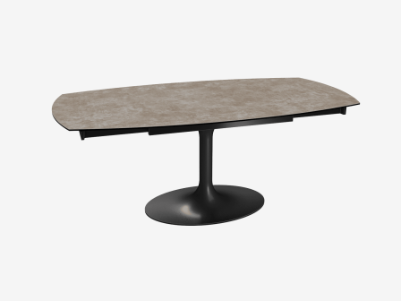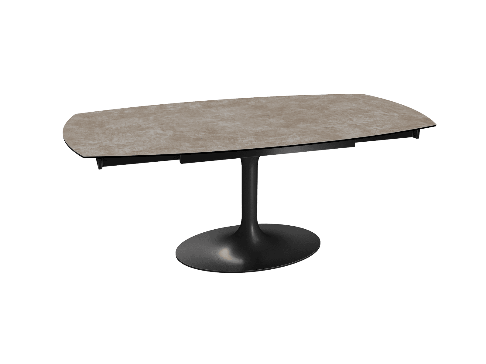 Dimensiones y detalles Peso neto : 135,2 Kg Color : Arcilla Dimensiones : 130 x 100 x 76 cm Dimensiones abiertas : 190 x 100 x 76 cm Altura : 76 cm Ancho : 100 cm Largo : 130 cm Mecanismo sincronizado Número de comensales : 6-8 personas Base : Acero lacado negro mate Superficie : Cerámica de 3 mm pegada sobre vidrio de 8 mm