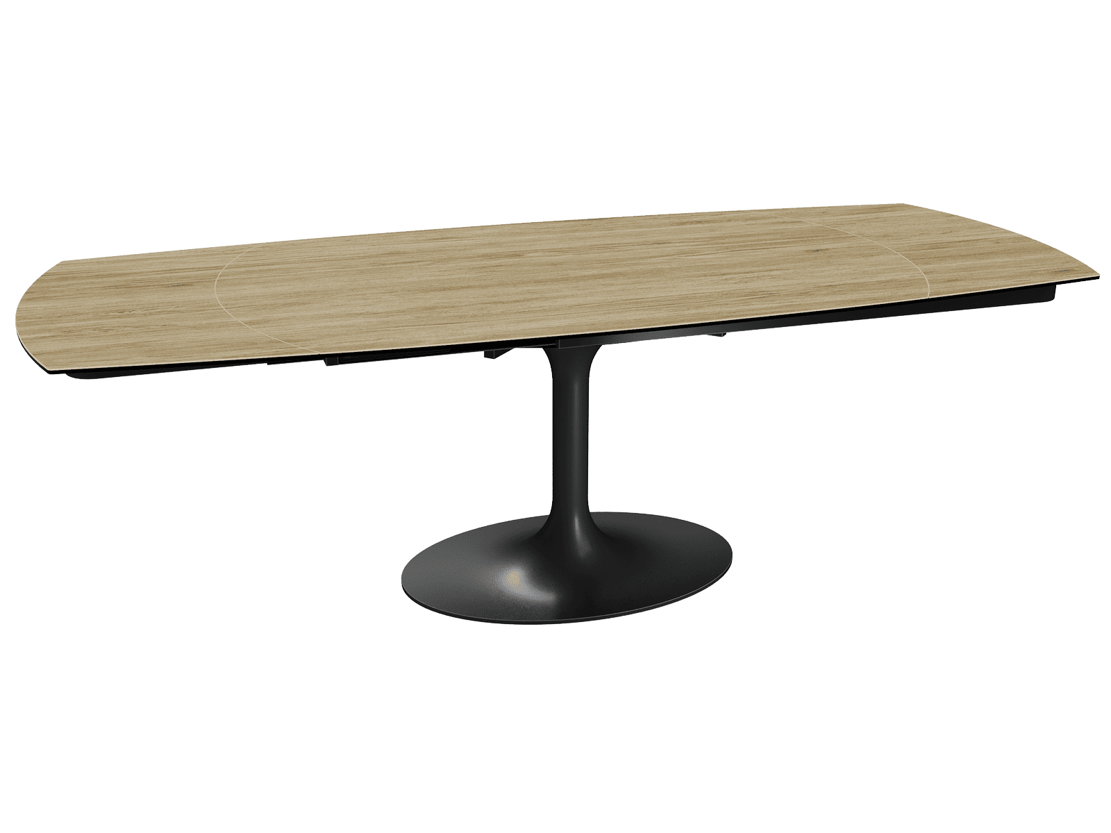Dimensiones y detalles Peso neto : 175 Kg Color : Roble claro Dimensiones : 160 x 100 x 76 cm Dimensiones abiertas : 240 x 100 x 76 cm Altura : 76 cm Ancho : 100 cm Largo : 160 cm Mecanismo sincronizado Número de comensales : 8-10 personas Base : Acero lacado negro mate Superficie : Cerámica de 3 mm pegada sobre vidrio de 8 mm