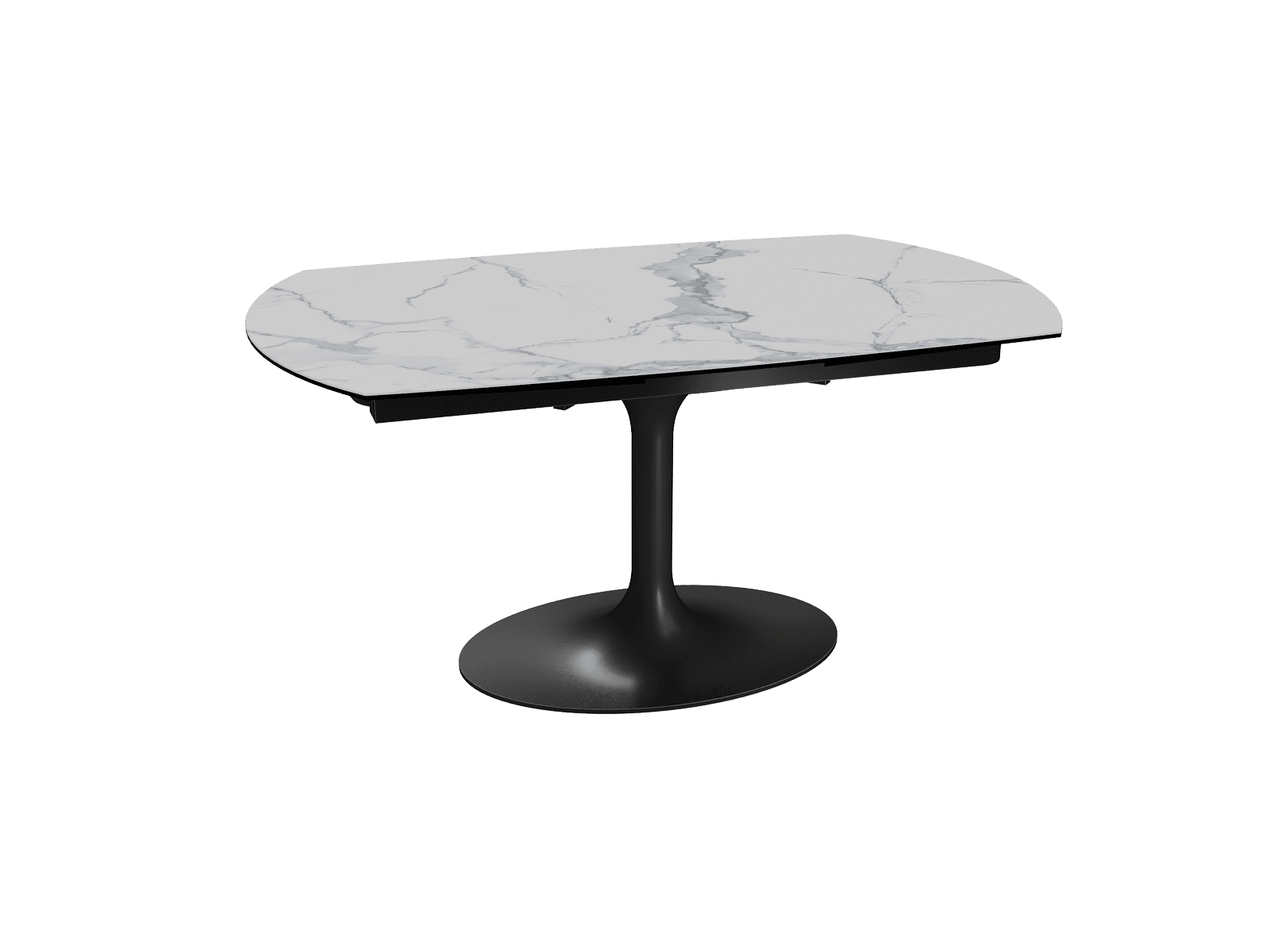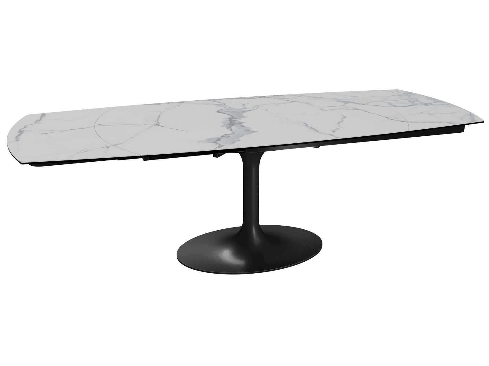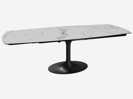 Dimensiones y detalles Peso neto : 175 Kg Color : Marmól mate Dimensiones : 160 x 100 x 76 cm Dimensiones abiertas : 240 x 100 x 76 cm Altura : 76 cm Ancho : 100 cm Largo : 160 cm Mecanismo sincronizado Número de comensales : 8-10 personas Base : Acero lacado negro mate Superficie : Cerámica de 3 mm pegada sobre vidrio de 8 mm