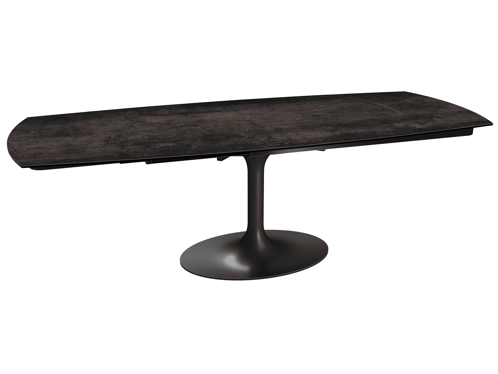 Dimensiones y detalles Peso neto : 175 Kg Color : Acero Dimensiones : 160 x 100 x 76 cm Dimensiones abiertas : 240 x 100 x 76 cm Altura : 76 cm Ancho : 100 cm Largo : 160 cm Mecanismo sincronizado Número de comensales : 8-10 personas Base : Acero lacado negro mate Superficie : Cerámica de 3 mm pegada sobre vidrio de 8 mm