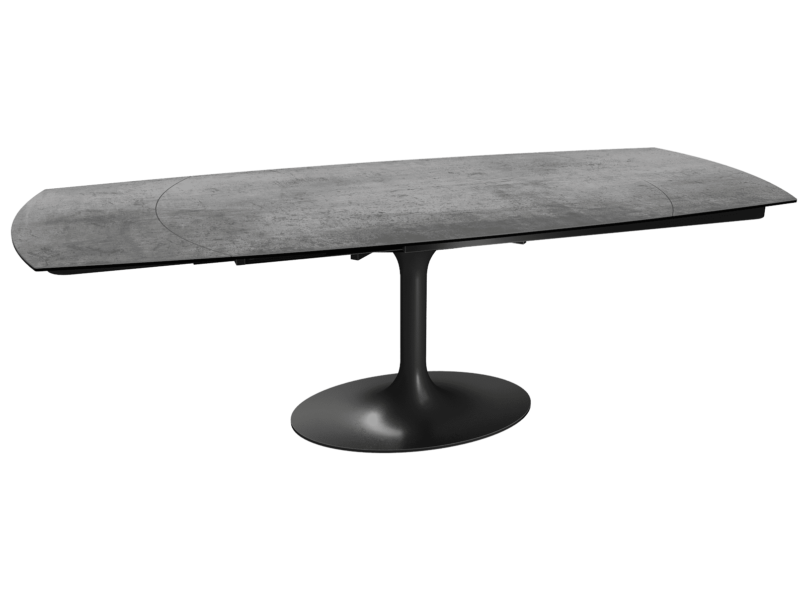 Dimensiones y detalles Peso neto : 175 Kg Color : Plata Dimensiones : 160 x 100 x 76 cm Dimensiones abiertas : 240 x 100 x 76 cm Altura : 76 cm Ancho : 100 cm Largo : 160 cm Mecanismo sincronizado Número de comensales : 8-10 personas Base : Acero lacado negro mate Superficie : Cerámica de 3 mm pegada sobre vidrio de 8 mm