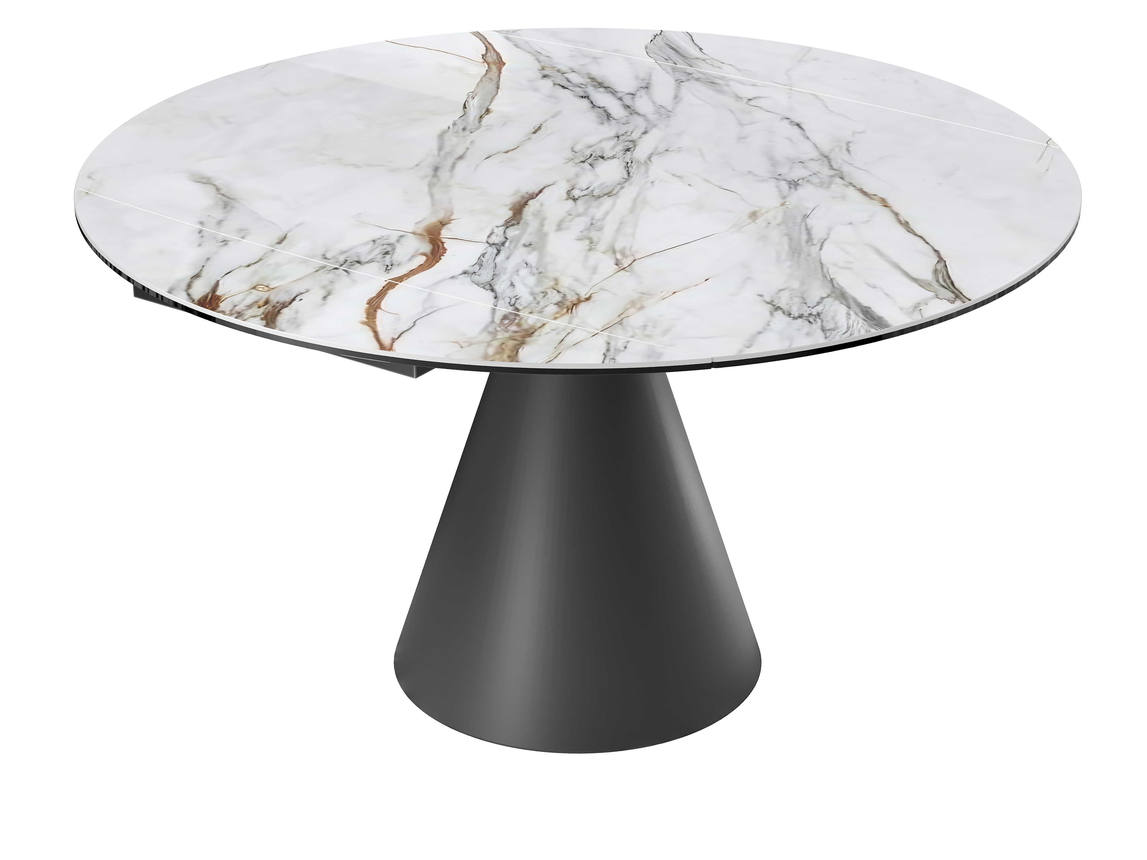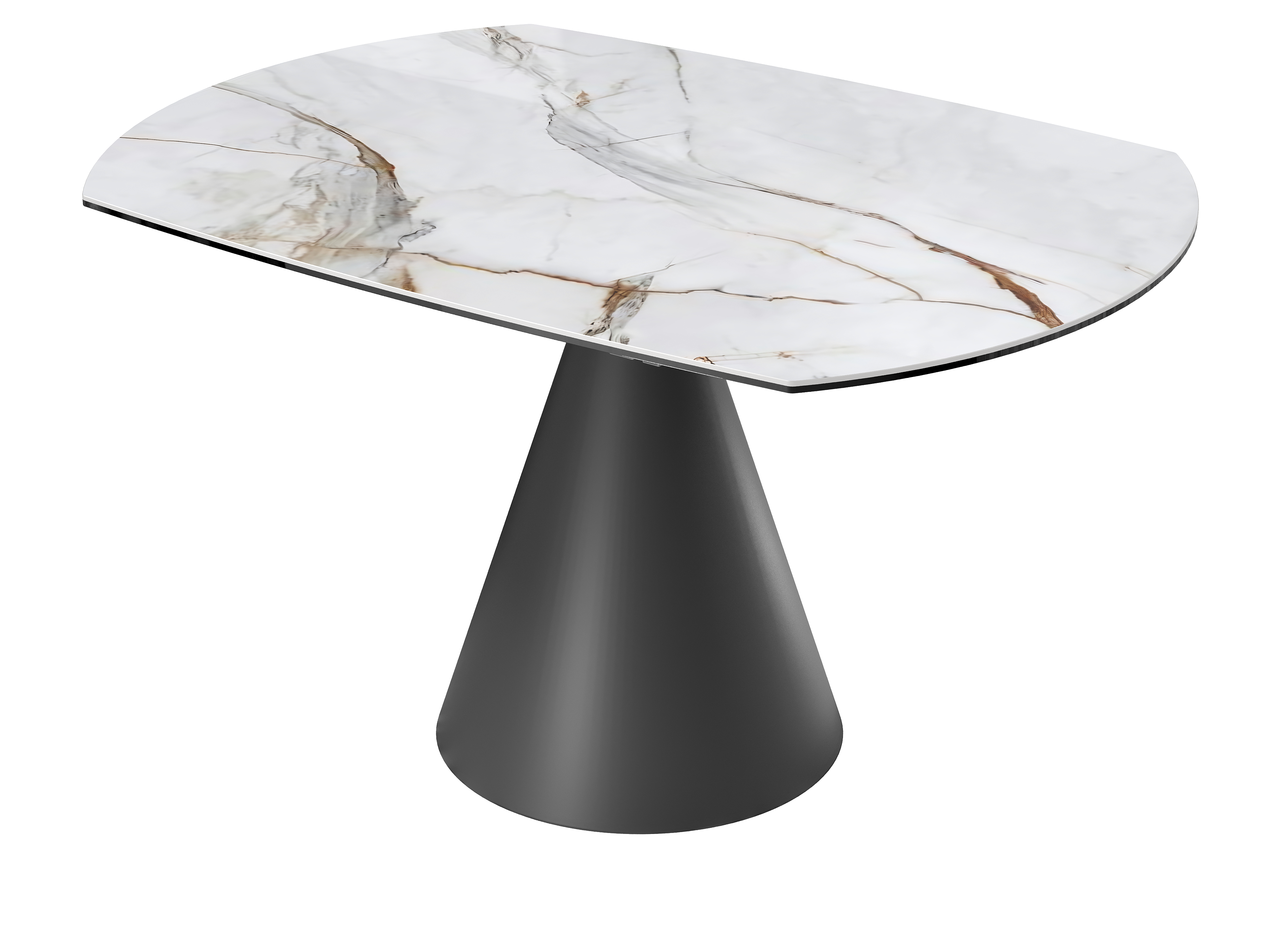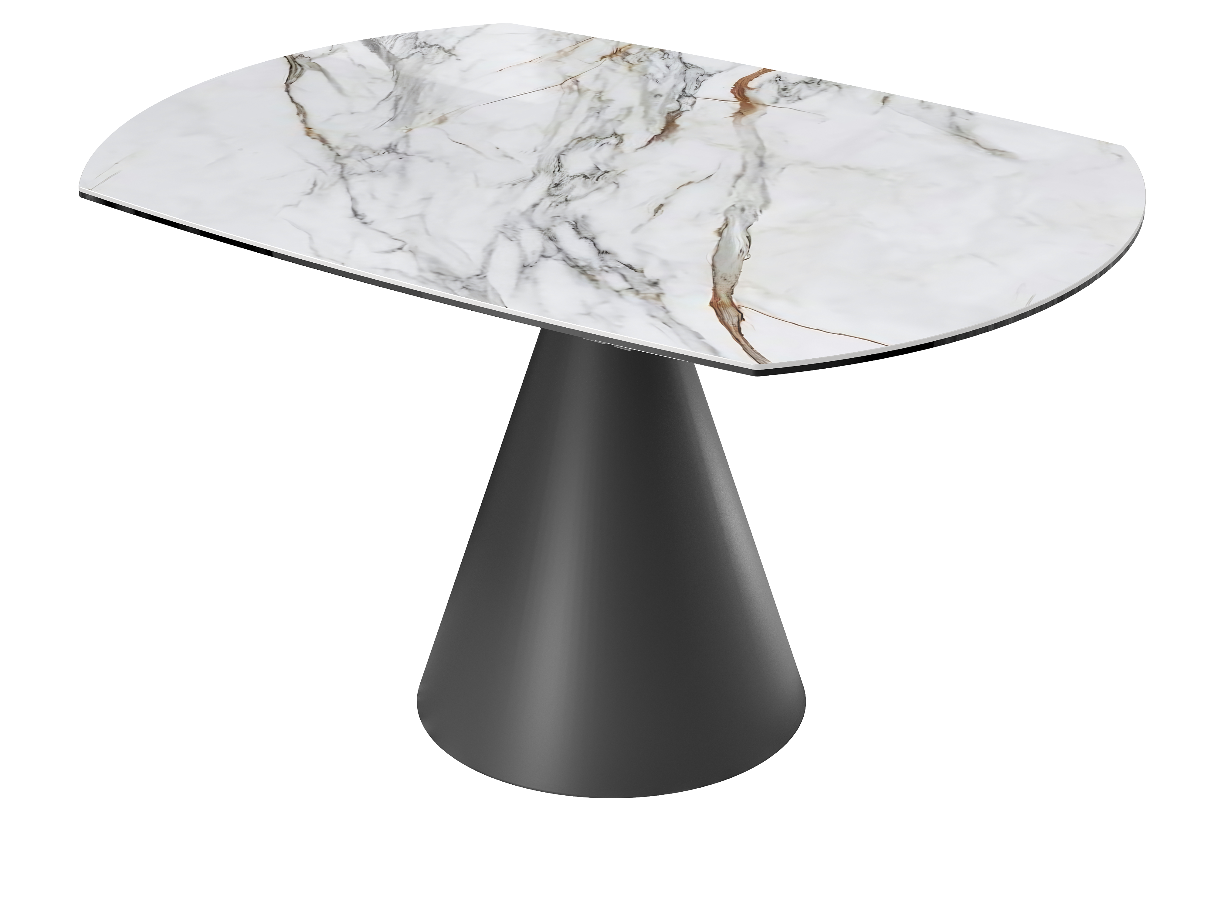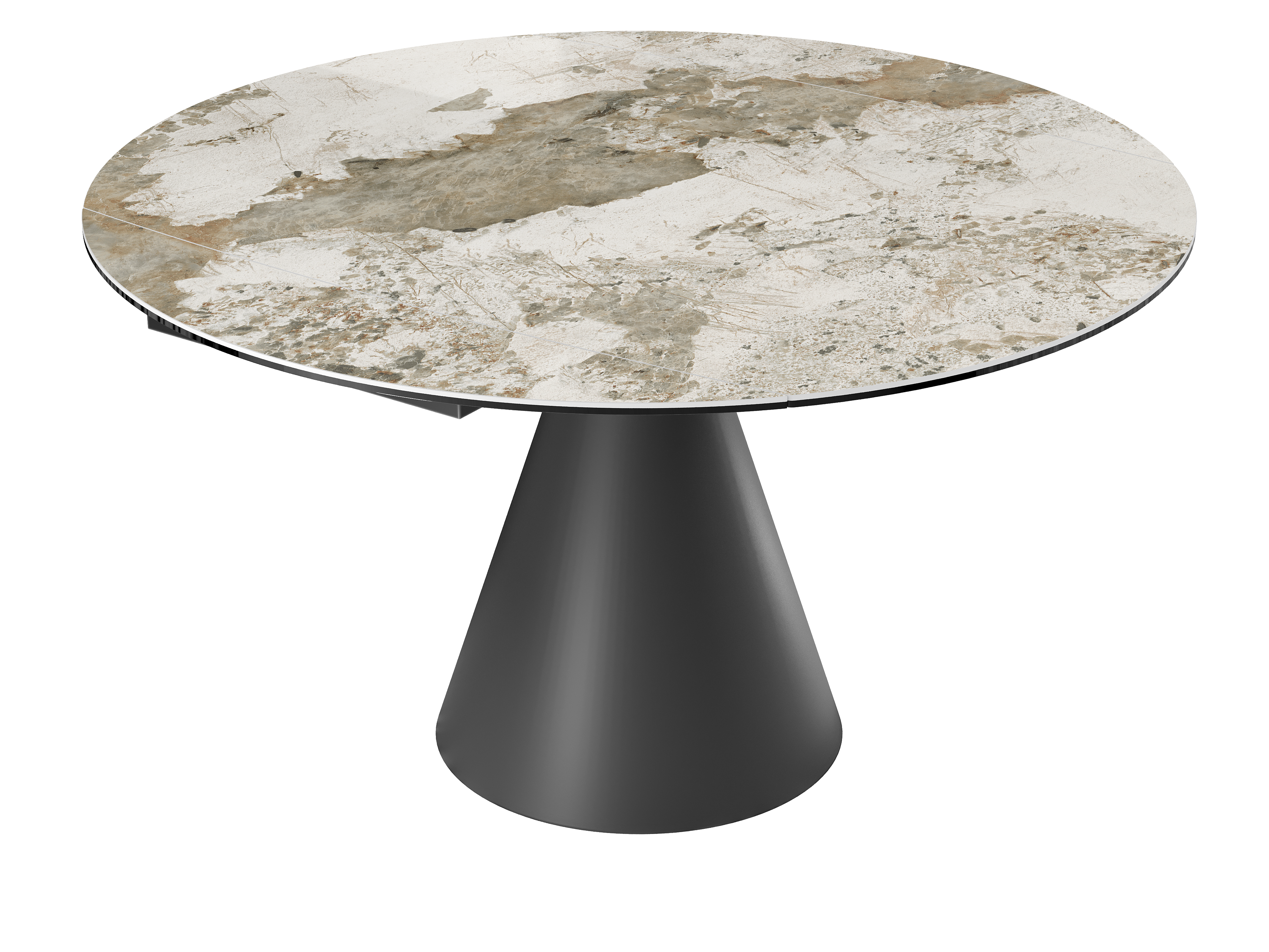 Dimensiones y detalles Peso neto : 81,3 Kg Color : Marmól mate Dimensiones : 135 x 95 x 75 cm Dimensiones abiertas : Ø 135 x 77 cm Altura : 77/75 cm Ancho : 95 cm Largo : 135 cm Mecanismo sincronizado Base : Acero lacado negro mate Superficie : Cerámica de 3 mm pegada sobre vidrio de 8 mm Código INPI : 20231433