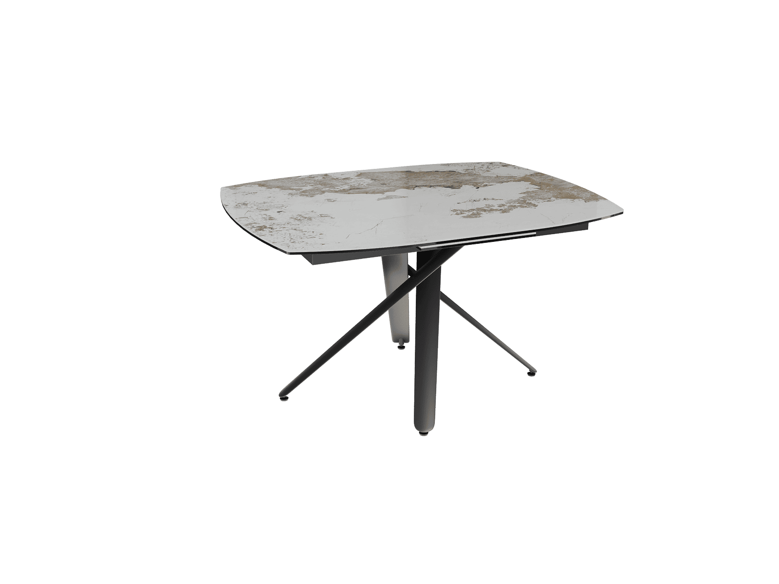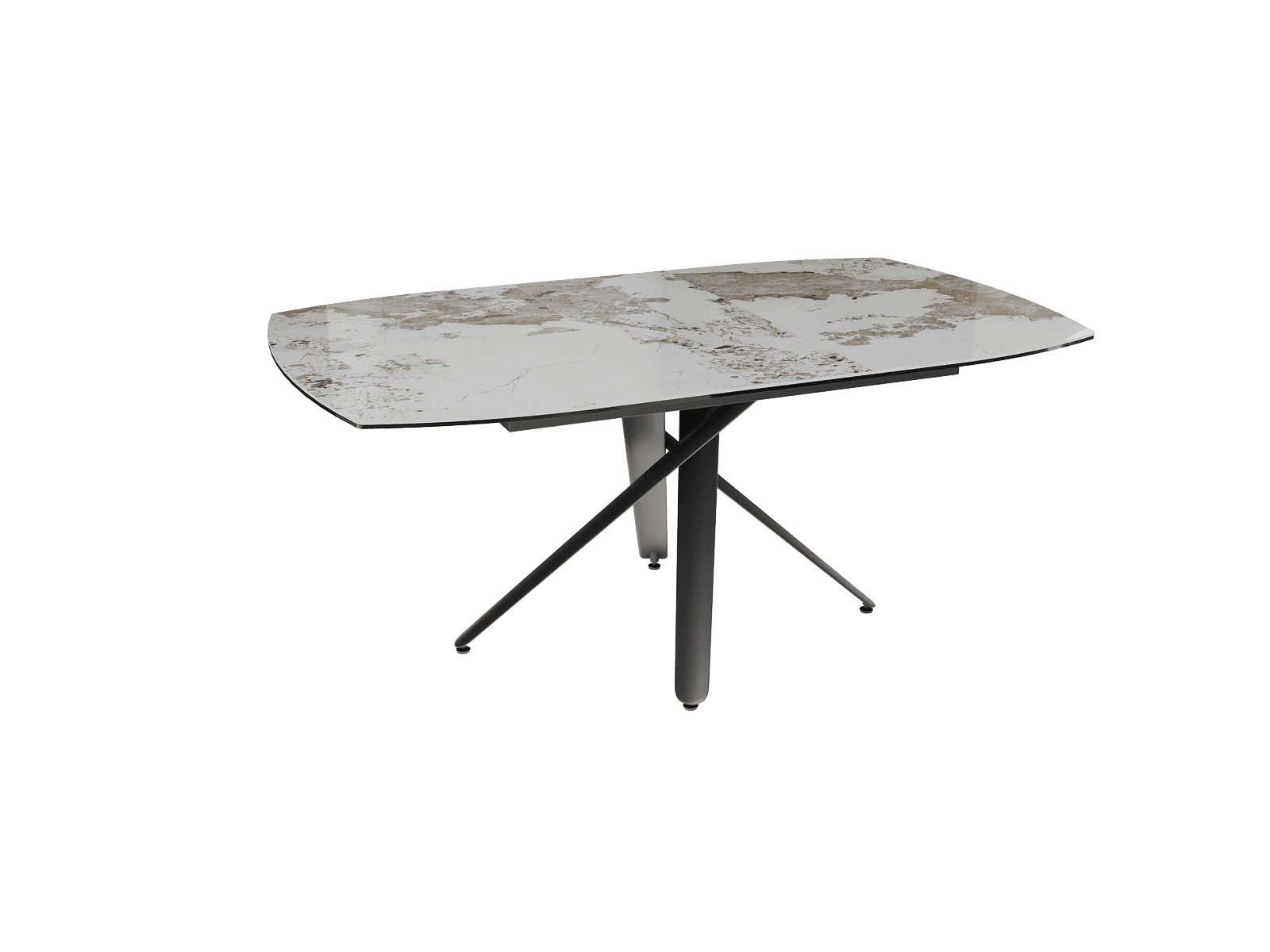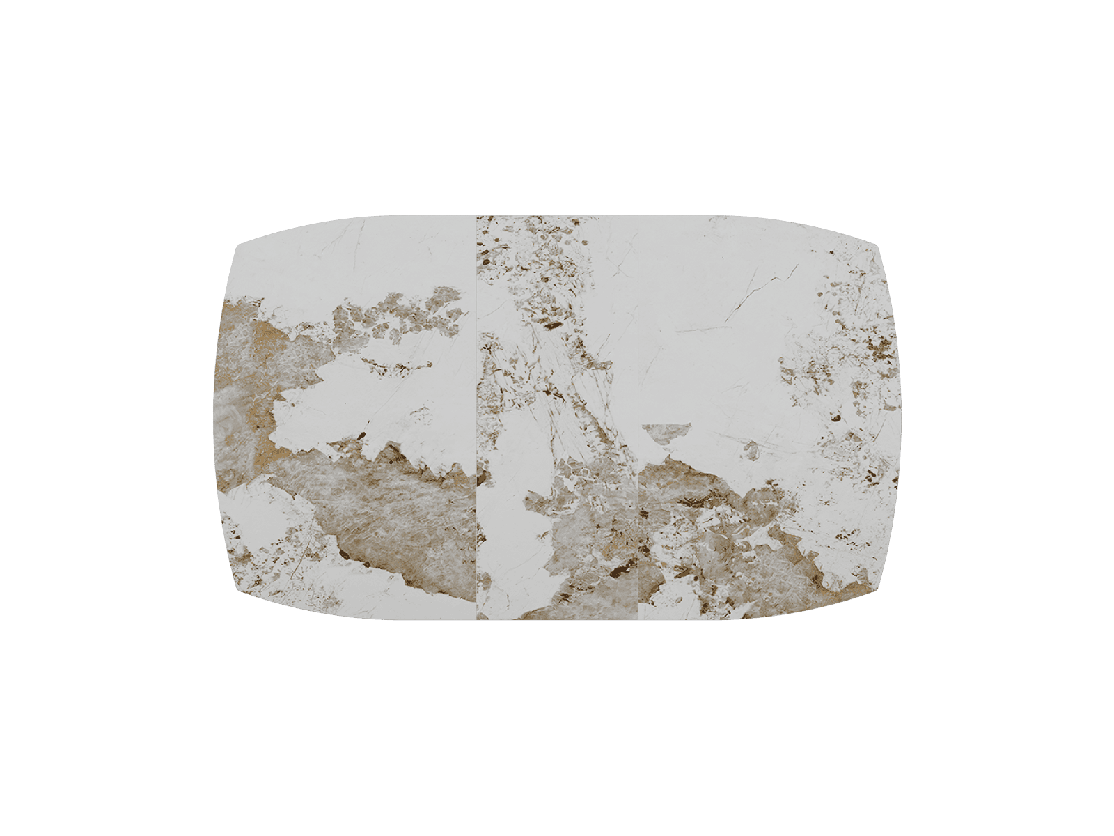 Dimensiones y detalles Peso neto : 133,5 Kg Color : Mármol Calcatta Dimensiones : 130 x 100 x 76 cm Dimensiones abiertas : 170 x 100 x 76 cm Altura : 76 cm Ancho : 100 cm Largo : 130 cm Base : Acero lacado negro mate Superficie : Cerámica de 6 mm pegada sobre vidrio de 8 mm